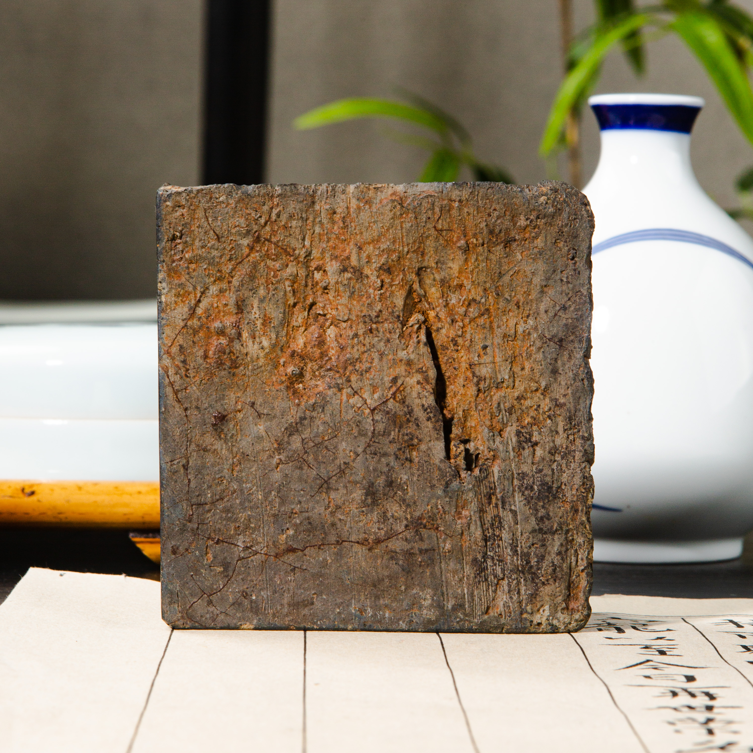 南北朝时期人物古砖制砚,人物形象刻画生动,题材少见,器型典雅,胎质细腻,稀有难得。