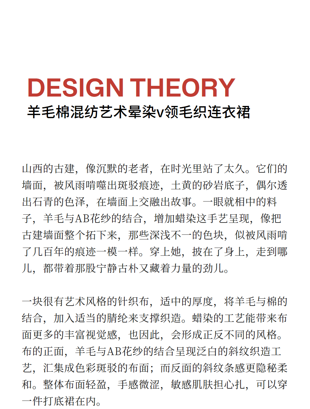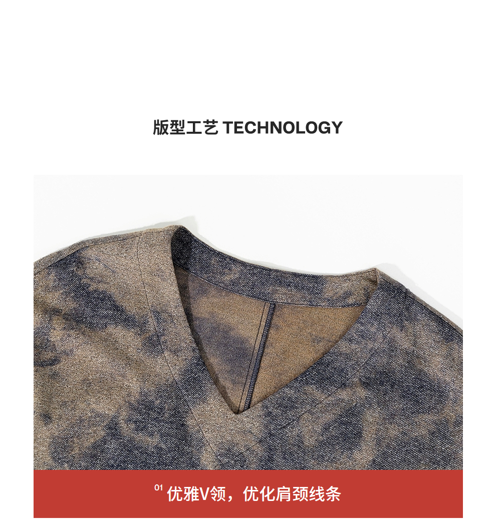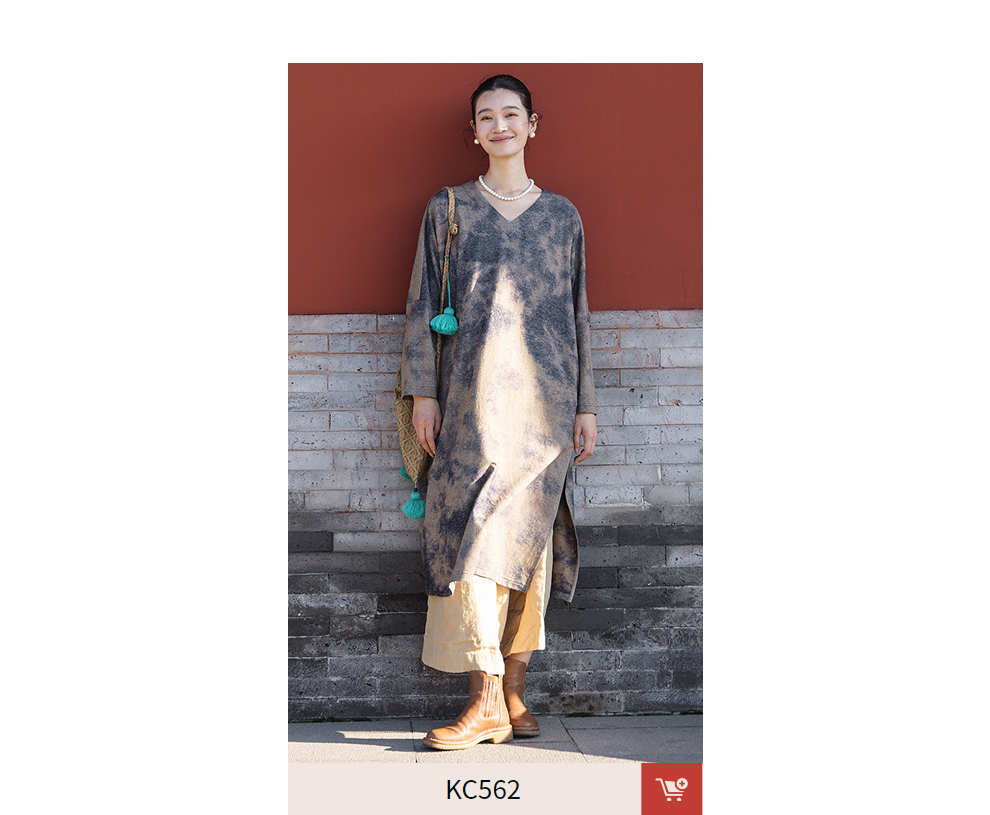 绽放566朵/羊毛棉混纺艺术晕染设计感宽松v领毛织连衣裙秋冬新款