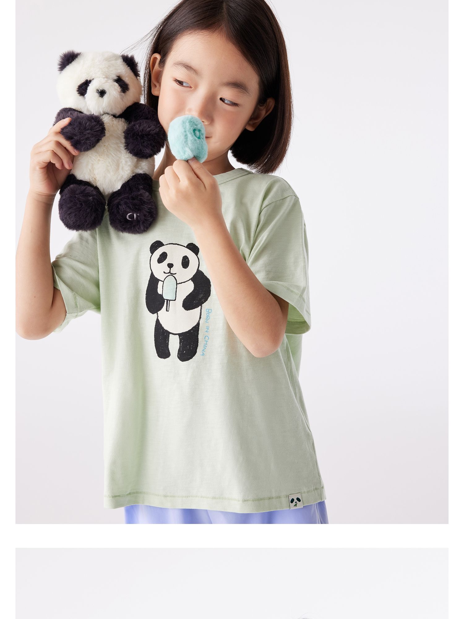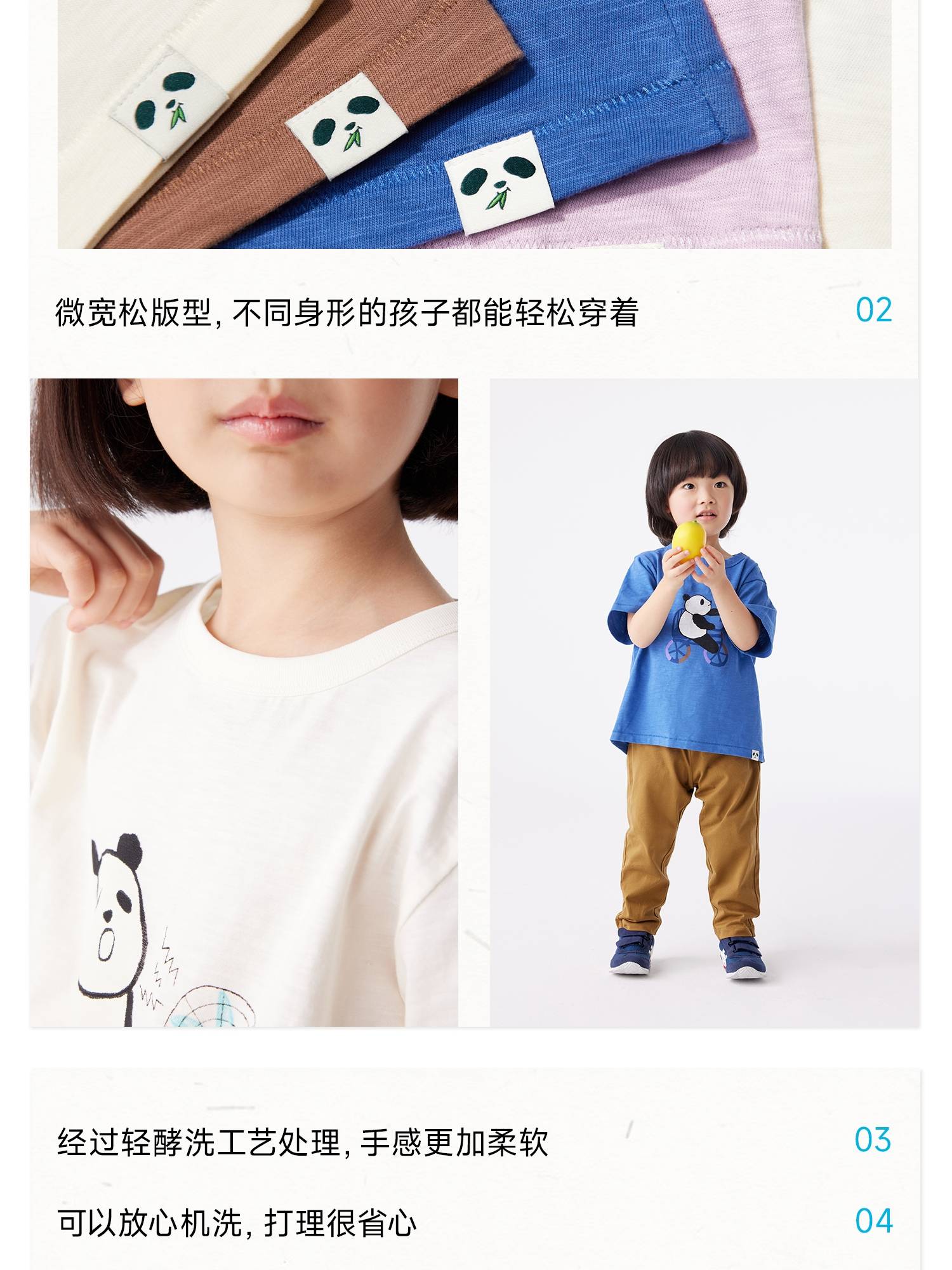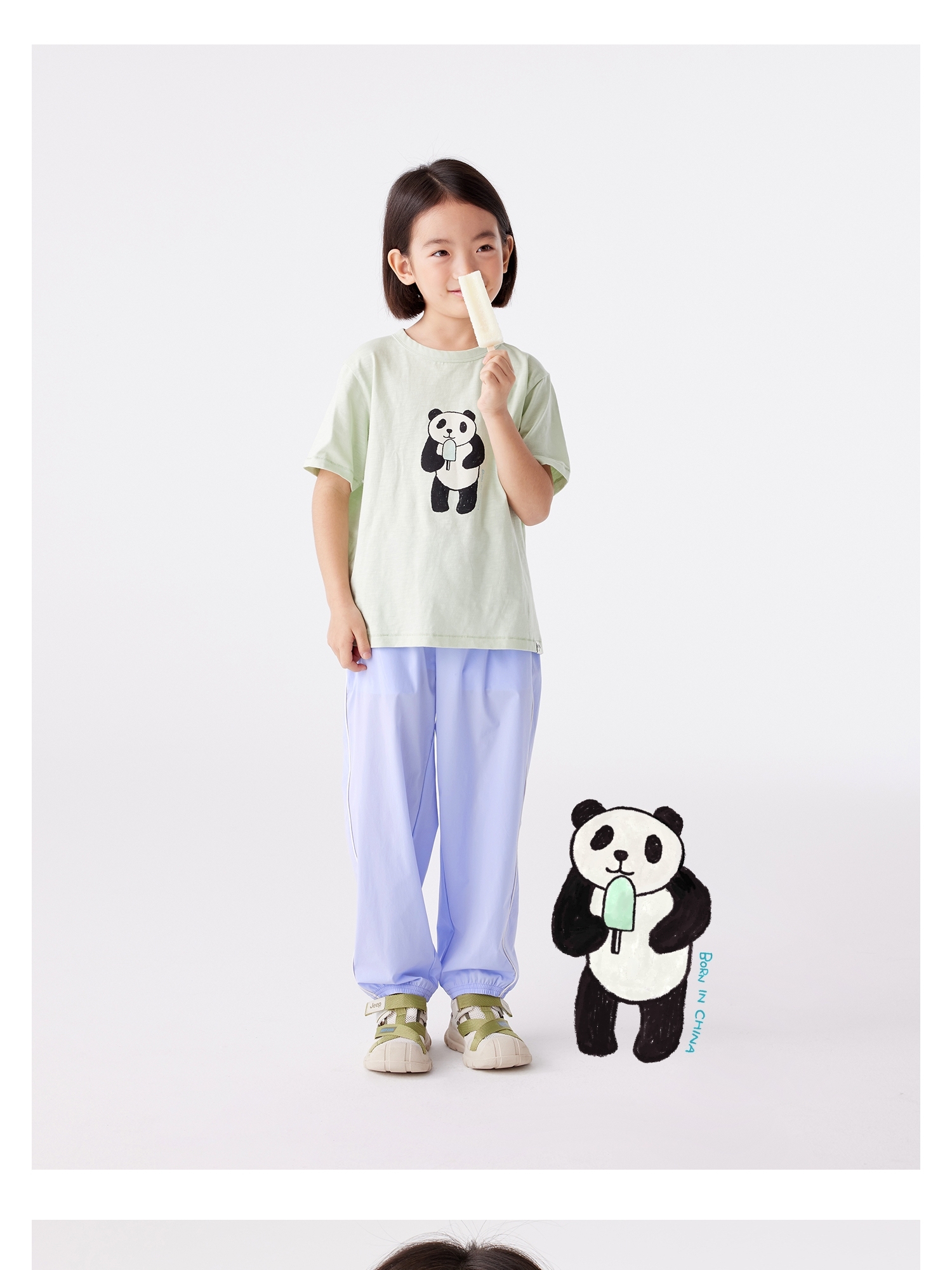 【粉丝专属】allblu幼岚【竹节棉】儿童T恤25春新款男童女童短袖熊猫滚滚印花T