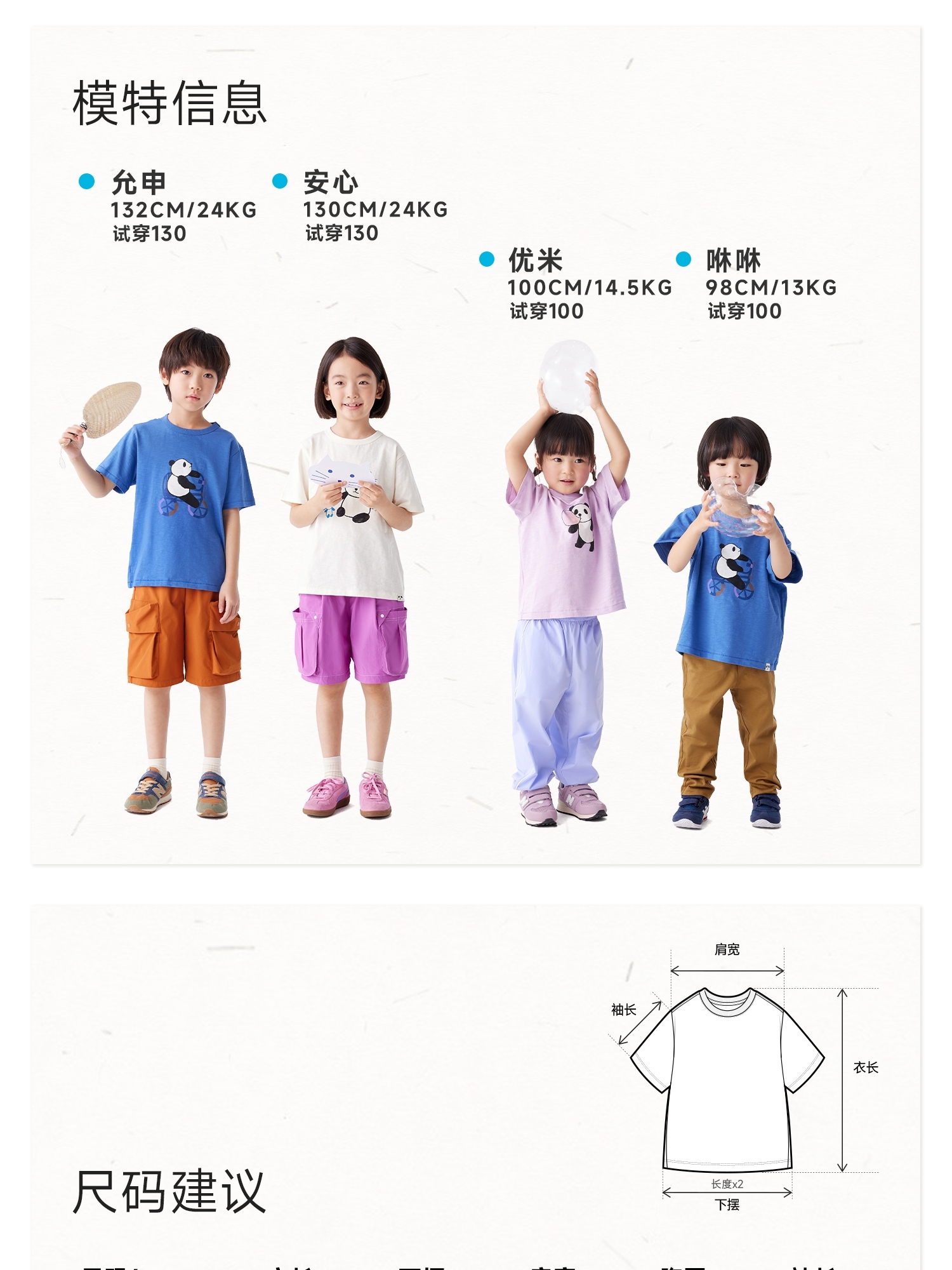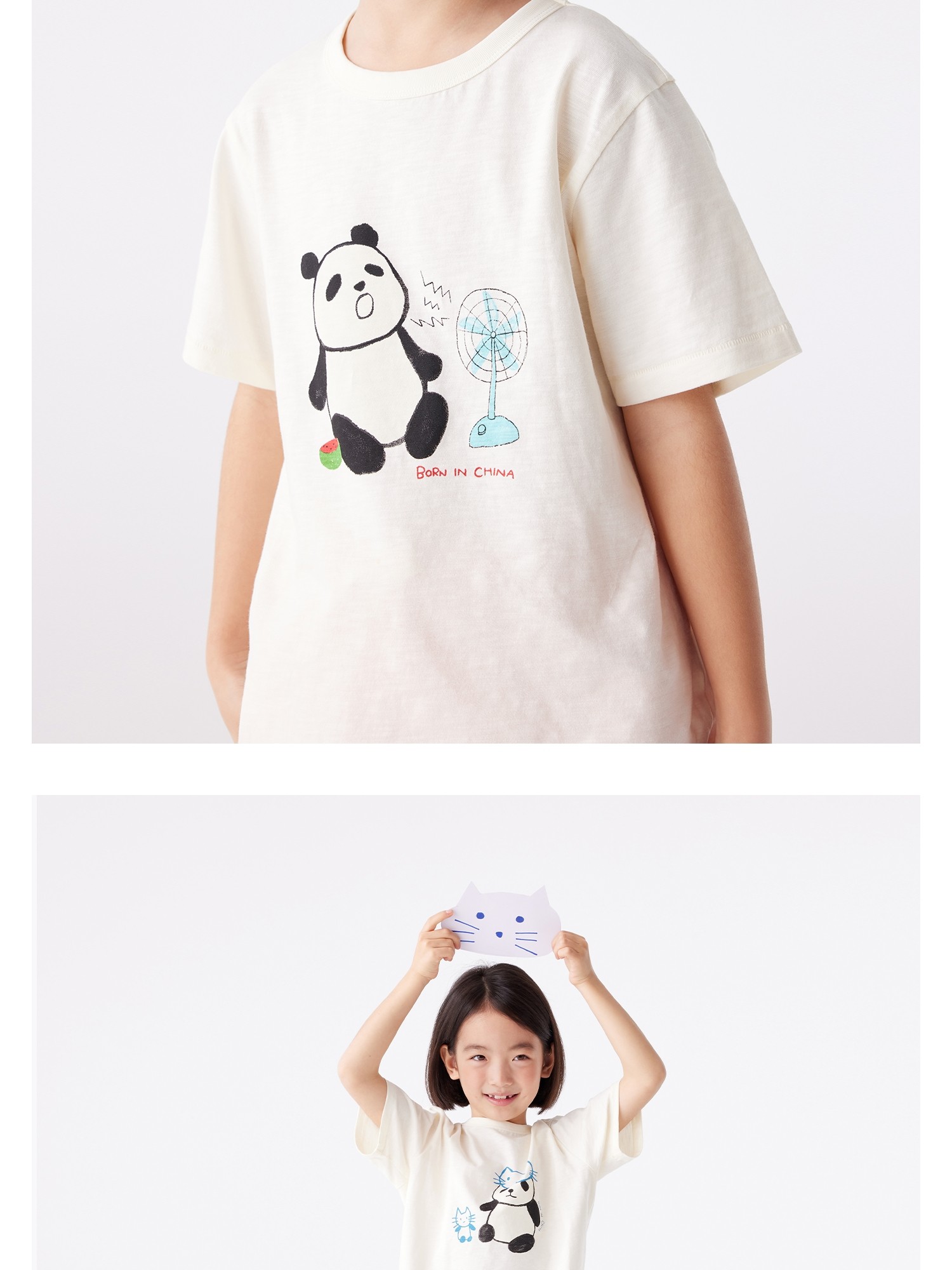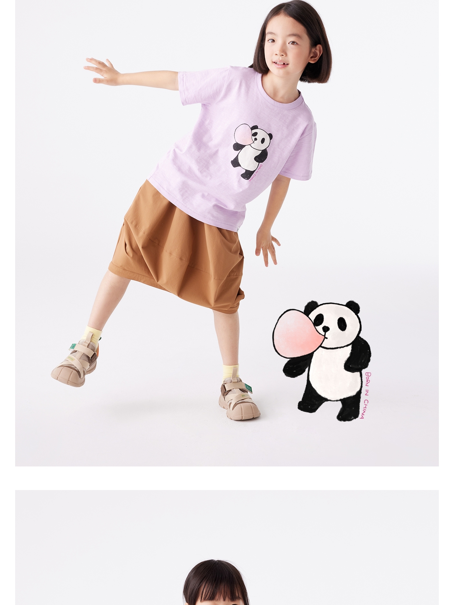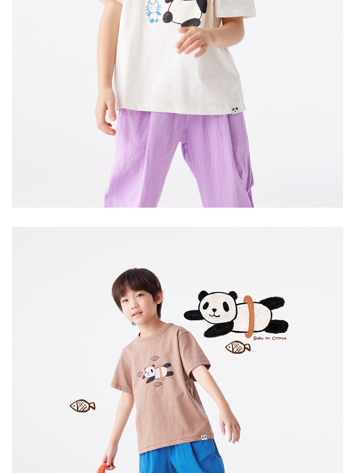 【粉丝专属】allblu幼岚【竹节棉】儿童T恤25春新款男童女童短袖熊猫滚滚印花T