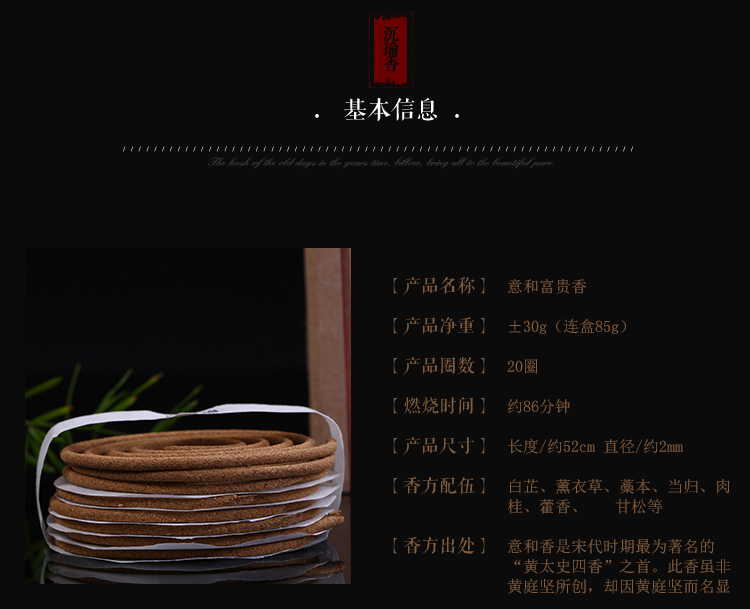 【沉瑜香 意和富贵香】安神助眠 适用于卧室 手工药香盘香 非遗出品
