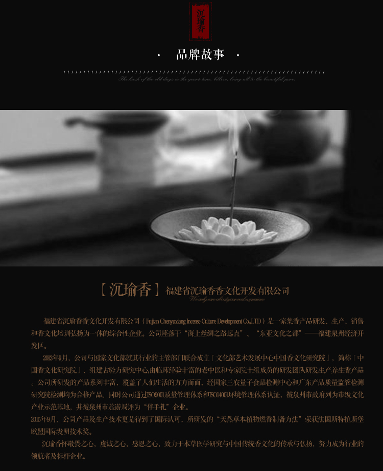 - 本店为沉瑜香旗舰店,沉瑜香始创于1910年,为非物质文化遗产“养生香制作技艺”项目保护单位