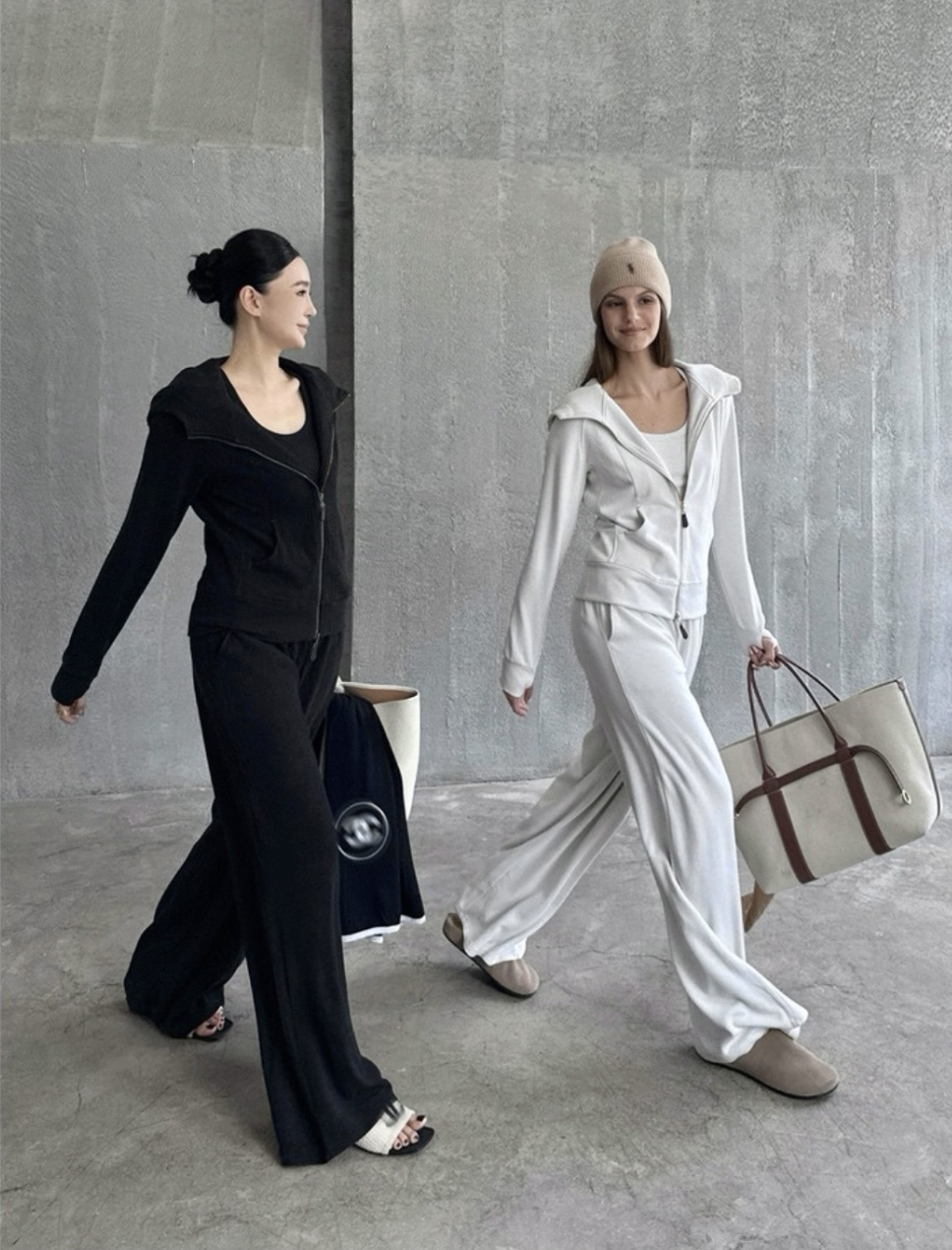 云感面料,高弹力回弹好,柔软亲肤,微微磨绒带来恰到好处的暖意!