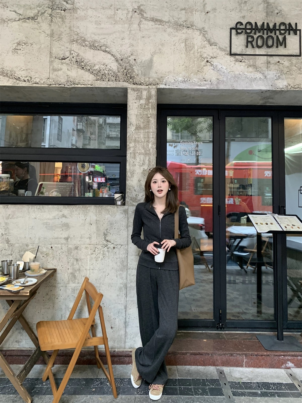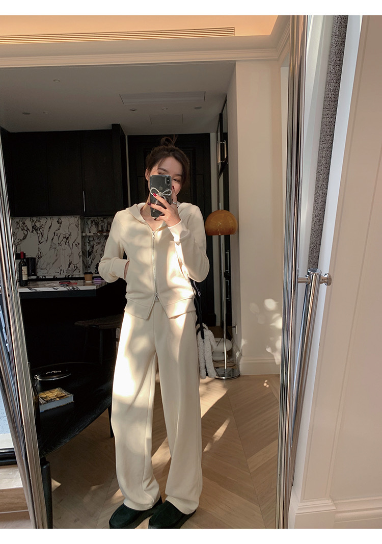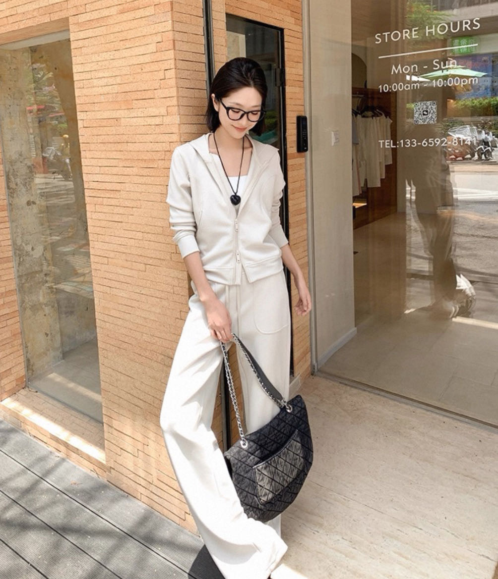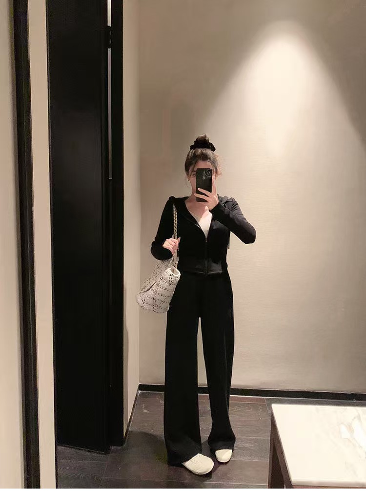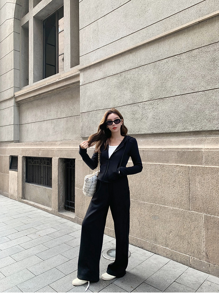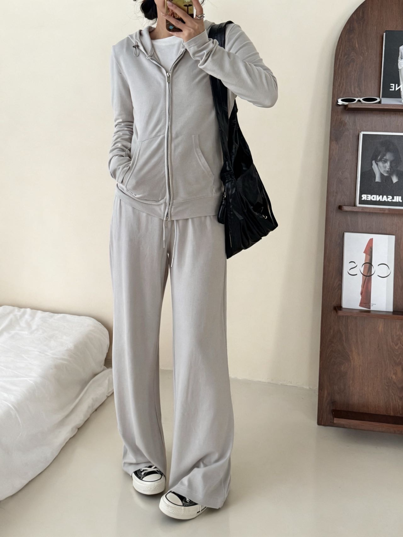 直筒阔腿裤,线条流畅,松紧高腰包容性狠大,穿出腿再裤中晃的松弛感~