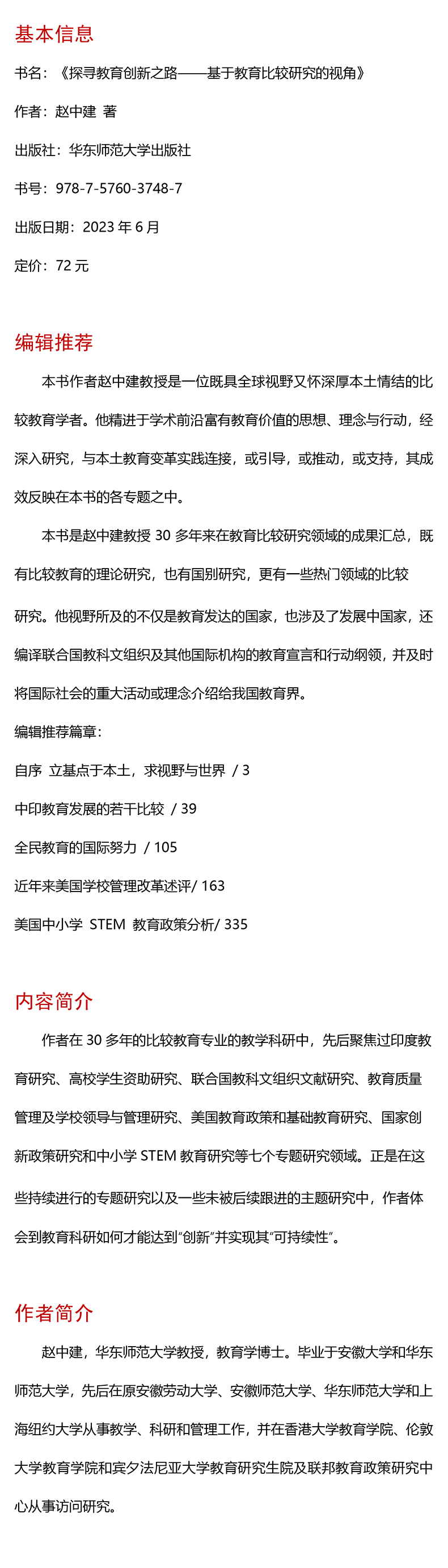 探寻教育创新之路——基于教育比较研究的视角 大夏书系 赵中建著