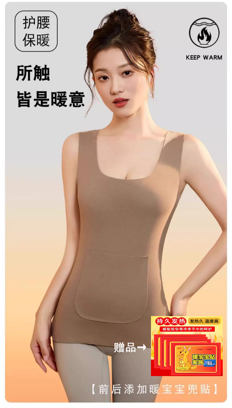 69元买一送一 加赠20片暖宝宝 | 双兜保暖背心 局部加热保暖 暖宫驱寒、温养腰部 轻薄无痕 U领磨绒背心