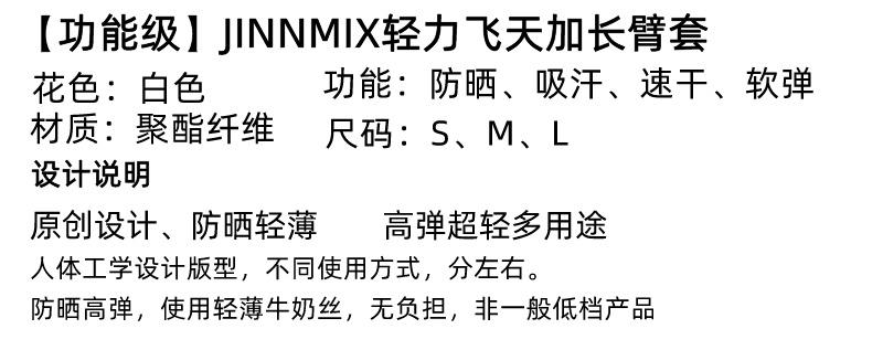 JINNMIX轻力飞天加长轻量高弹防晒排汗臂套