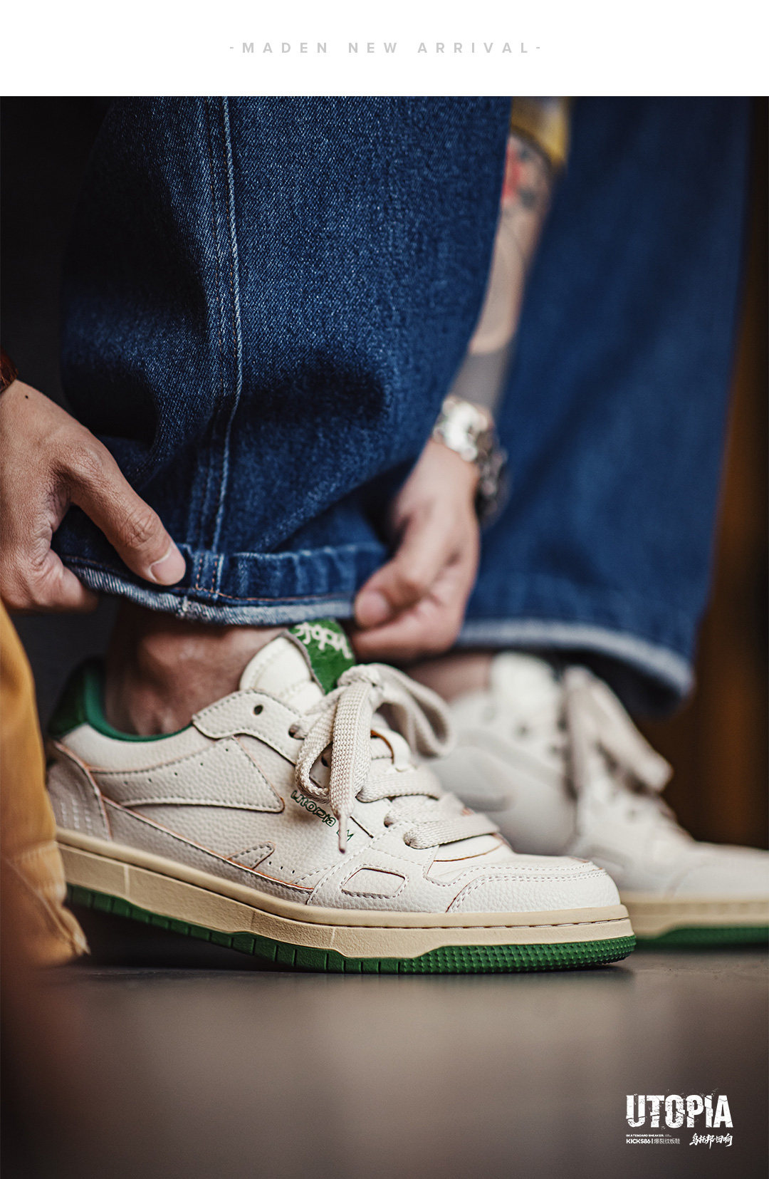 马登乌托邦休闲复古板鞋男2026新款百搭高级感软底低帮潮鞋小白鞋