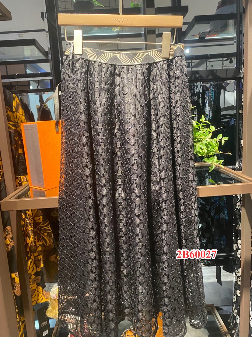 SC1B03_漆黑色_半裙_春季_蕾丝提花松紧腰A 字大摆_高级女装_BERNIEELEN 伯妮斯茵