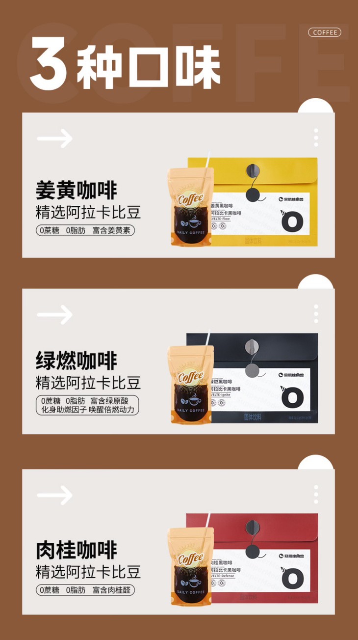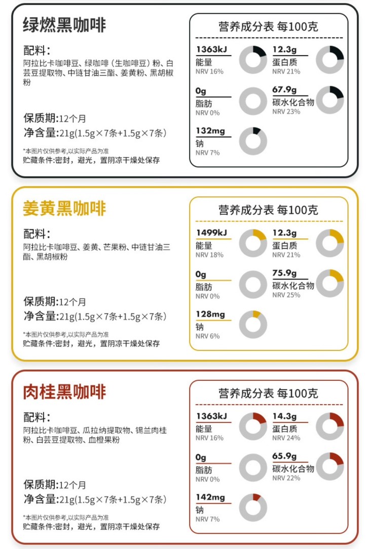 针对不同人群的需求,也推出三款口味不同,又有功能性的黑咖。