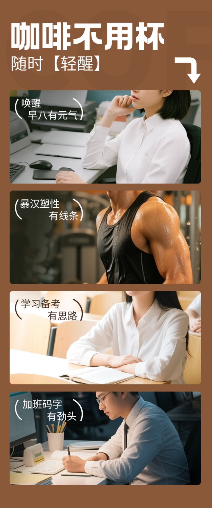 暴肌的5毛钱美式黑咖一直是店里最受欢迎的速溶鸡血咖啡了,这次又有出新的公文包系列咖啡,更方便了哦,价格也依然美丽,16.9元1包,39.9元3包,一天2块,放心喝!赶早八的学生党、坚持运动的健身人,熬夜加班的上班族,都可以试试暴肌,这三款还添加了针对性成分,随时随地补能量!