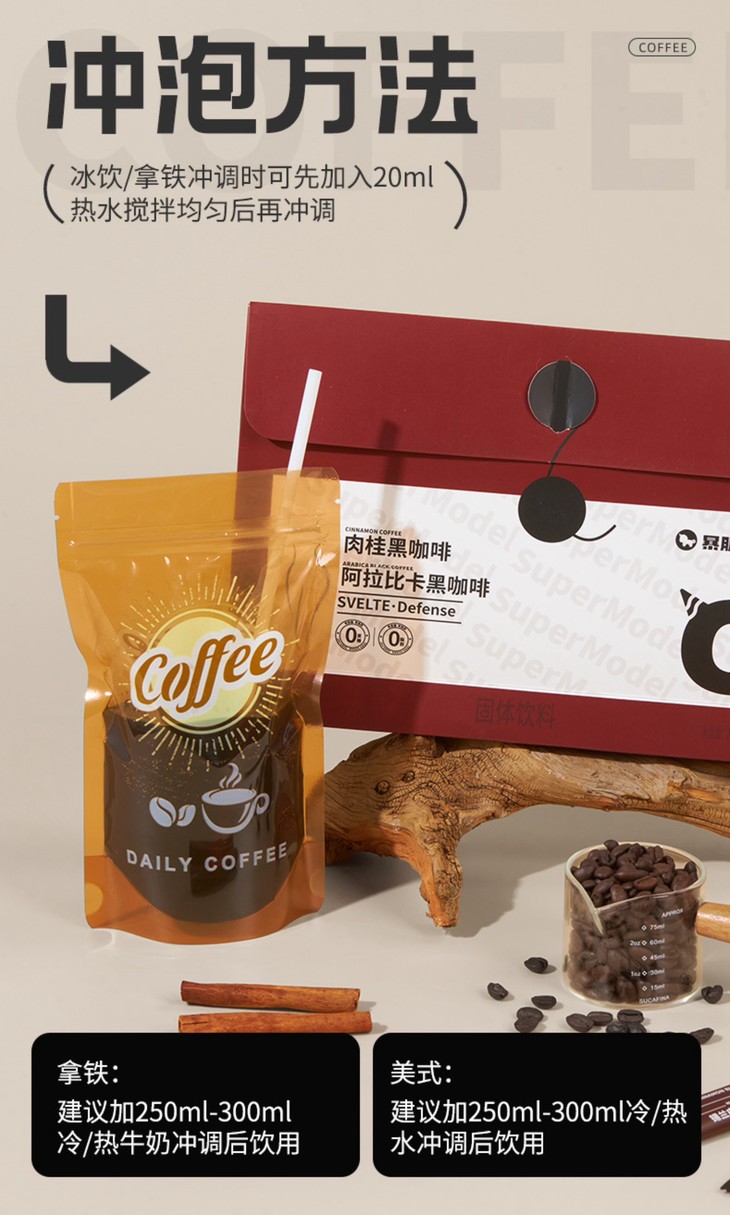 肉桂款专为秋冬季与熬夜党设计。以锡兰肉桂为点睛之笔,暖香与咖啡香交融,热水冲调的瞬间香气四溢,入口后暖意从舌尖蔓延至全身,添加的瓜拉纳提取物能实现温和持久的提神效果,相比单纯依赖咖啡因,更不易引发心慌,备考加班时喝喝,能帮助保持清晰思路。