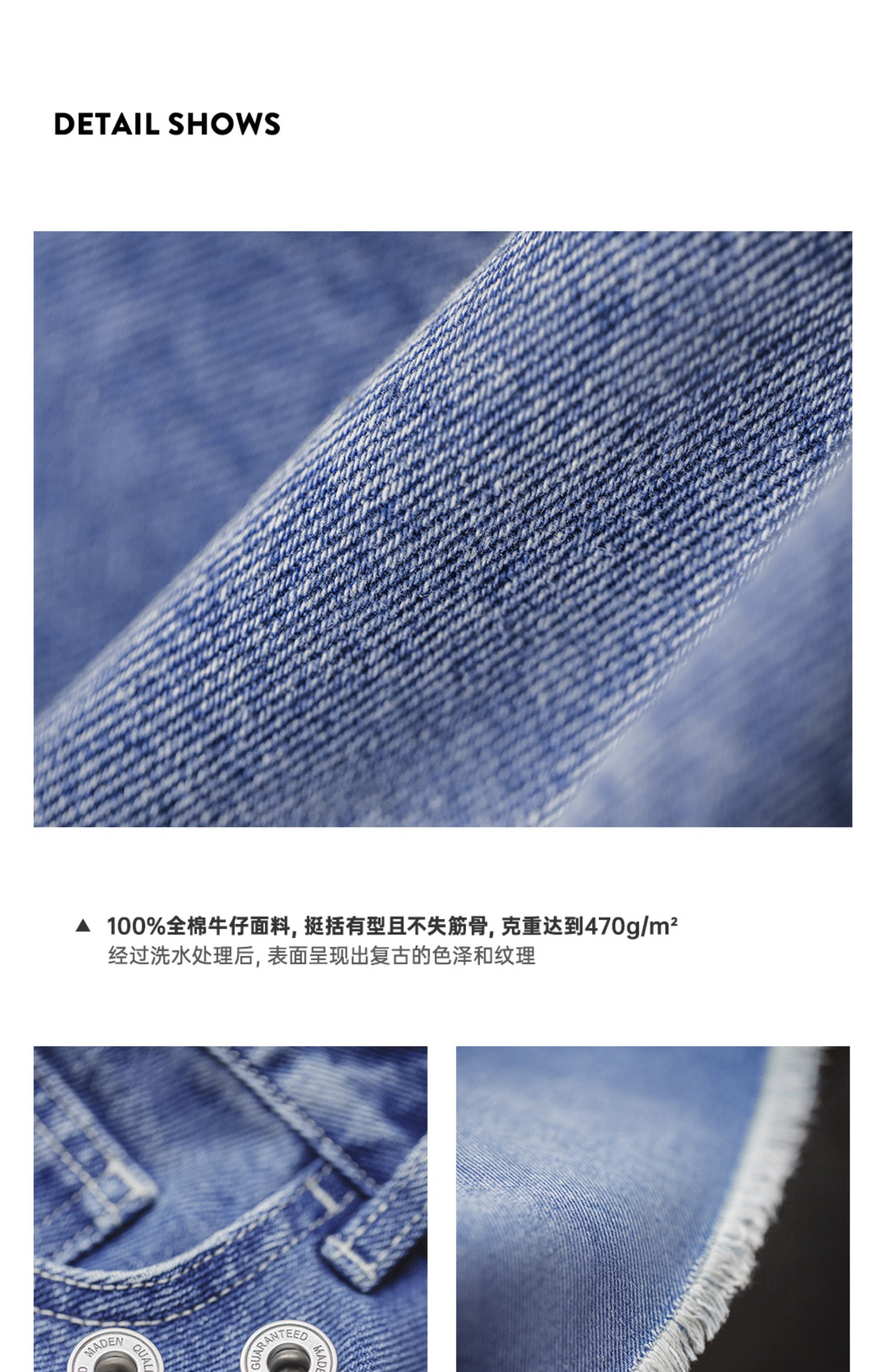 工装优选美式复古泼墨涂鸦牛仔裤浅蓝色竹节纹水洗直筒伐木裤男春