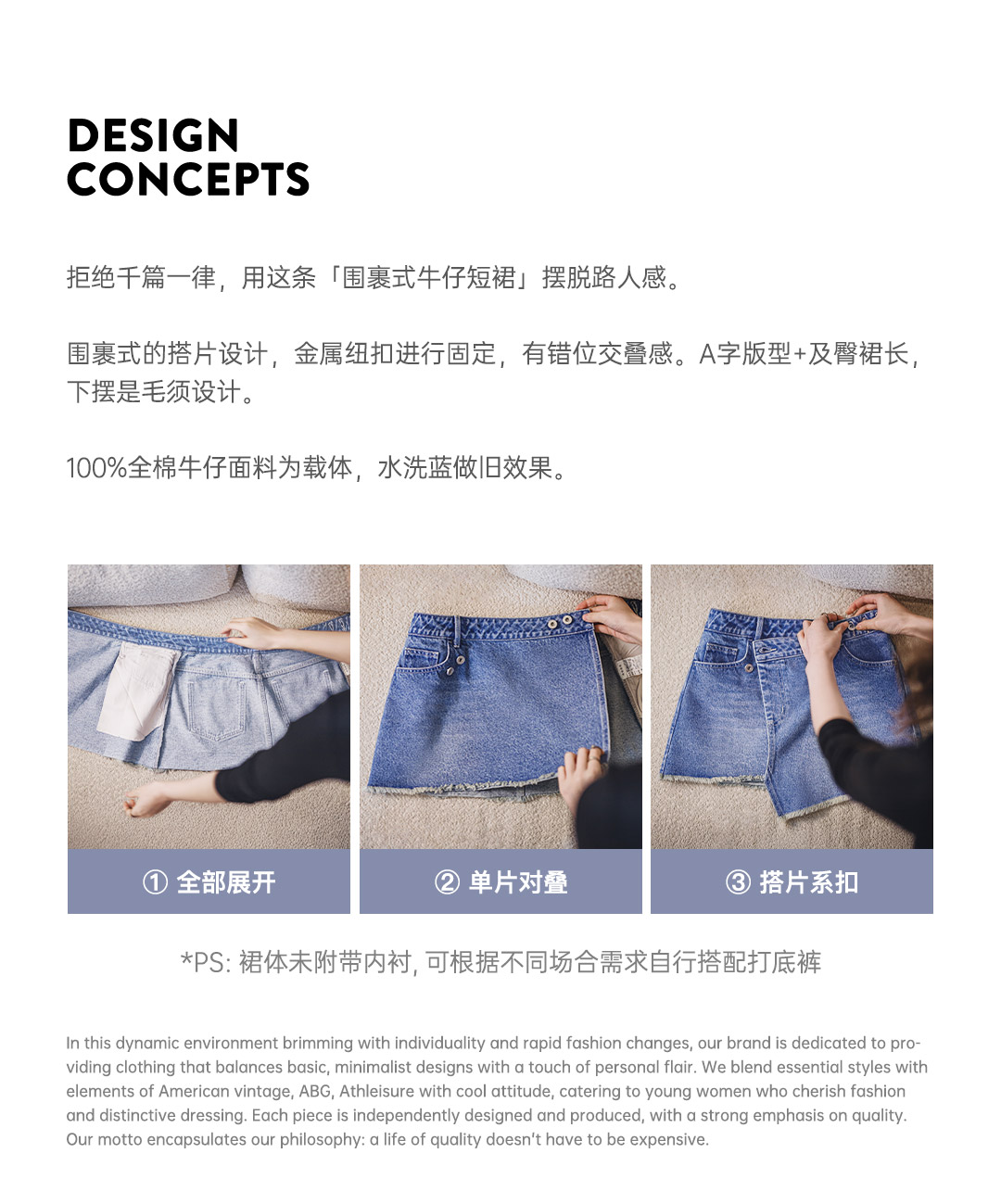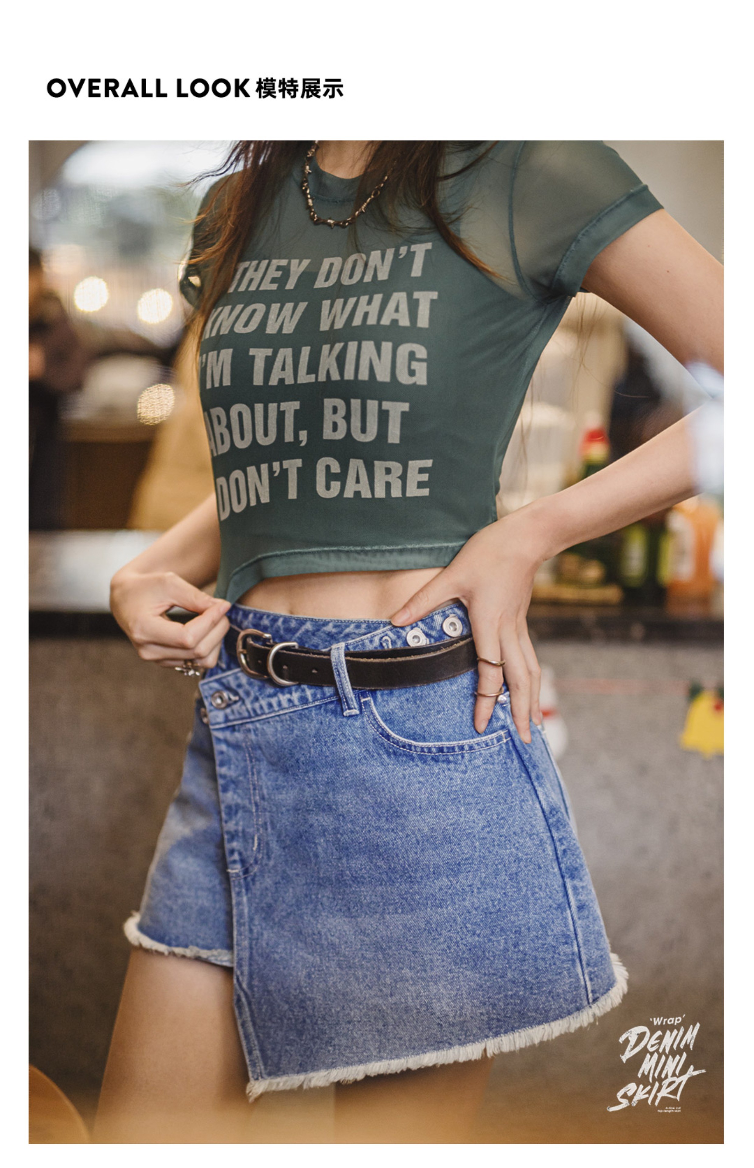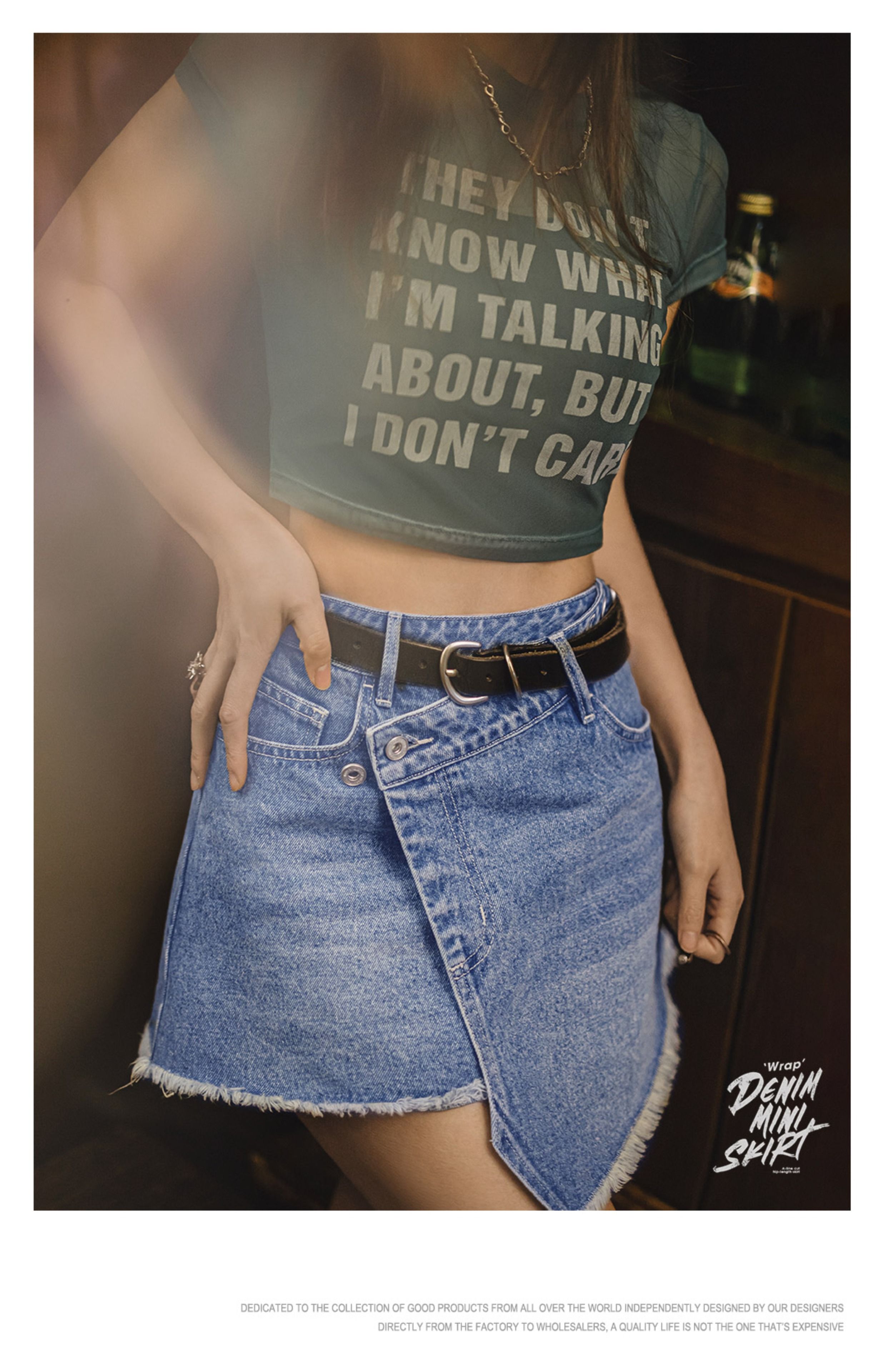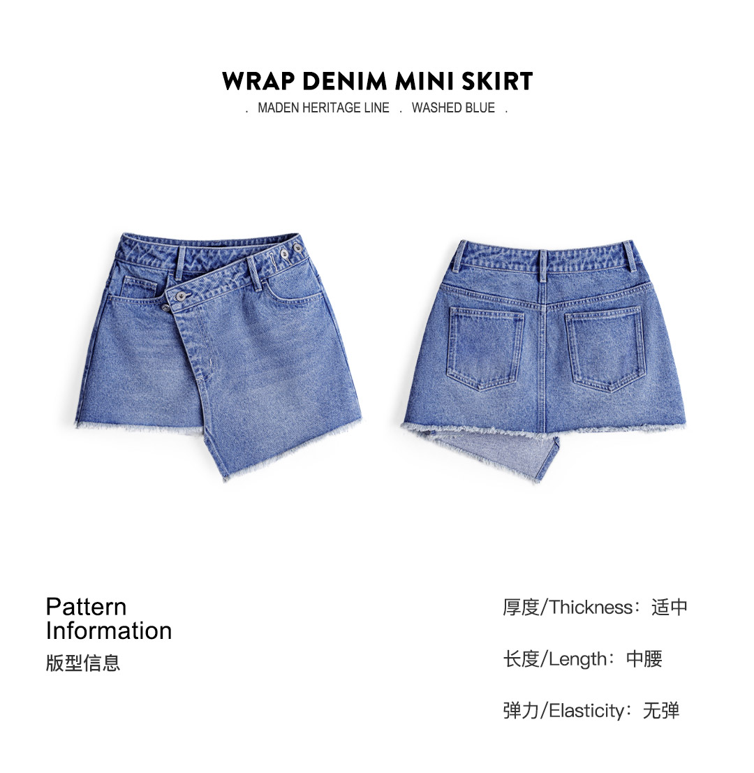 马登解构感水洗蓝牛仔半裙春夏复古围裹式不规则半身裙a字短裙女