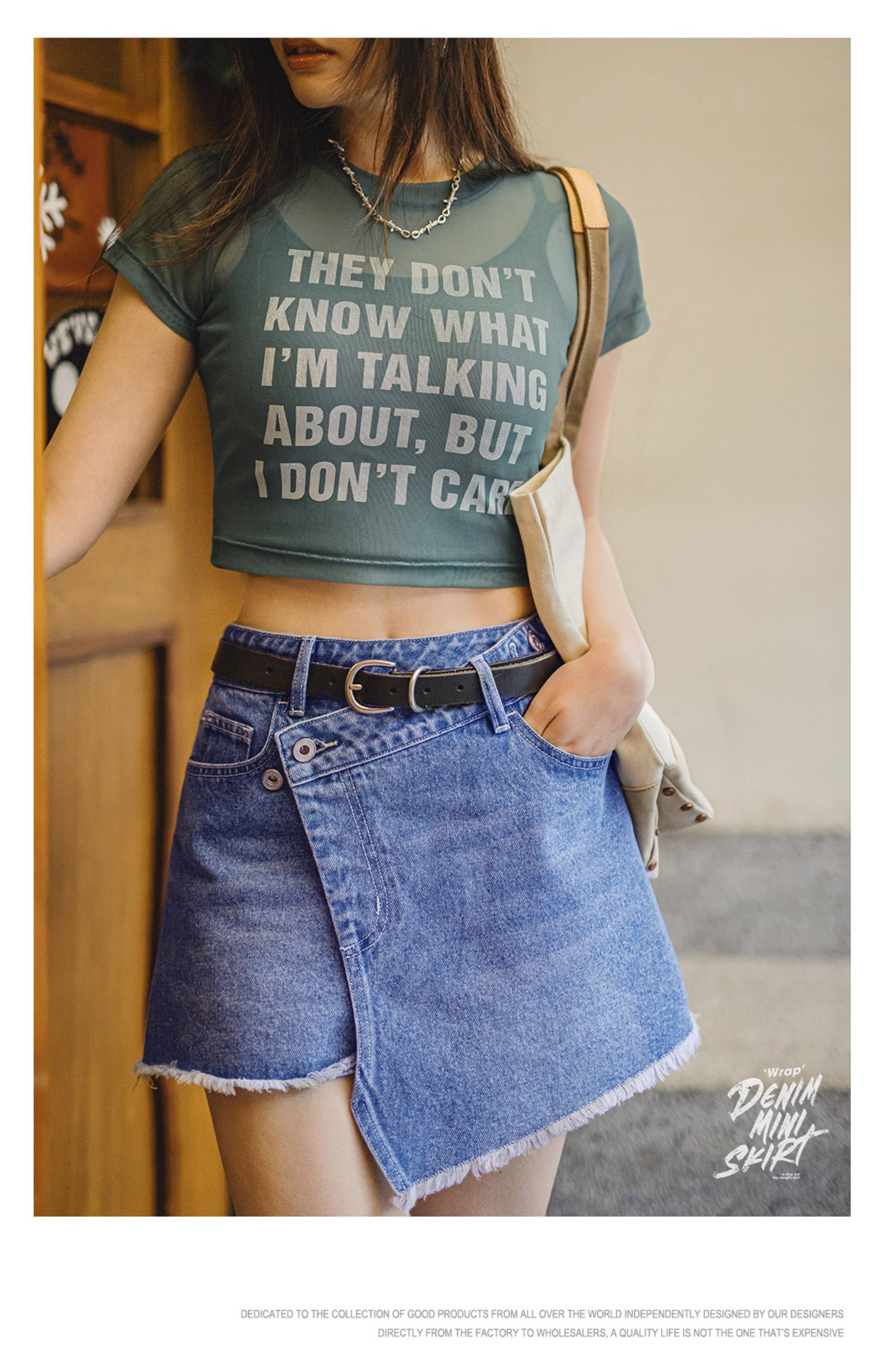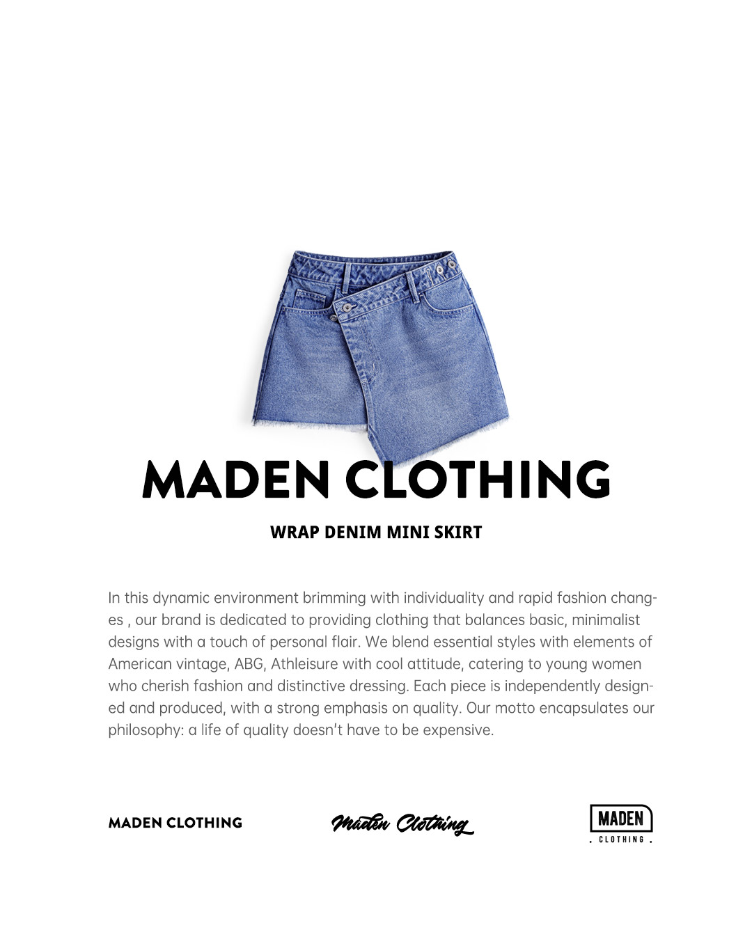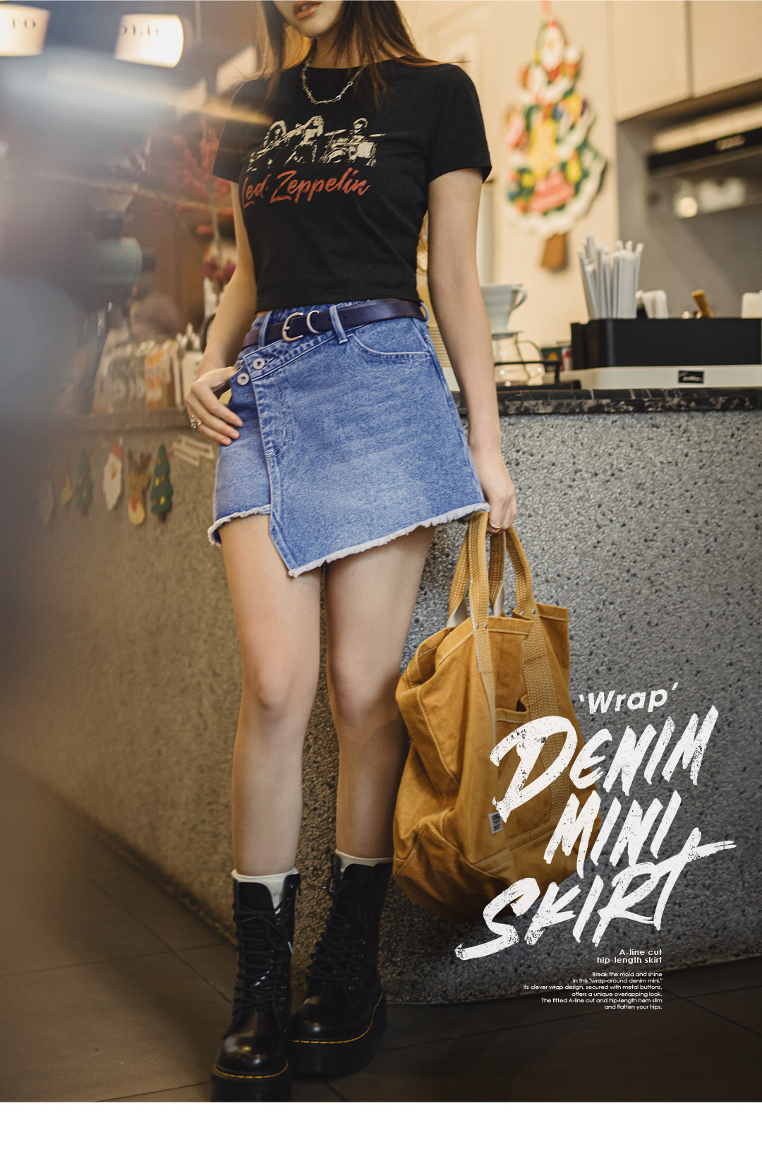 马登解构感水洗蓝牛仔半裙春夏复古围裹式不规则半身裙a字短裙女