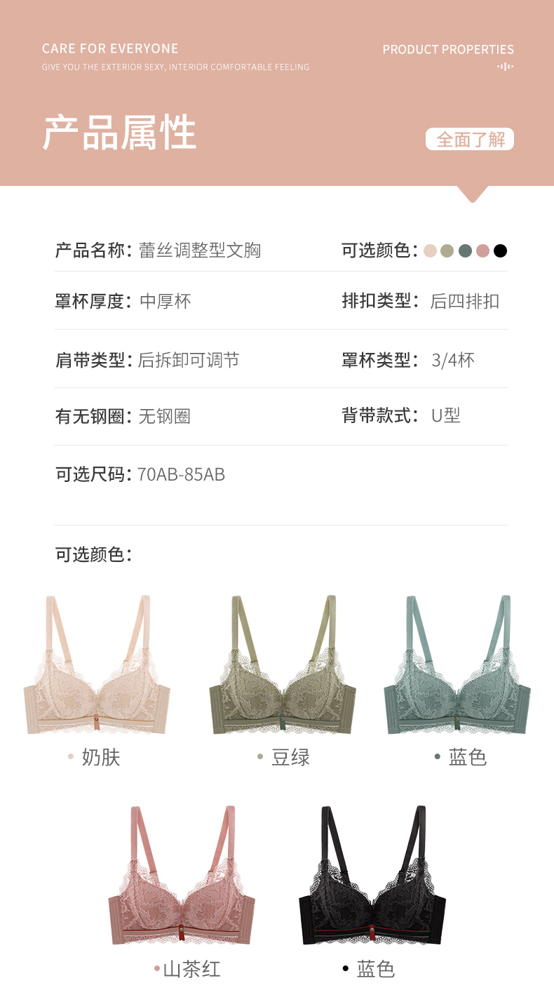 雅黛丽内衣女空芯杯小胸聚拢调整型收副乳胸罩无钢圈蕾丝文胸