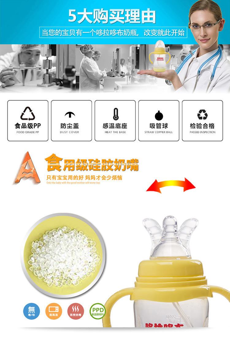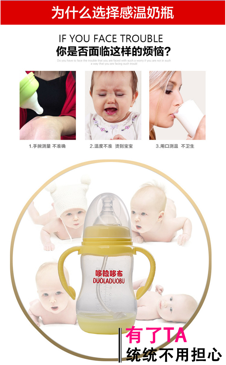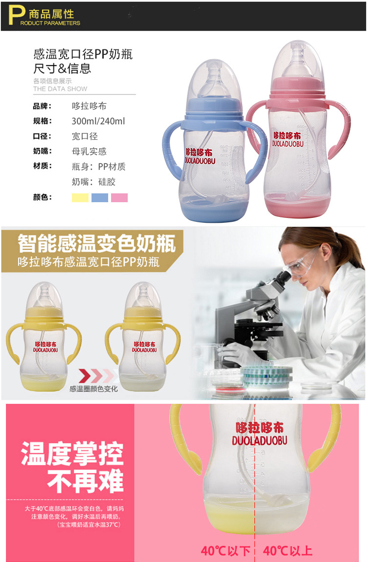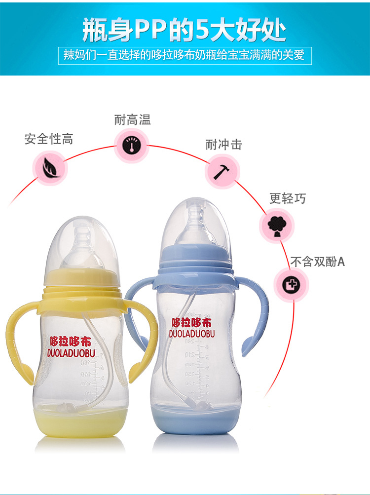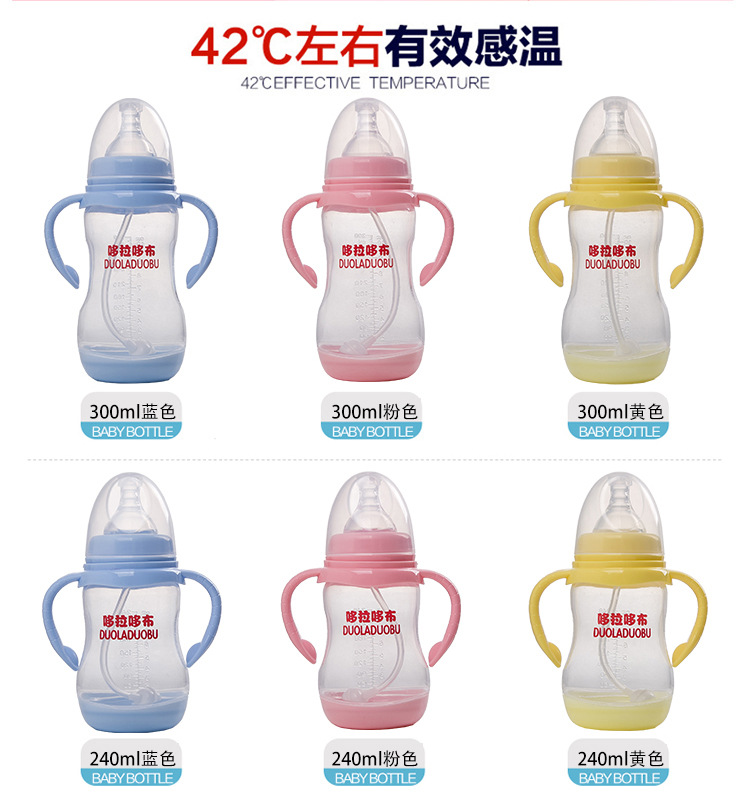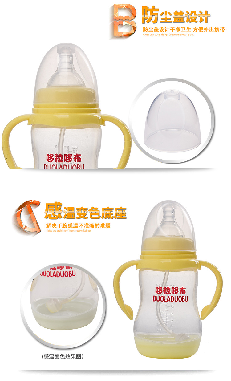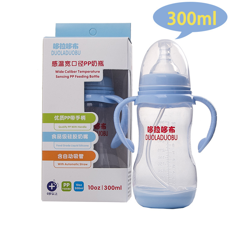 【母婴】双手柄PP宽口感温奶瓶 带吸管硅胶奶嘴 300ml
