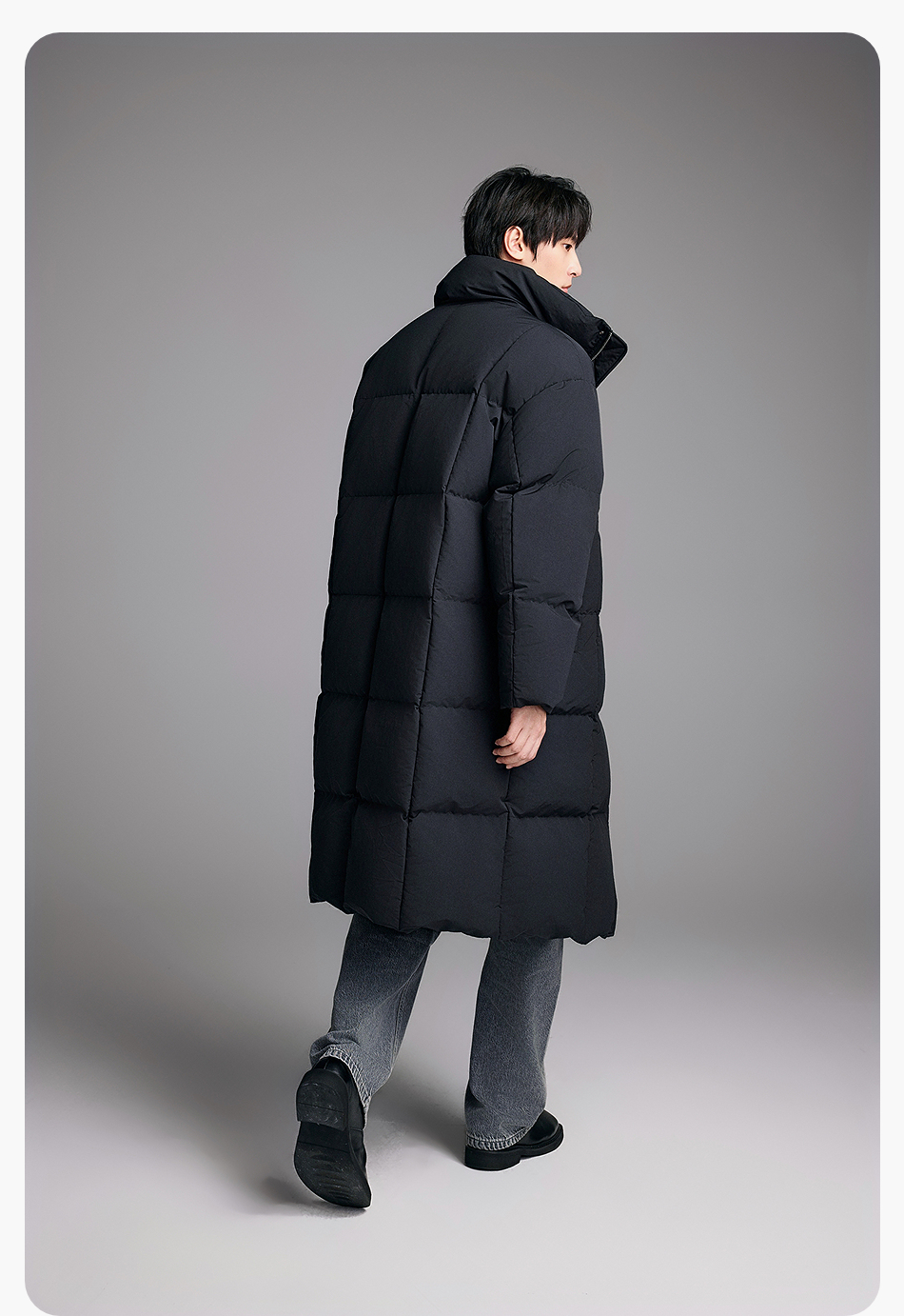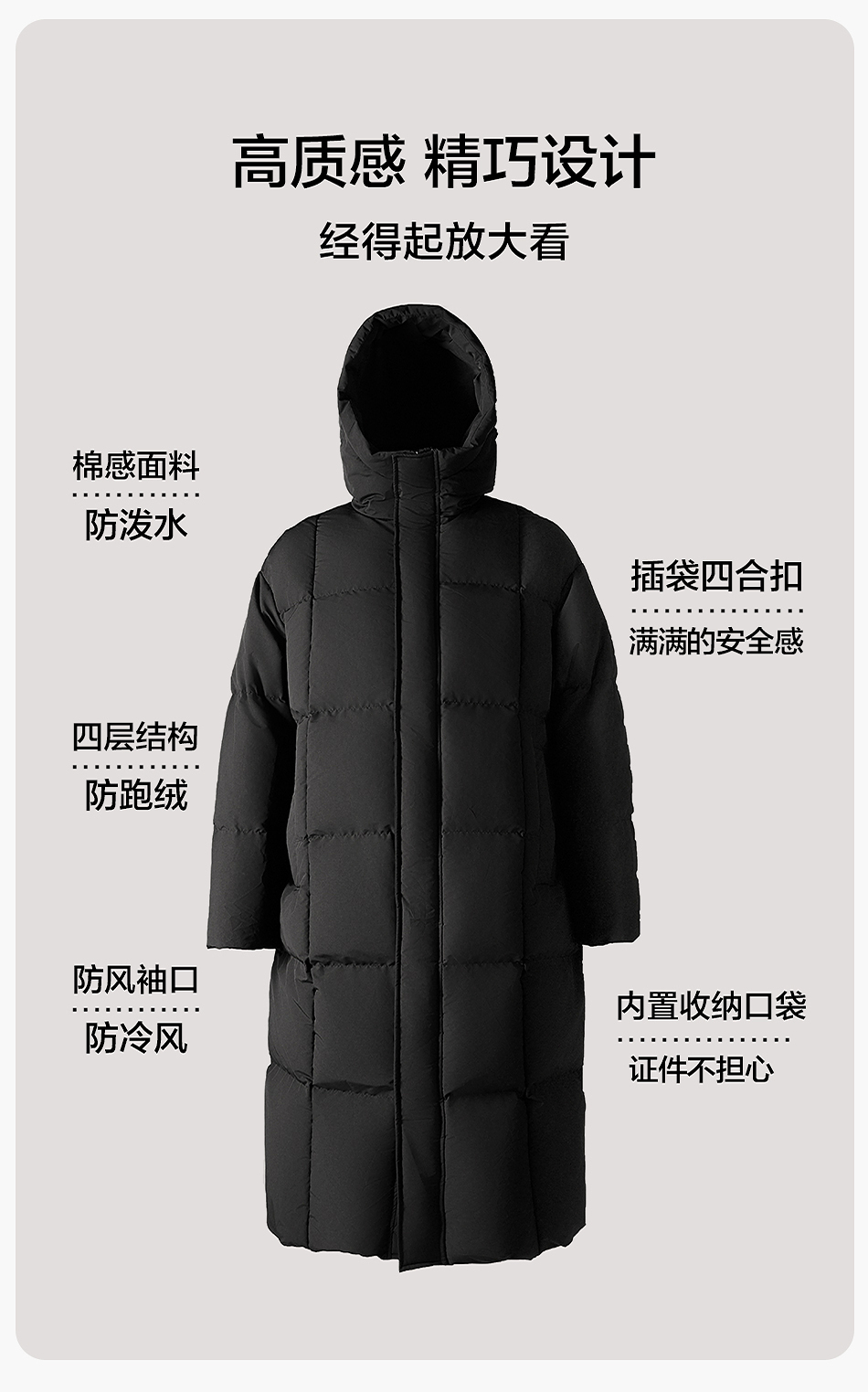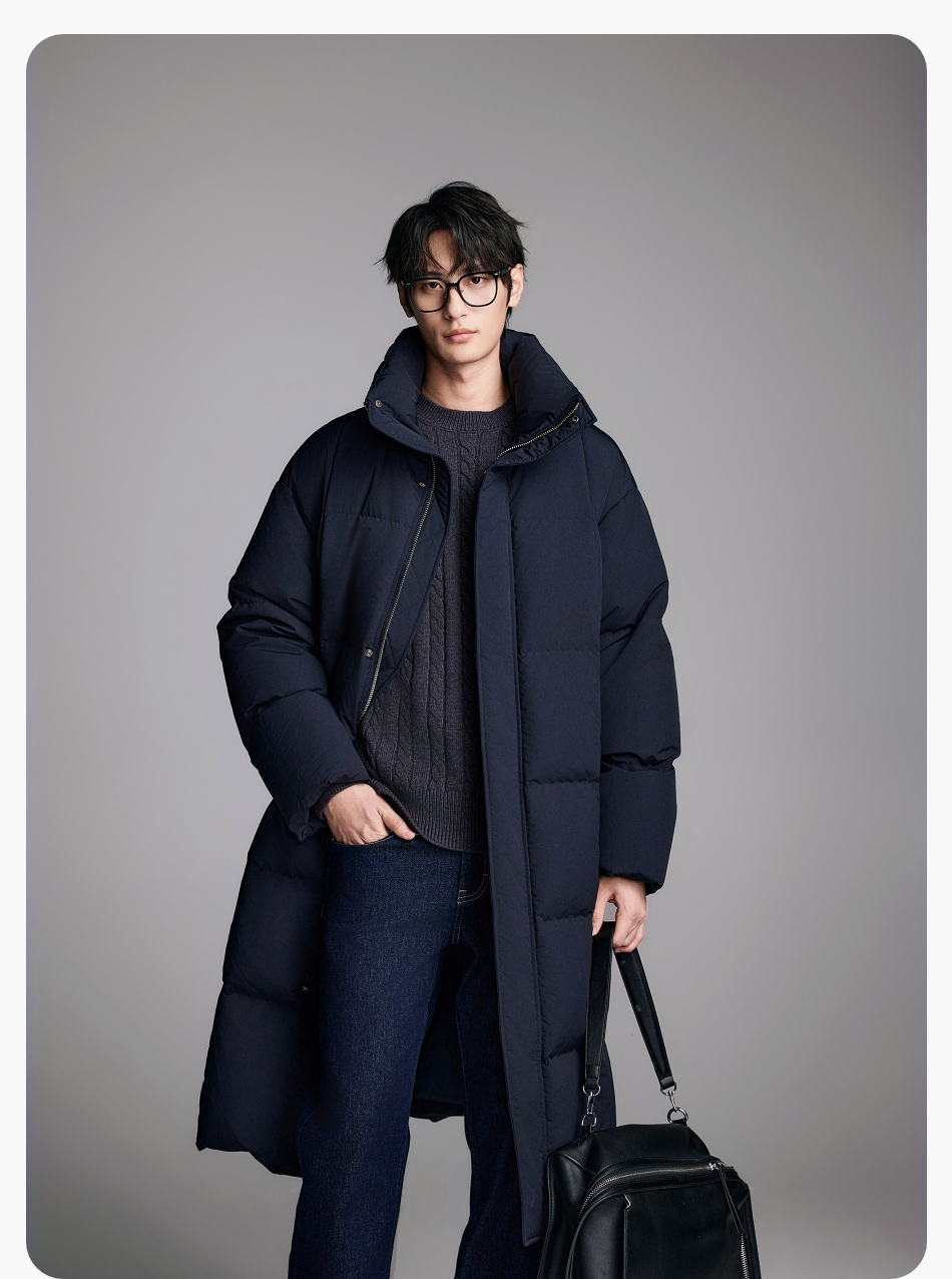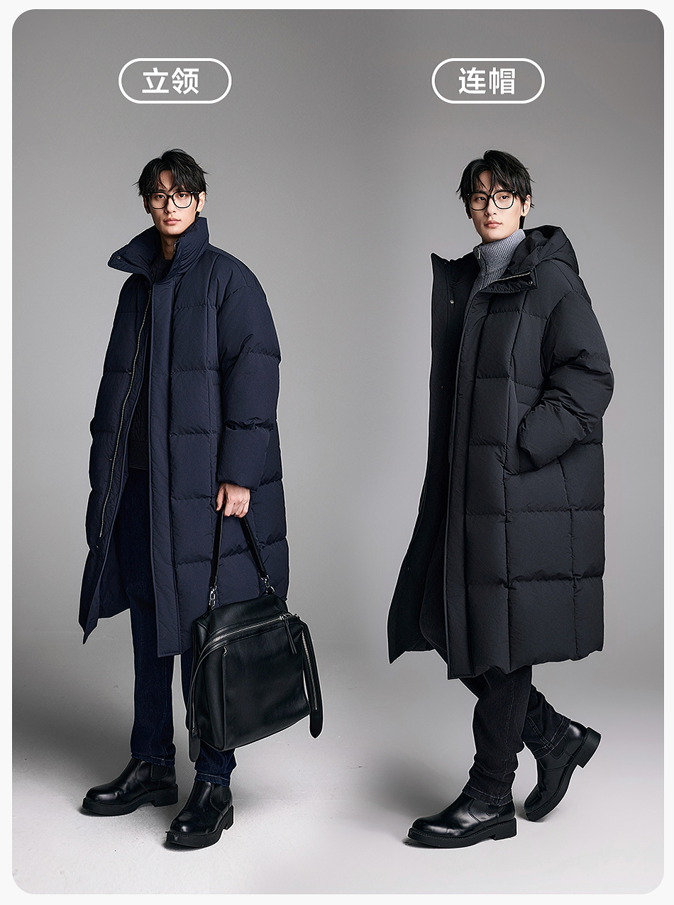 棉仓357815014-宽松版50D无胆防绒立领超长款木拉羽绒服