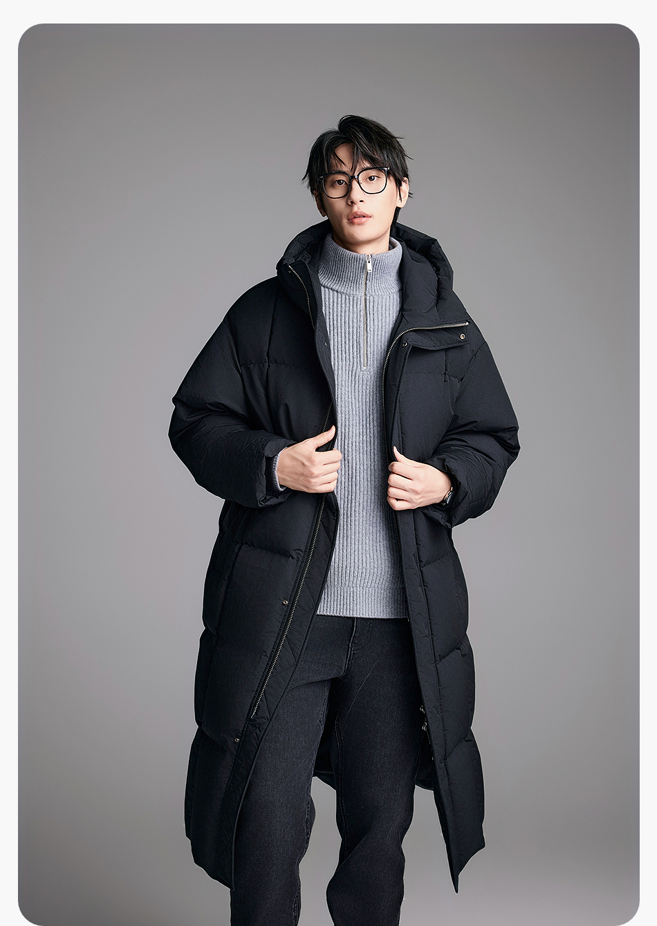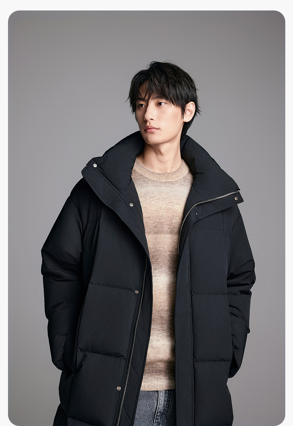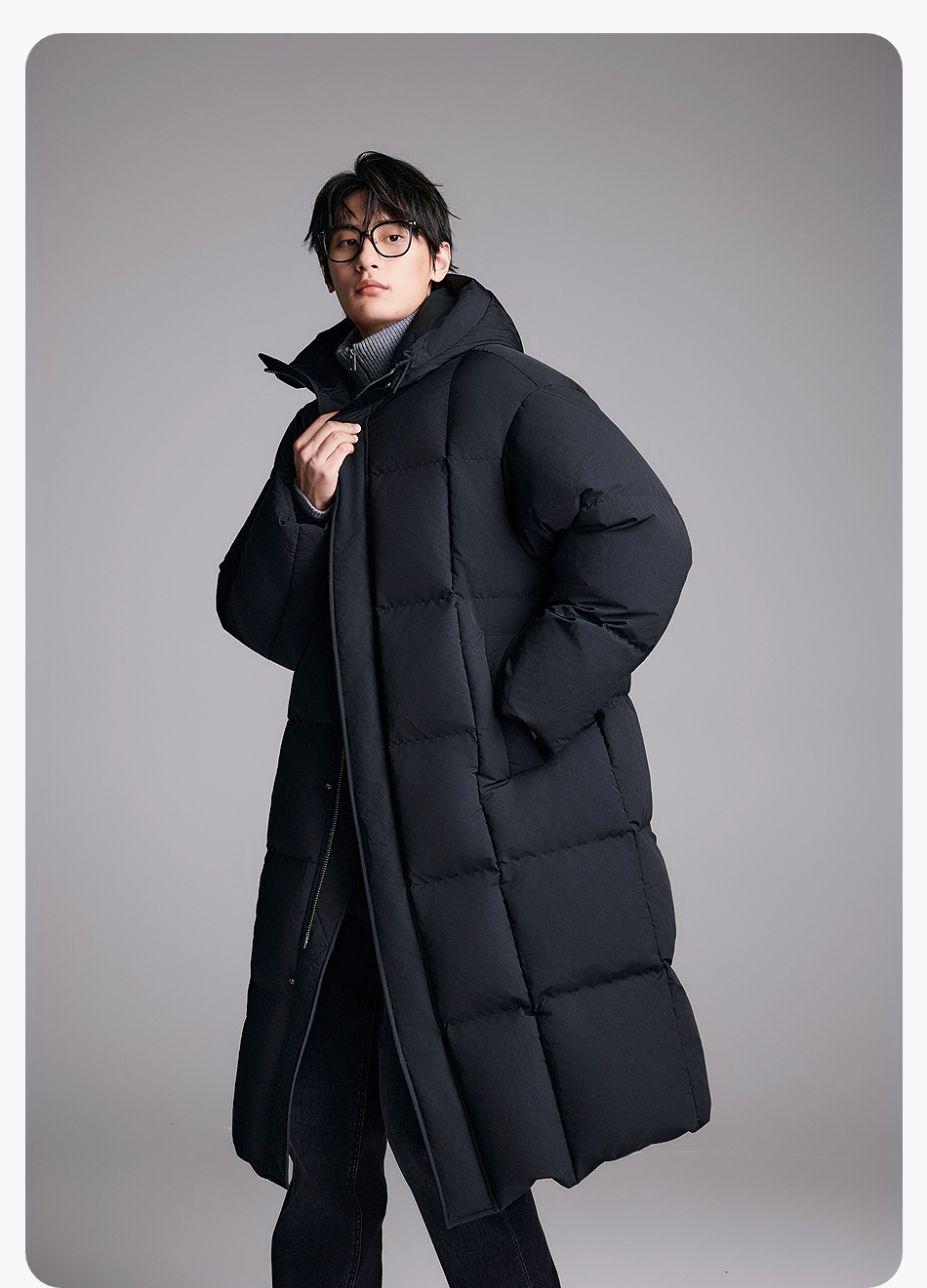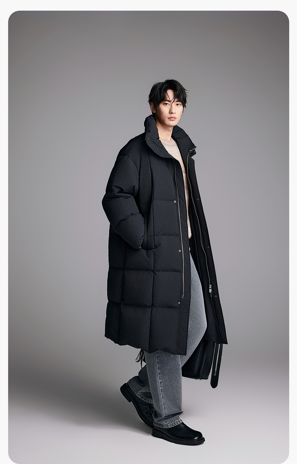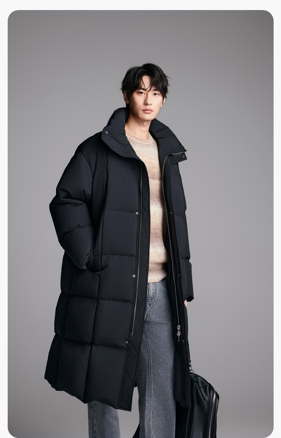 棉仓357815014-宽松版50D无胆防绒立领超长款木拉羽绒服