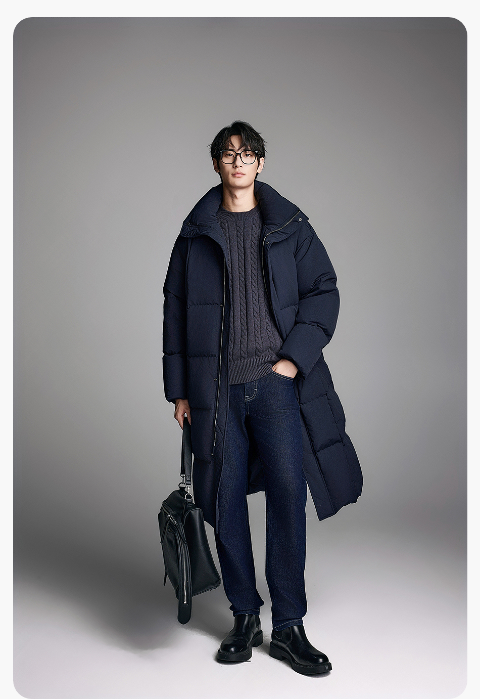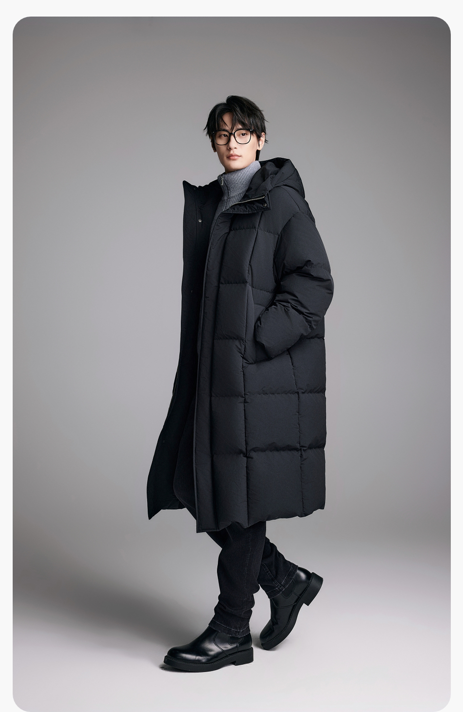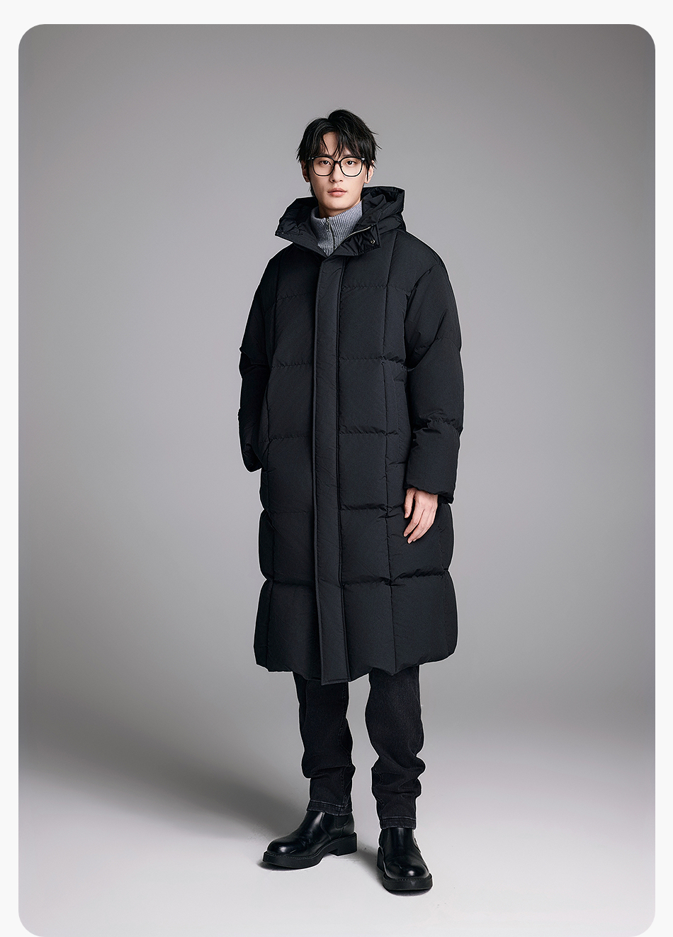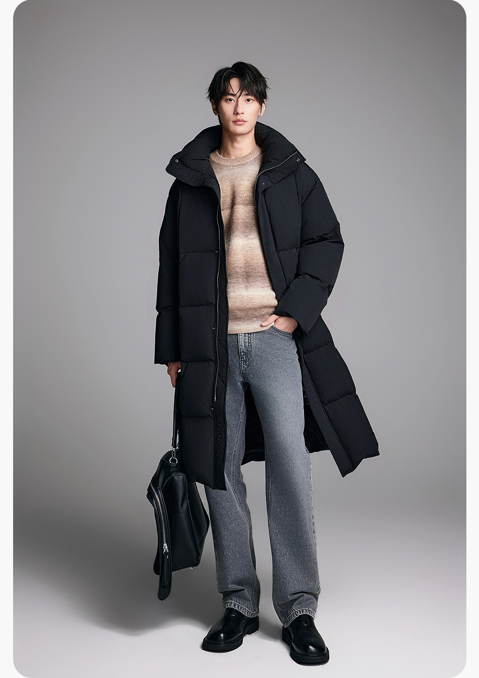 棉仓357815014-宽松版50D无胆防绒立领超长款木拉羽绒服
