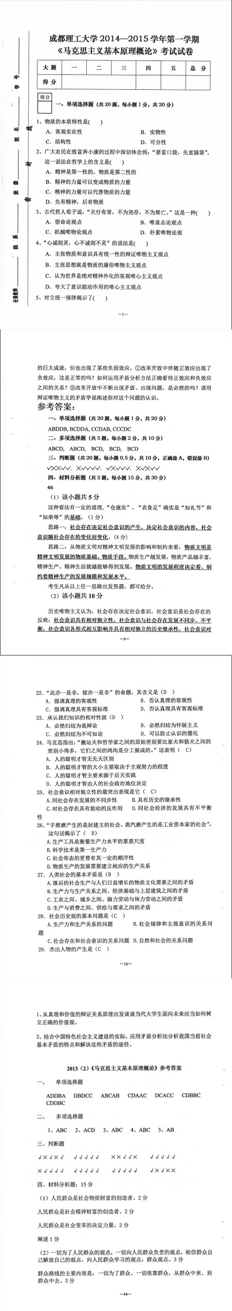 成都理工大学2013-2014学年第一学期《马克思主义基本原理概论》考试试卷(含答案)P37-45