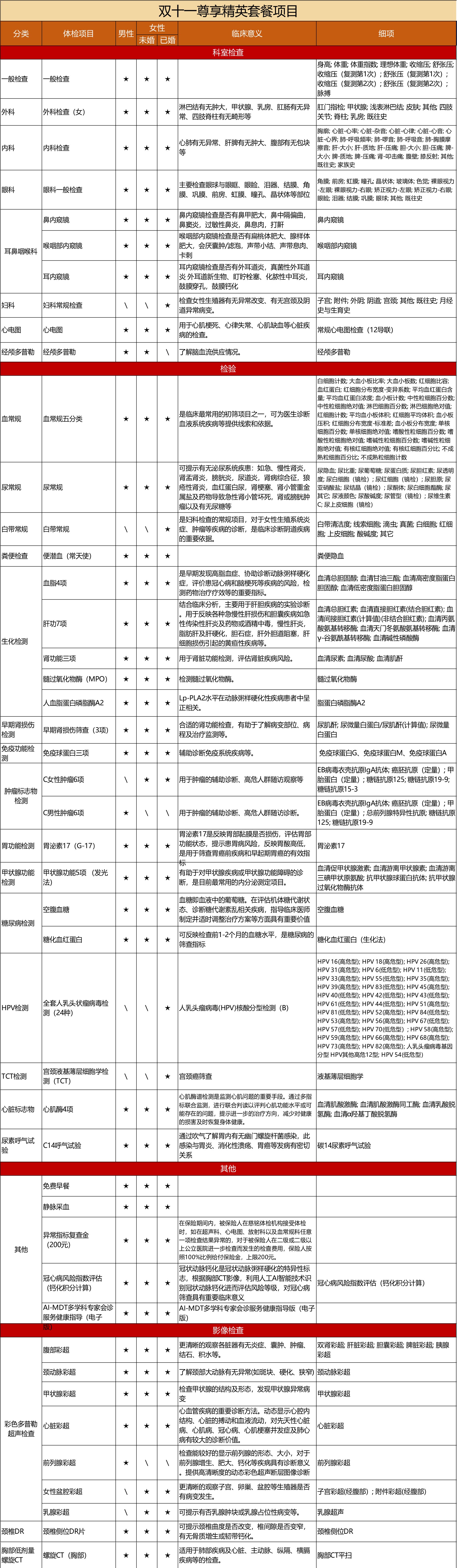 精英体检套餐