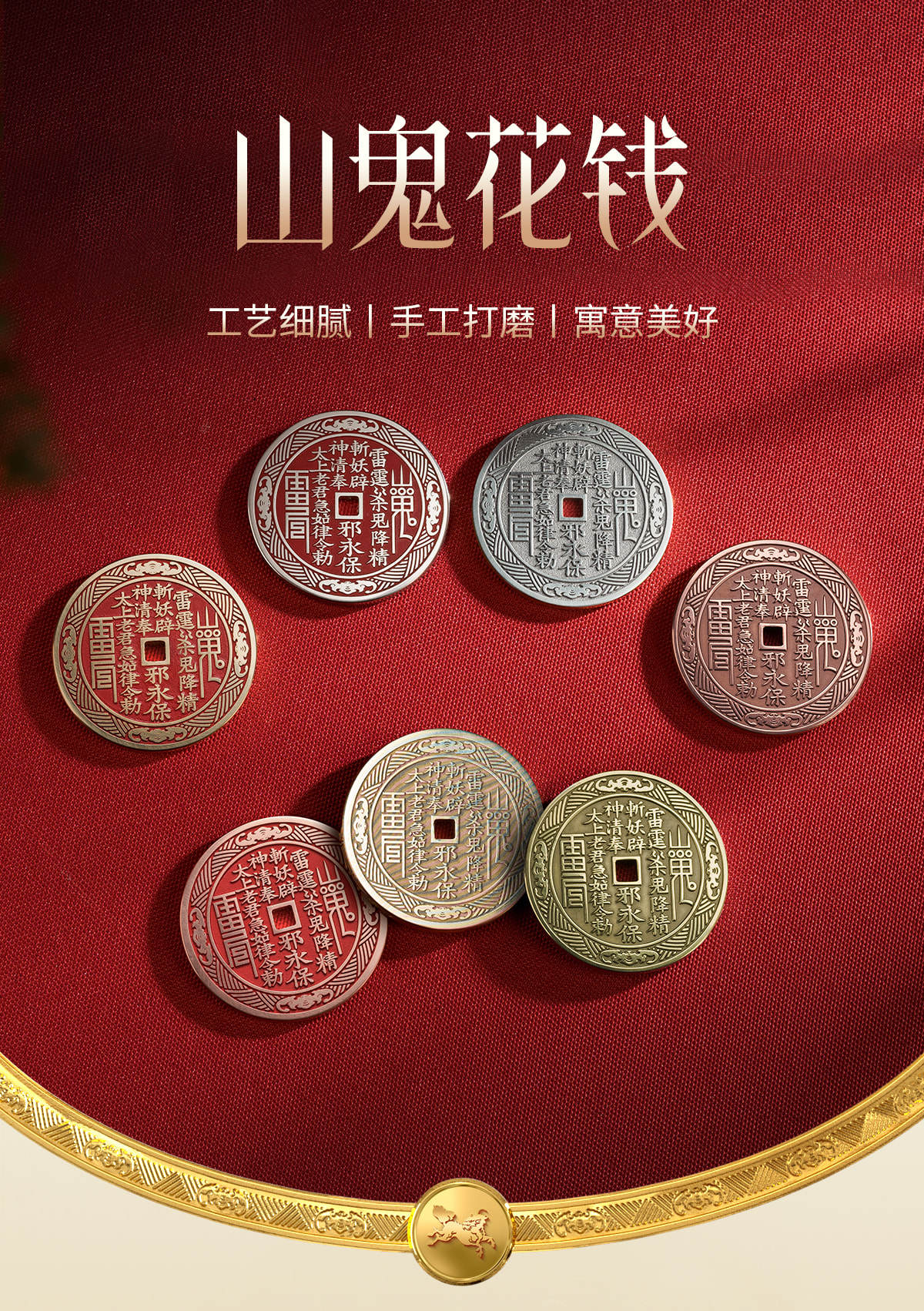 铜师傅《山鬼花钱》吉祥饰品 紫铜黄铜白铜吊坠 家居工艺品挂件