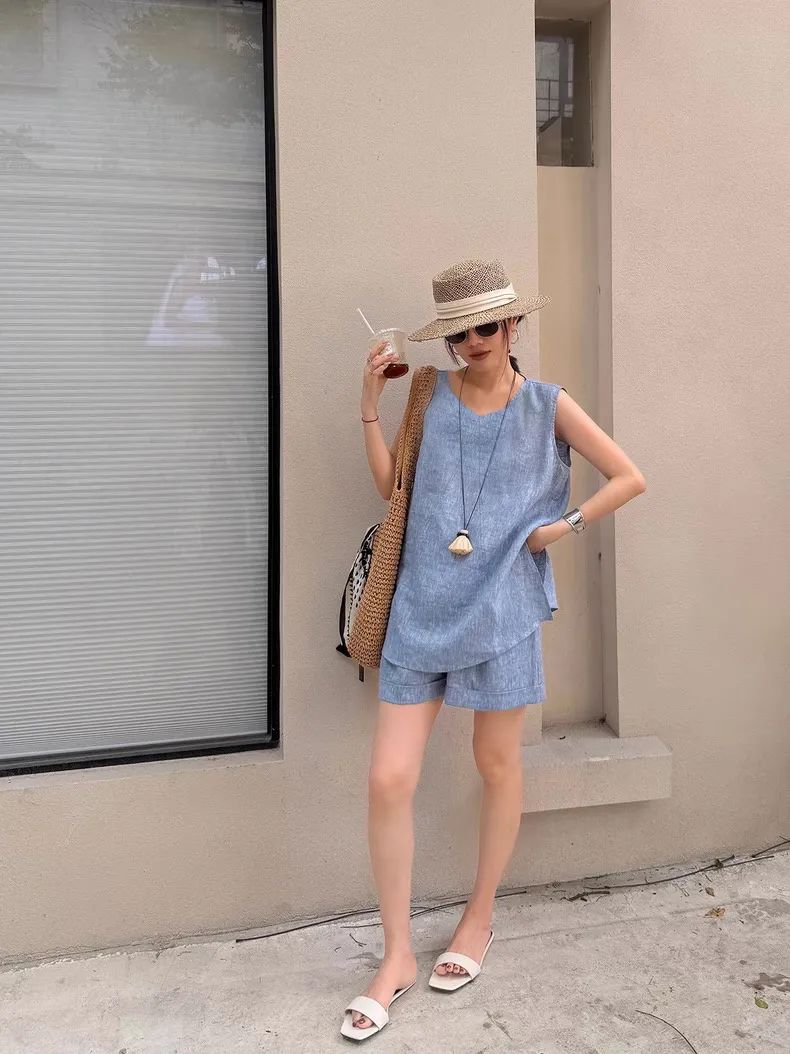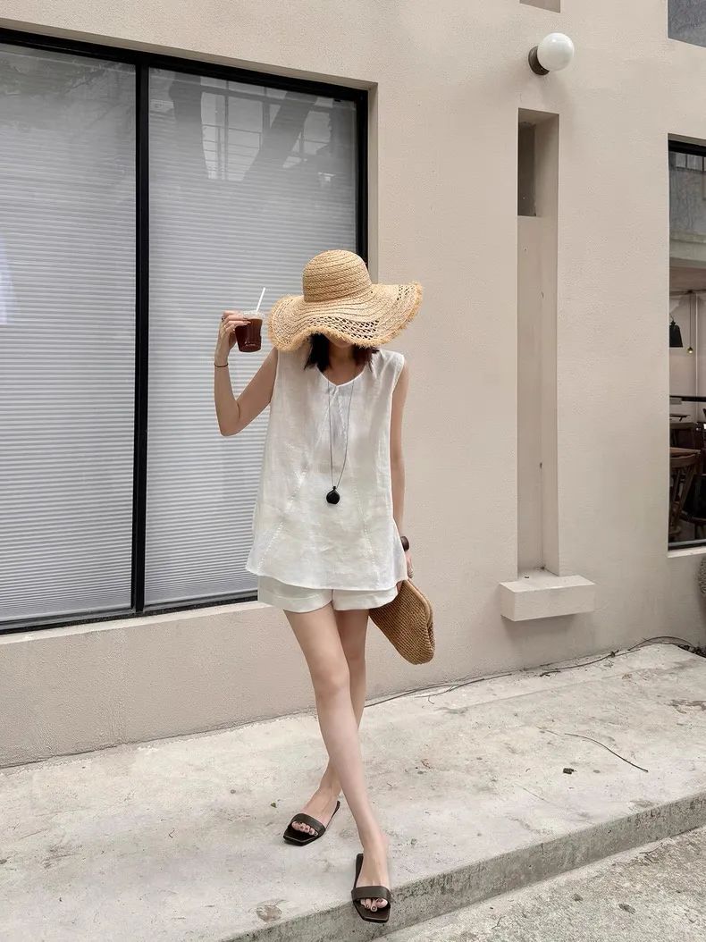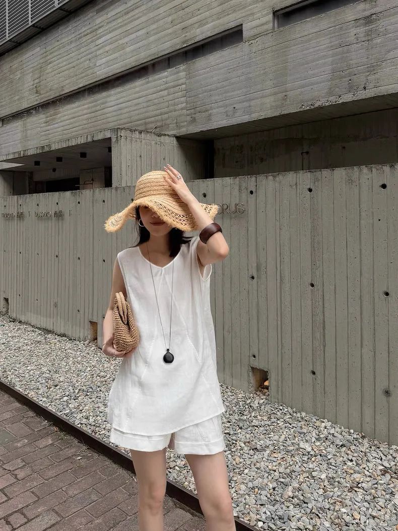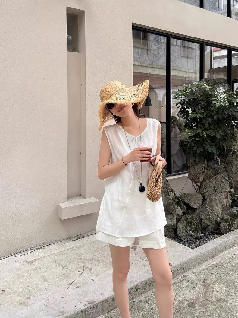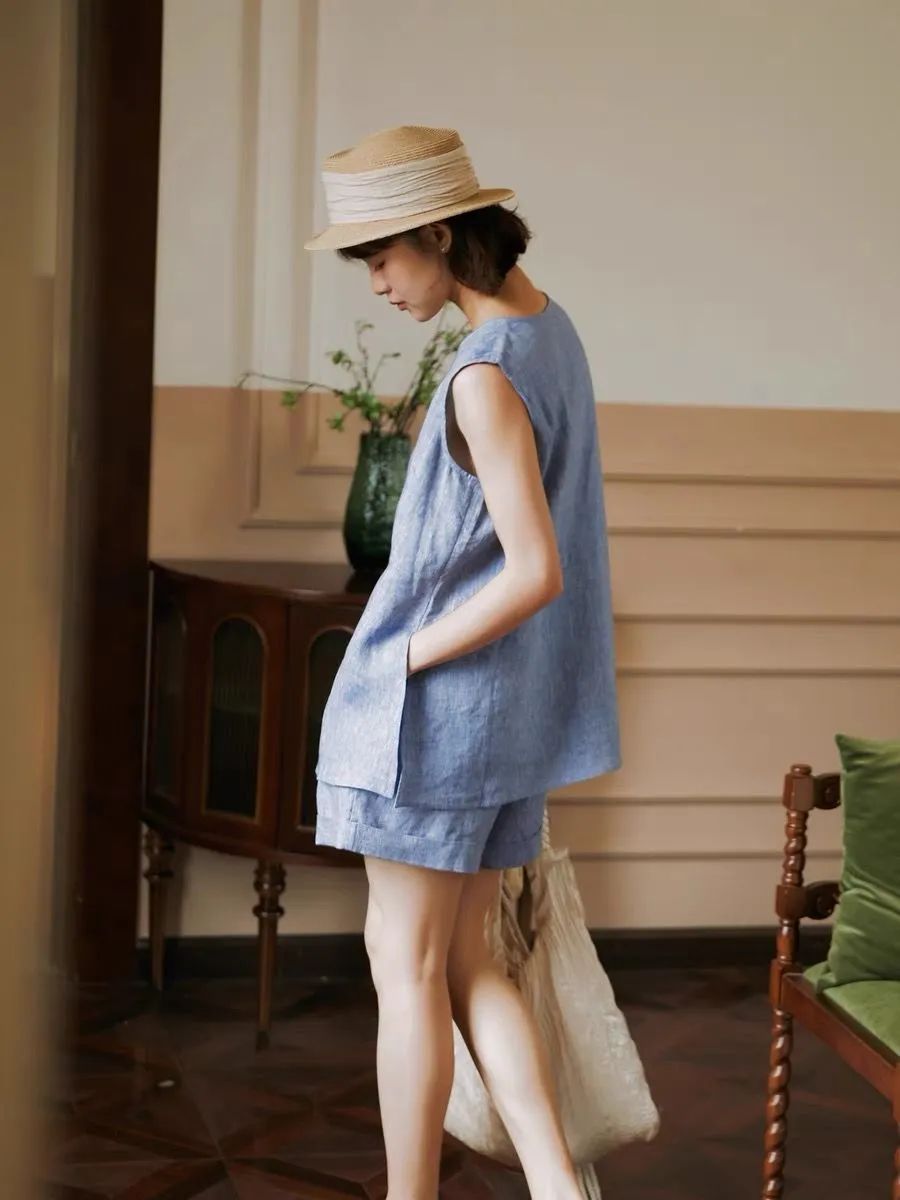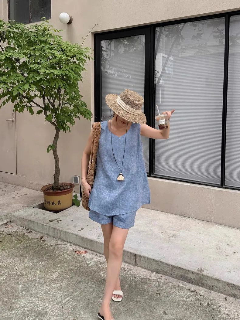 【品名】法式棉麻无袖套装