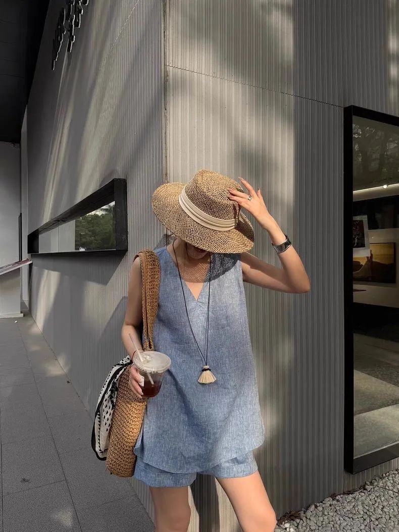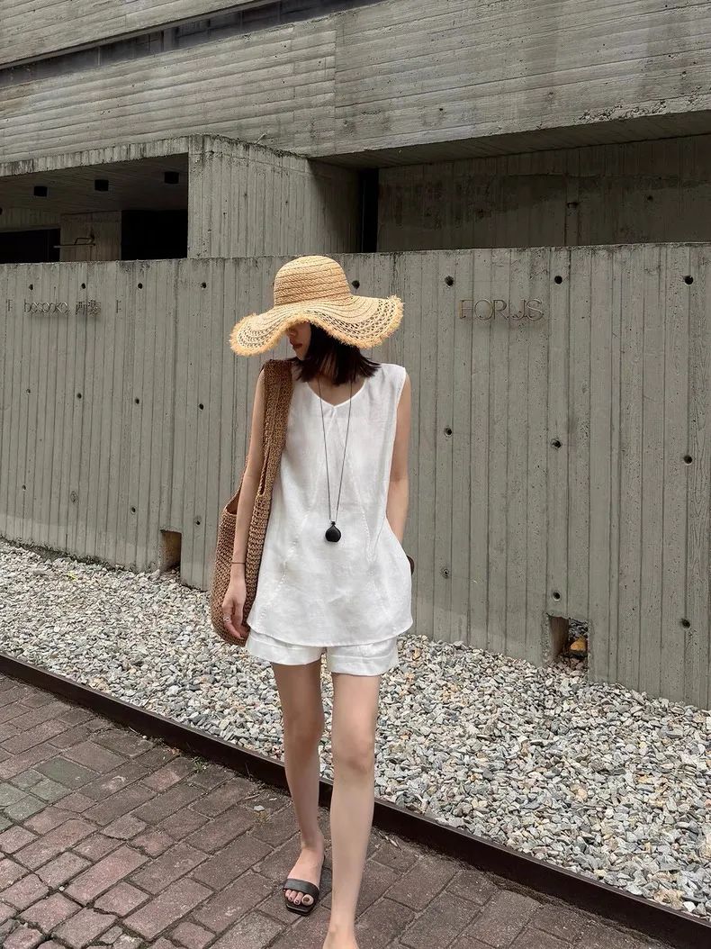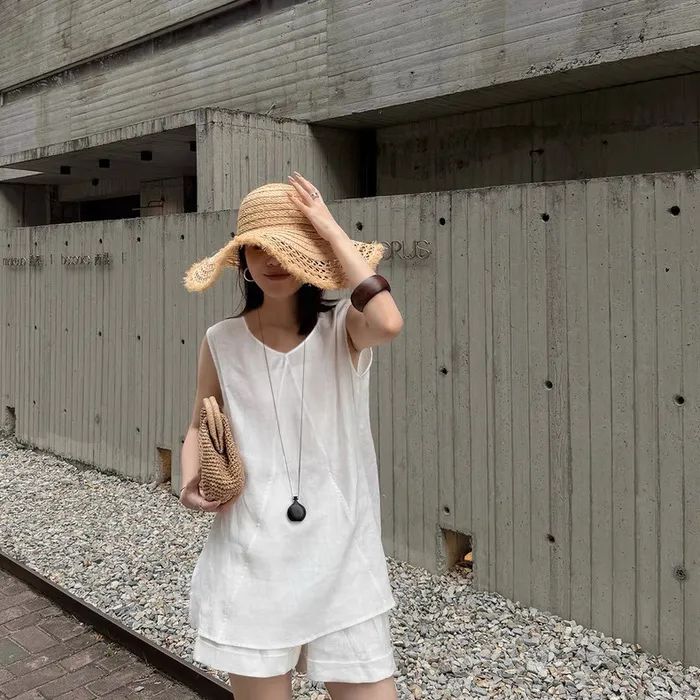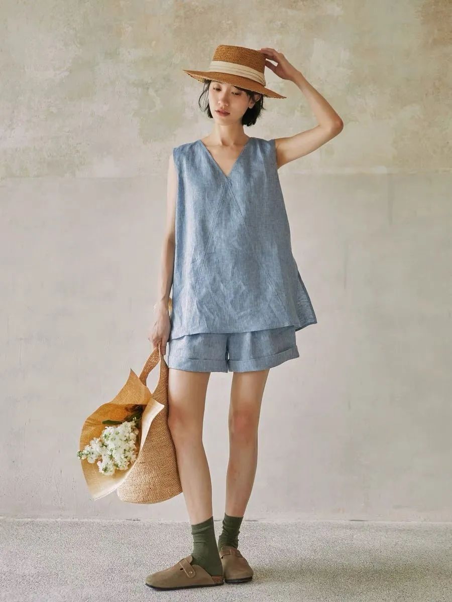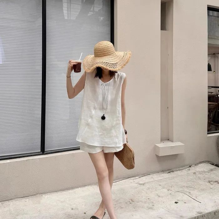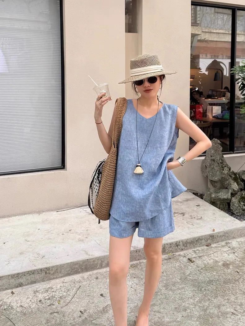 【品名】法式棉麻无袖套装