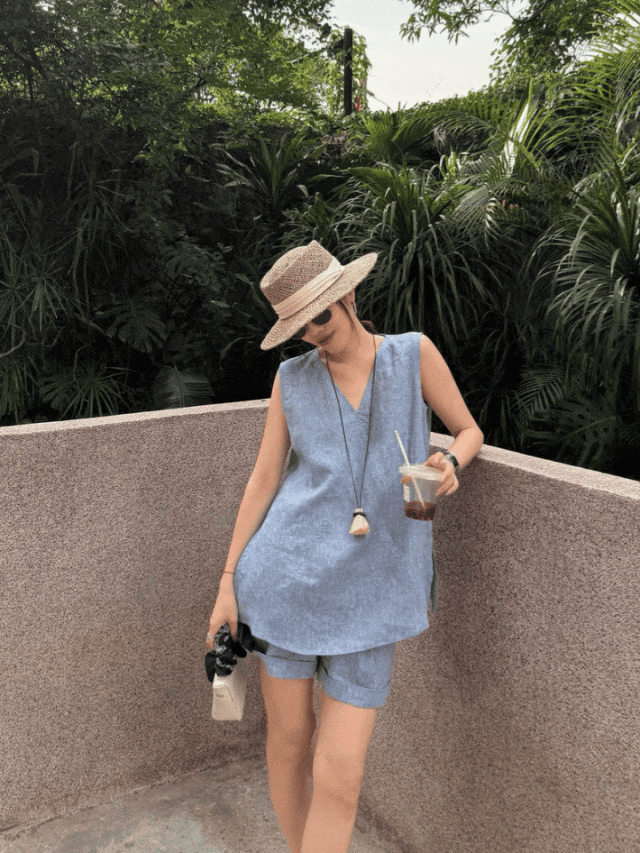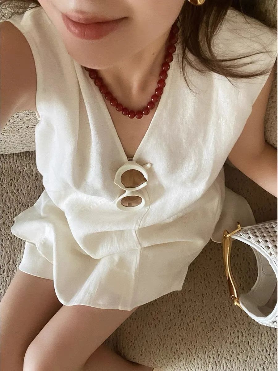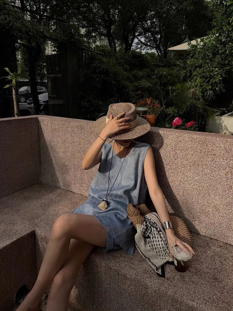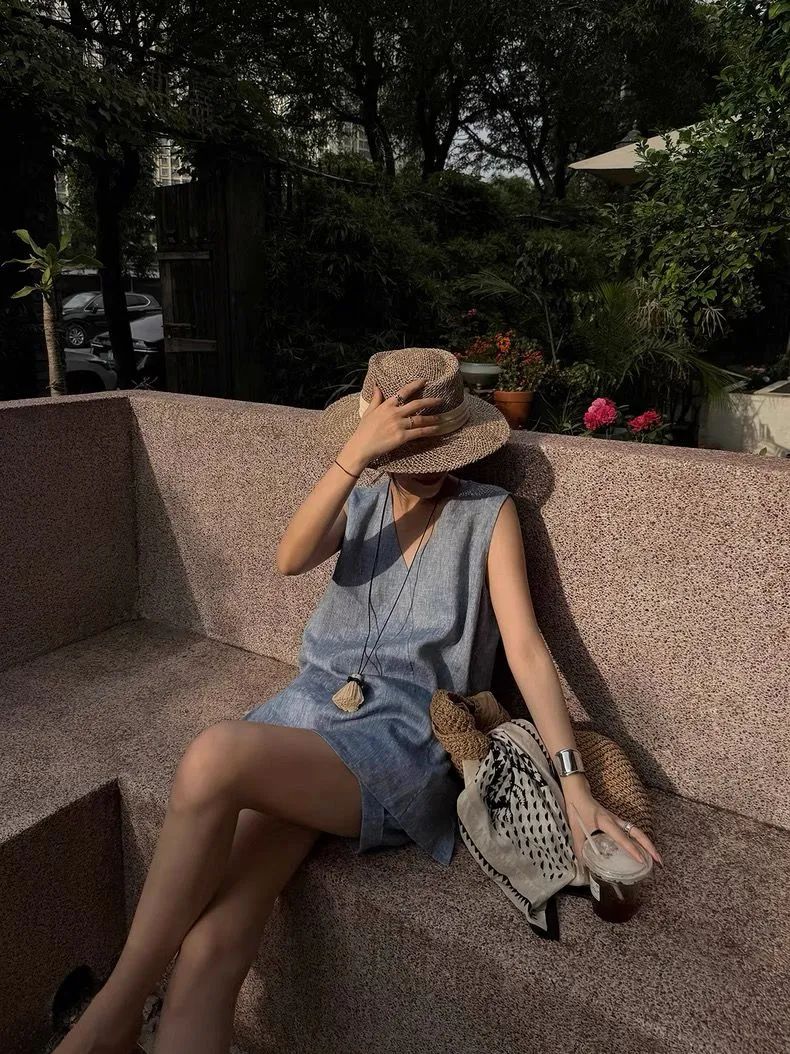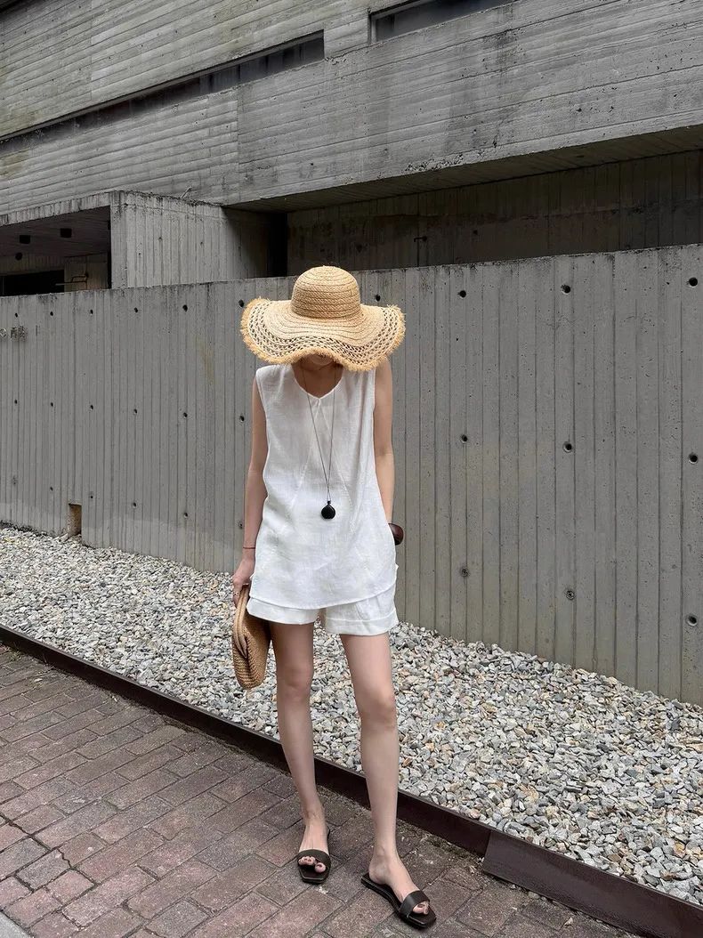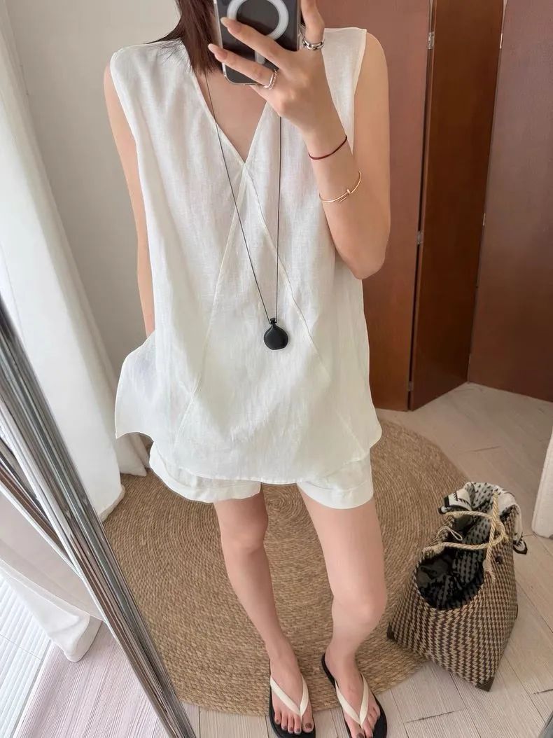 【品名】法式棉麻无袖套装