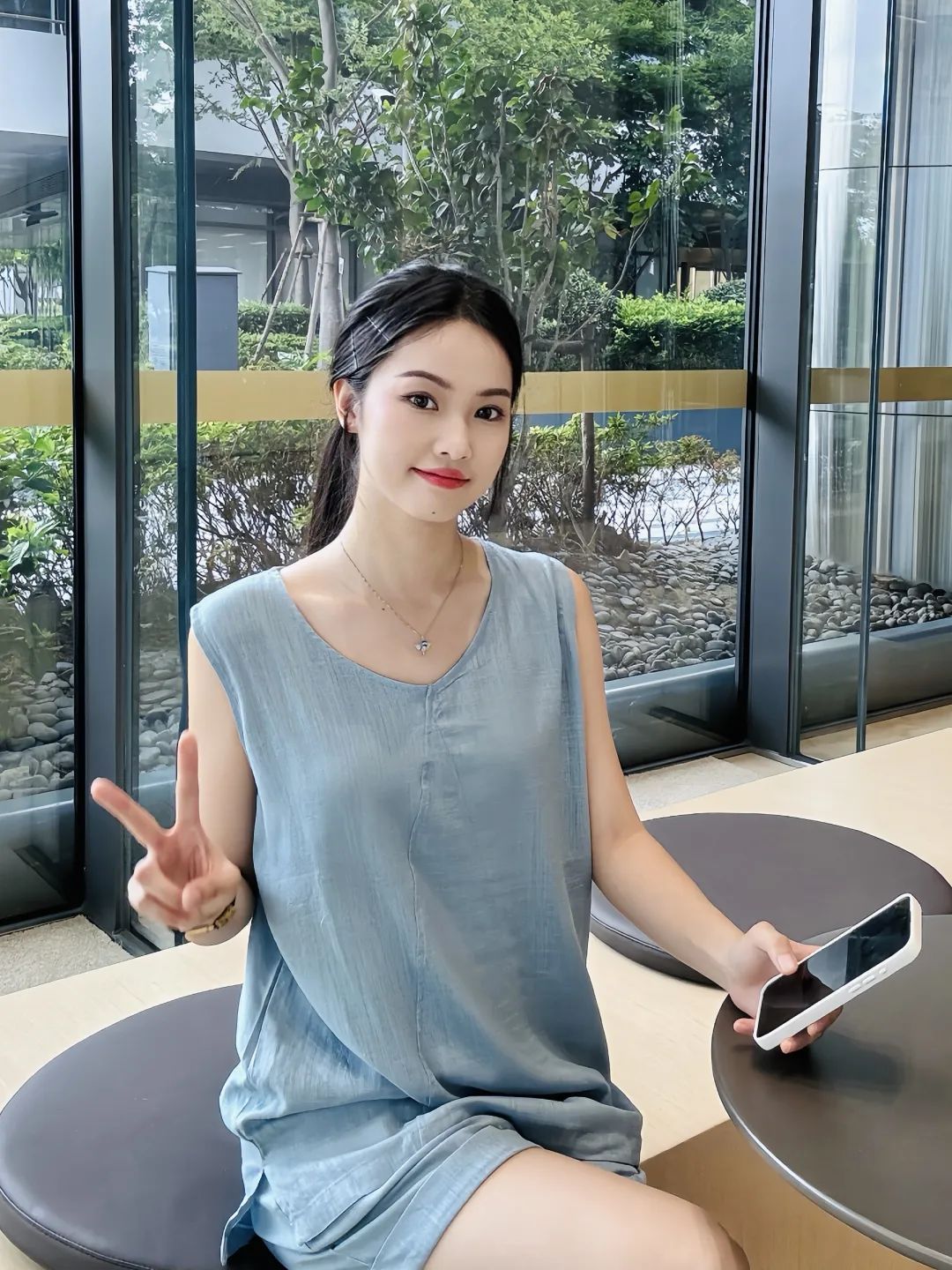 微V领刚好露出锁骨,不暴露又显脸小