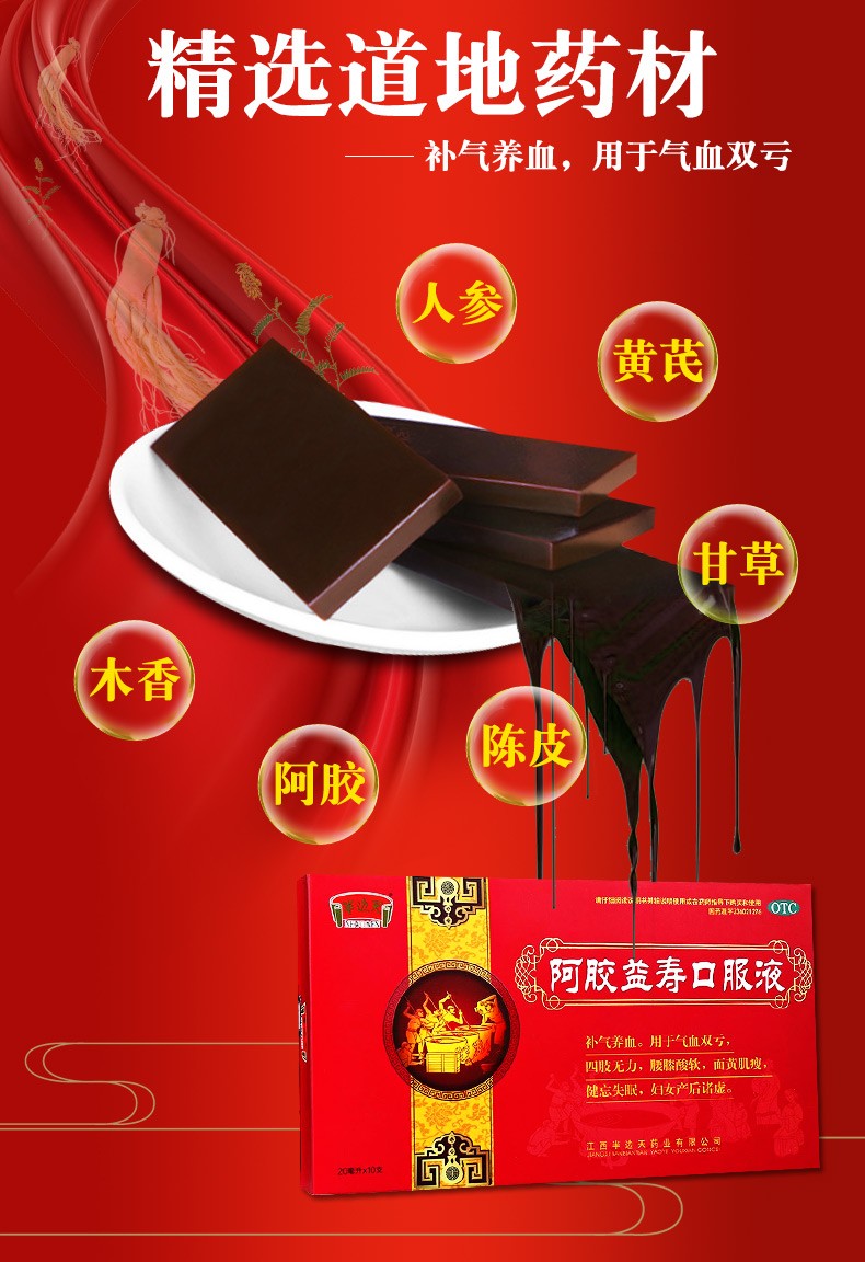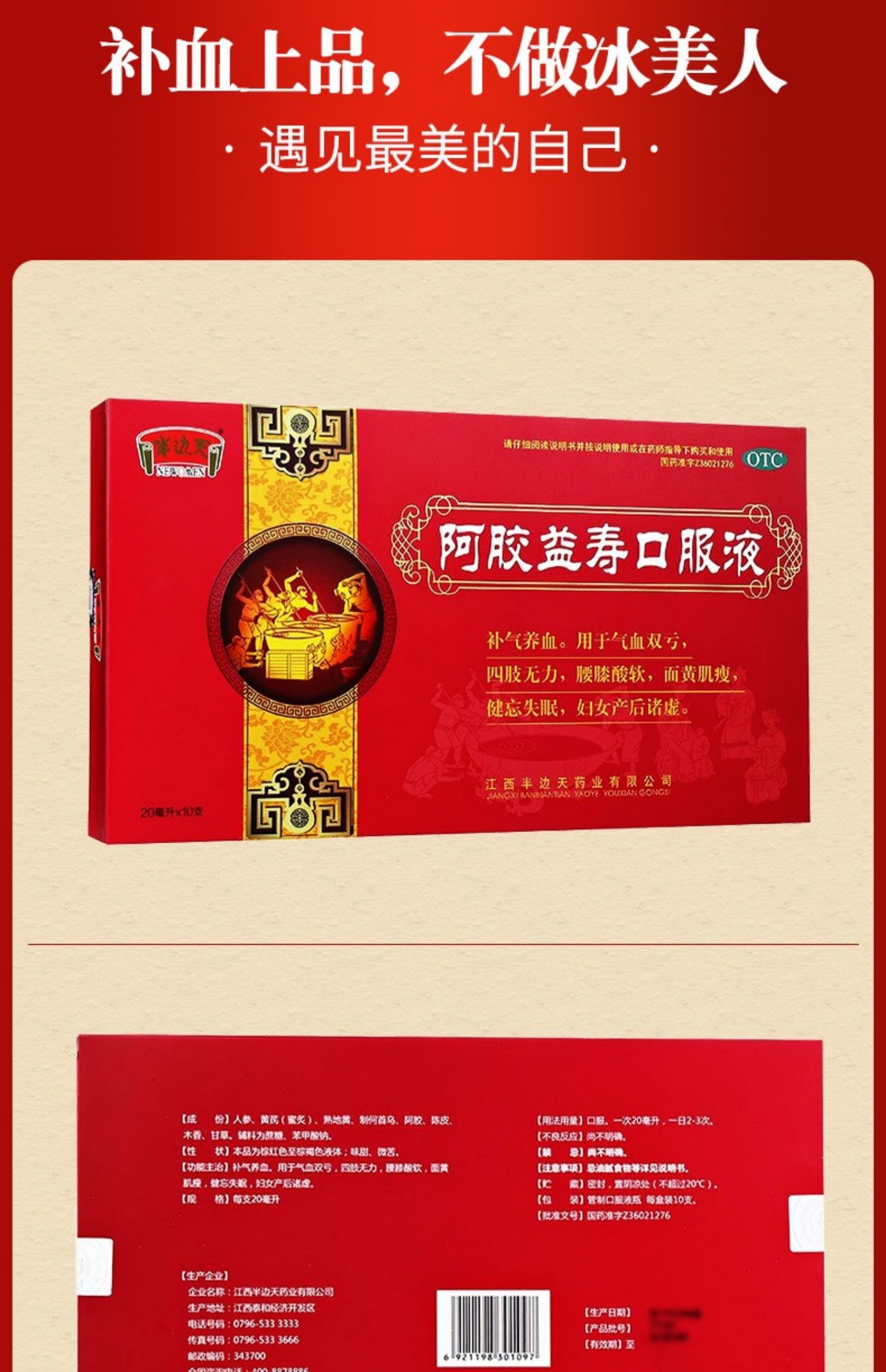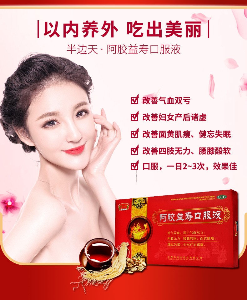半边天阿胶益寿口服液10支产后补气养血气血双亏面黄肌瘦健忘失眠