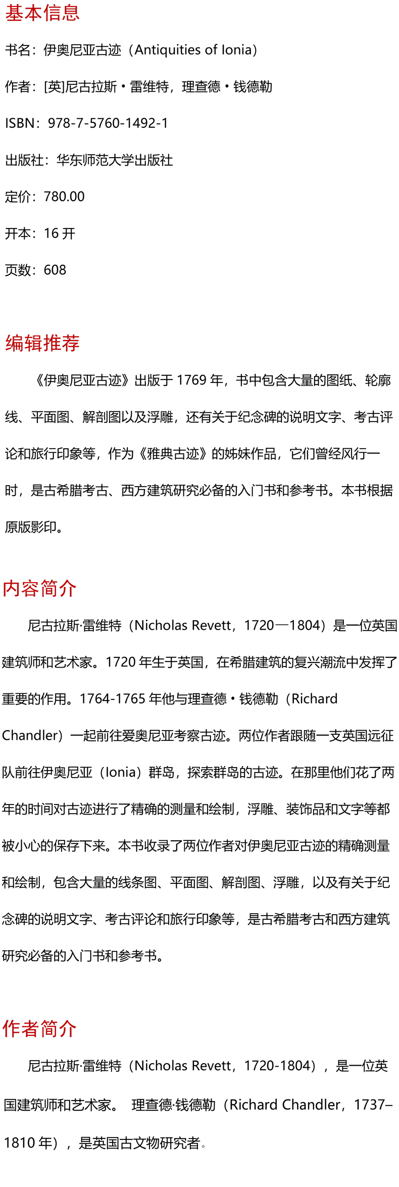 伊奥尼亚古迹 Antiquities of Ionia 寰宇文献考古系列 古希腊 历史考古 英文原本影印附插图索引