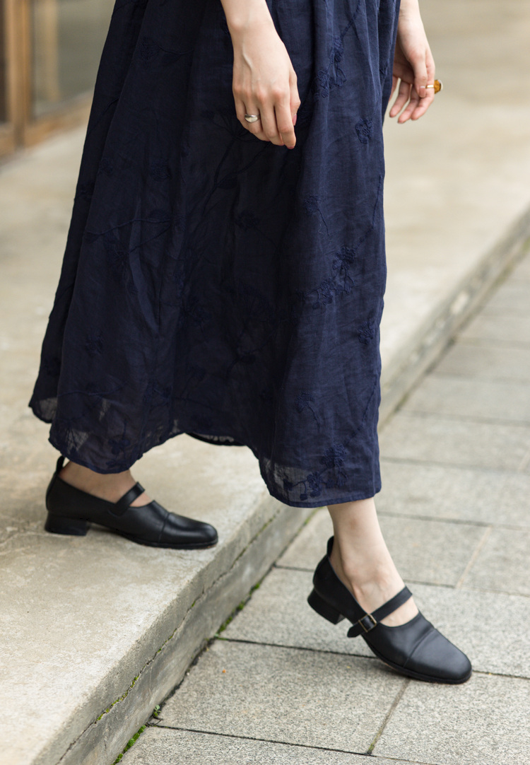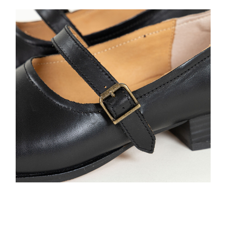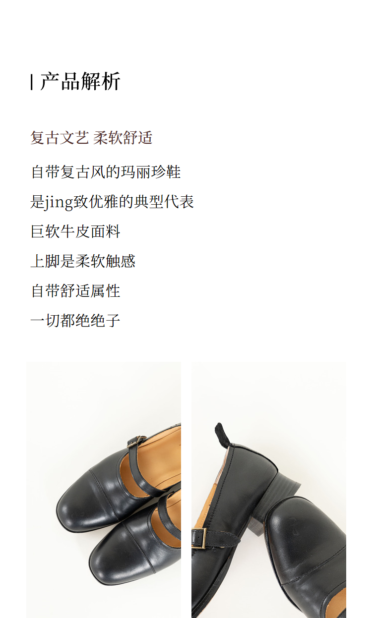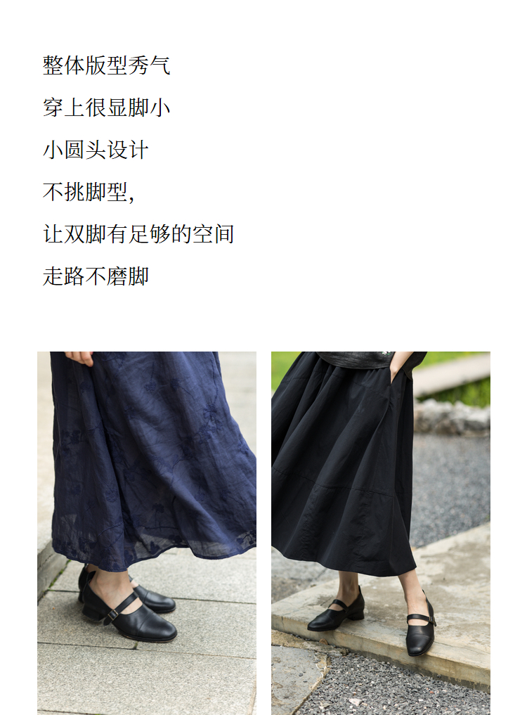 绽放S036朵/小圆头牛皮低跟百搭单鞋