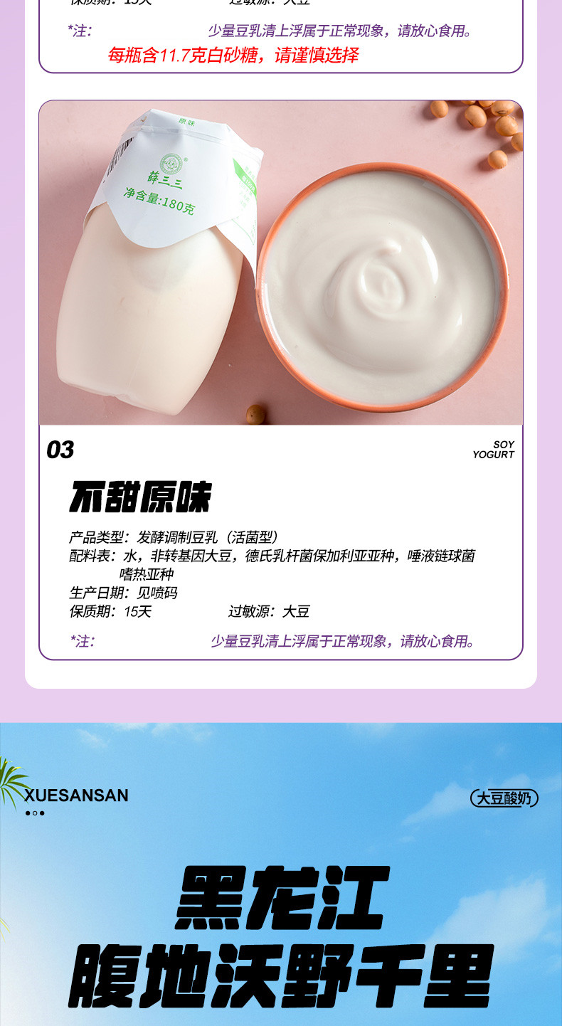 素食大豆酸奶 薛三三 非转基因大豆矿泉水磨浆 早餐代餐奶