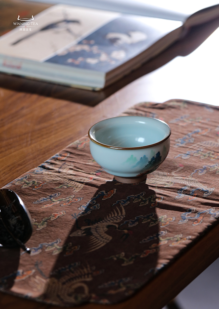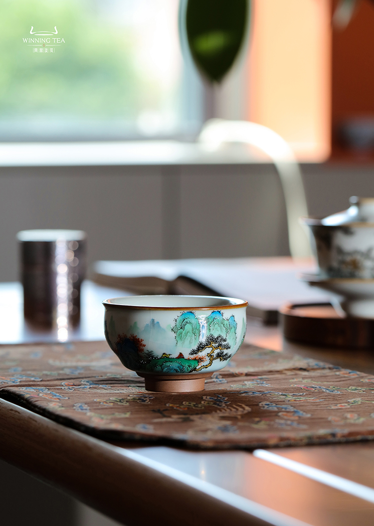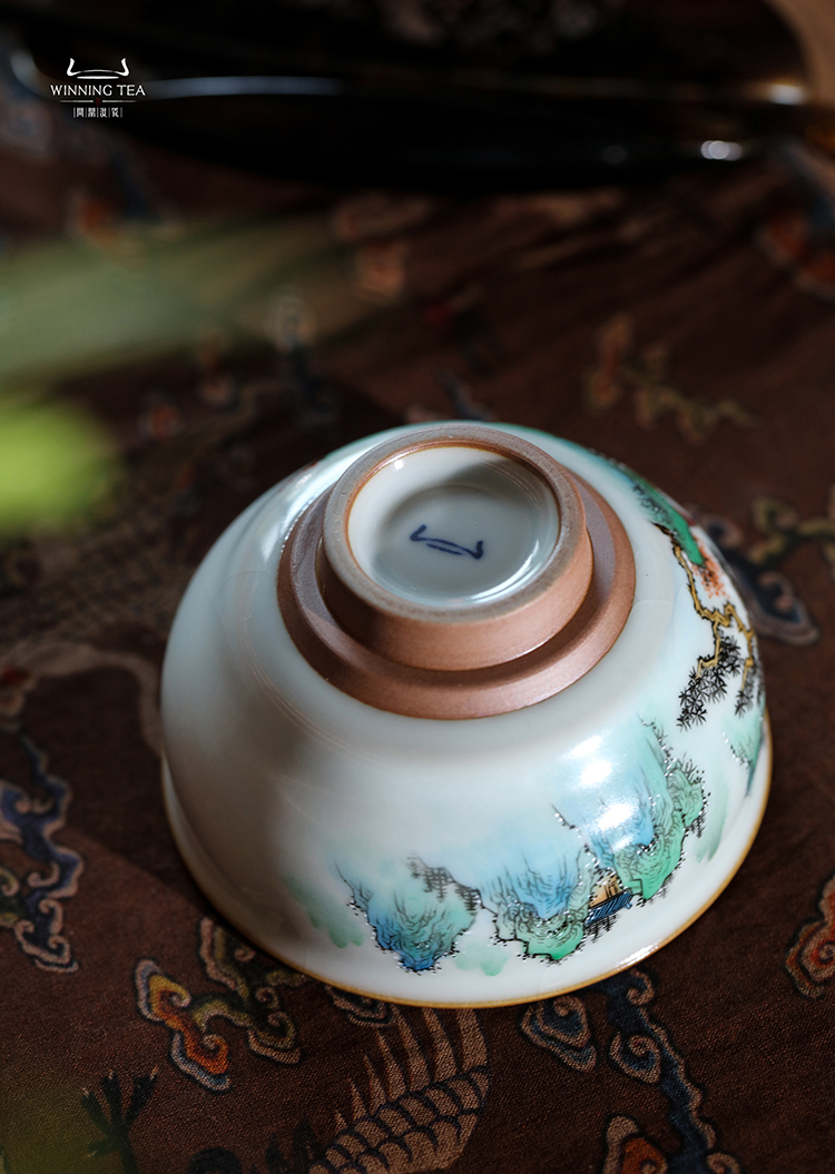 问鼎汝瓷鼎峰系列月白闲意杯(青绿山水)
