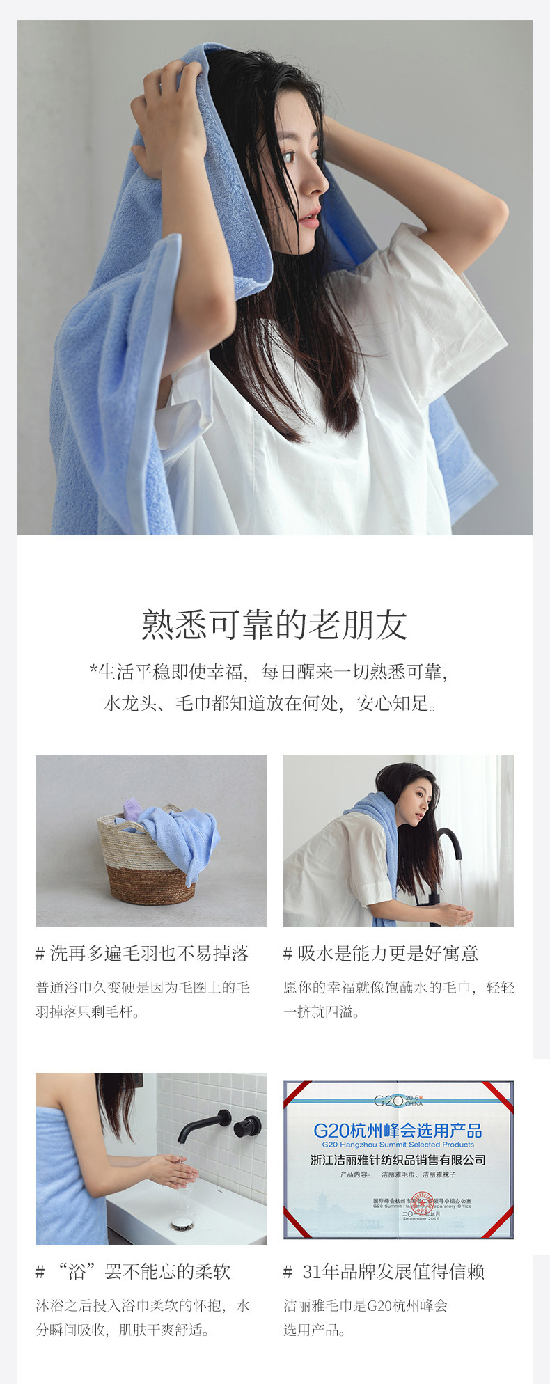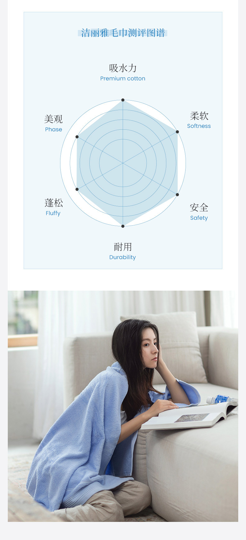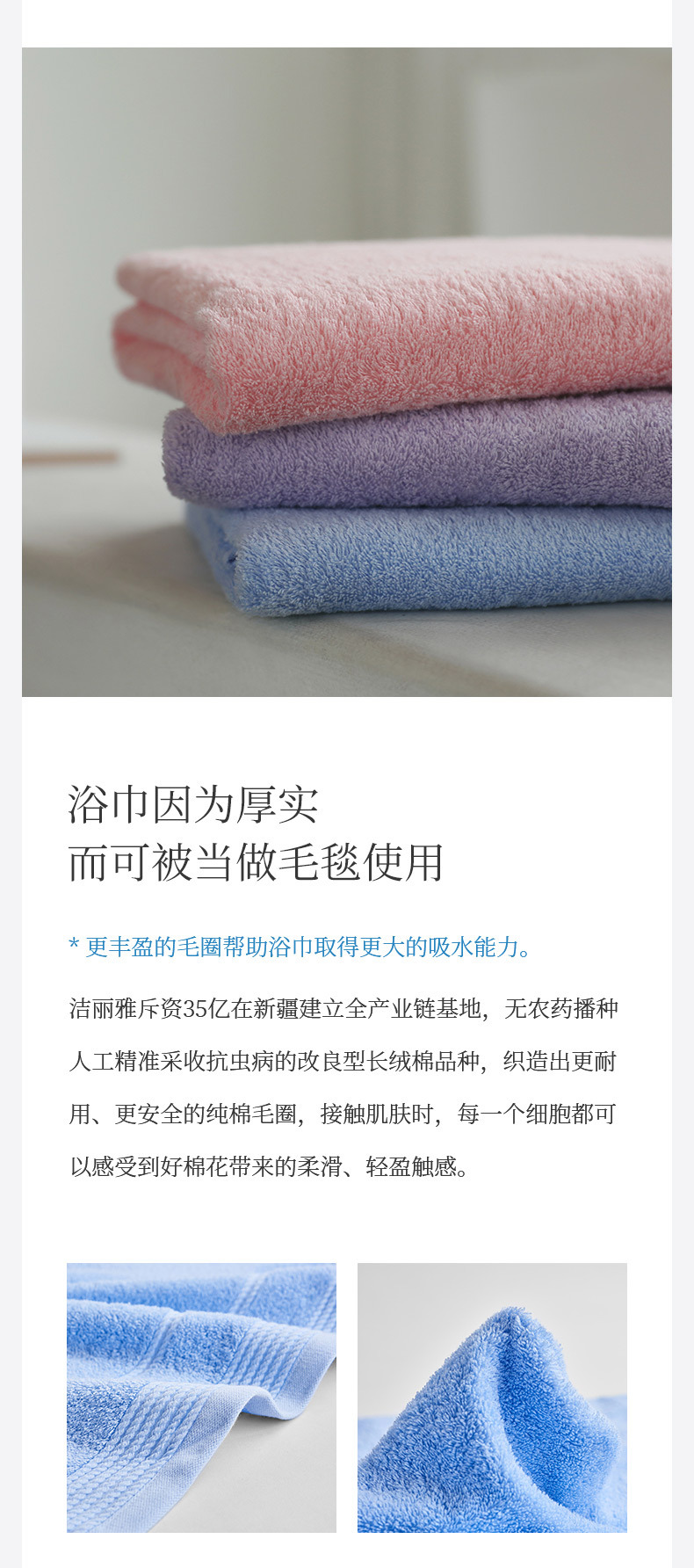 洁丽雅浴巾纯棉 成人家用全棉吸水不掉毛厚实可当盖毯毛巾被洗澡酒店专用
