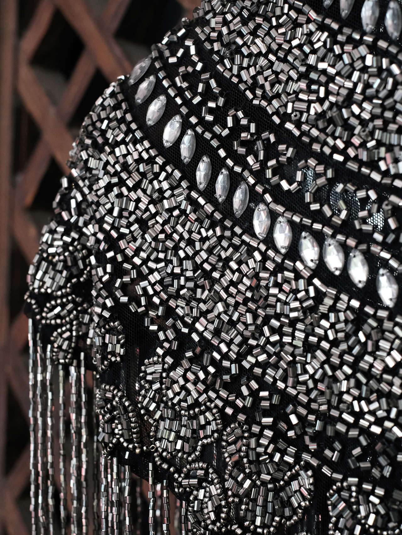 盛唐牡丹|银灰色串珠披肩