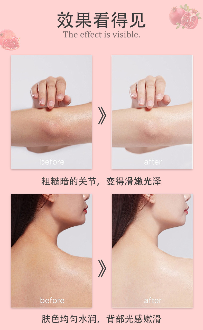 【告别“鸡皮” !石榴籽身体磨砂膏】温和不刺激,嫩滑净爽!嫩白全身去角质鸡皮肤深层清洁磨砂膏身体乳