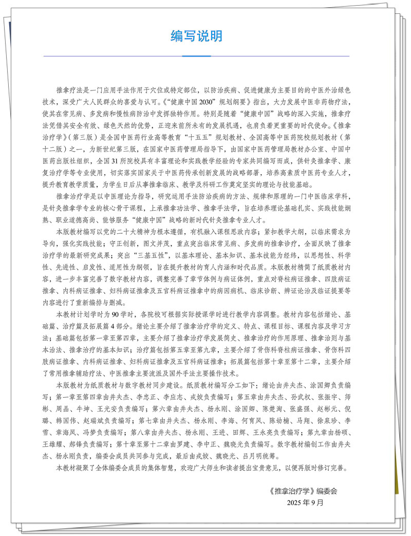 推拿治疗学 井夫杰 杨永刚 主编(第三版)全国中医药行业高等教育十五五第十二版规划教材 中国中医药出版社 中国中医药出版社