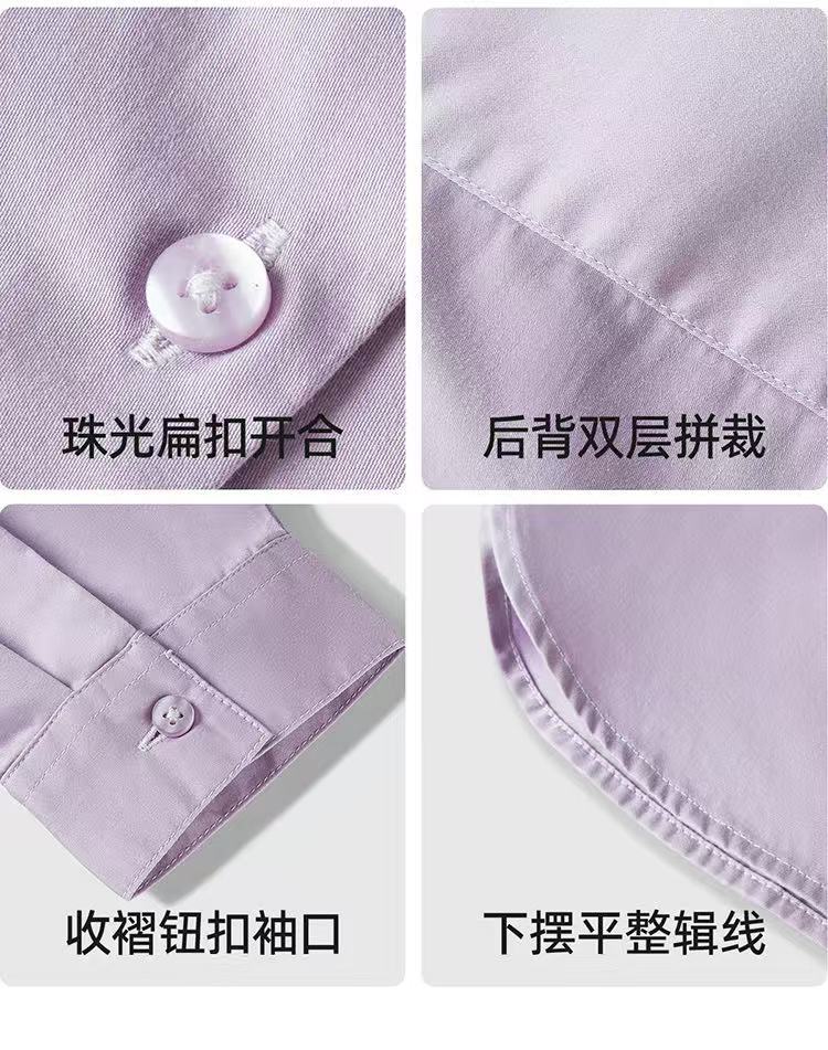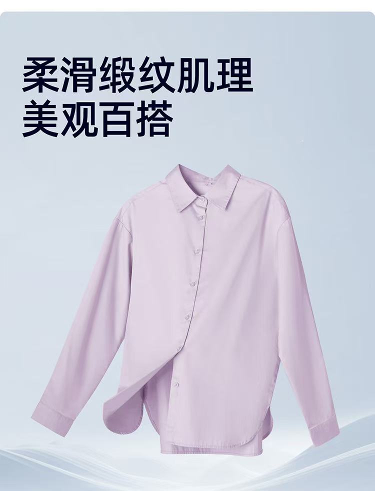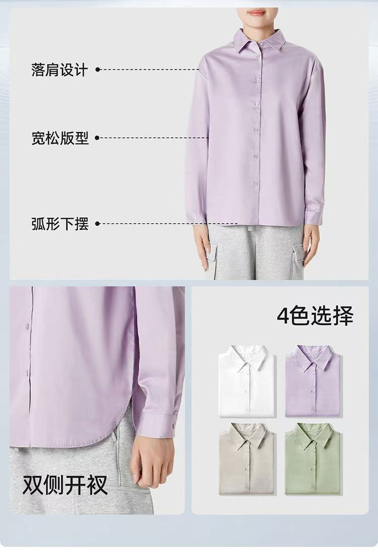 占姆士女士春秋全棉缎纹长袖衬衫落肩下摆弧形开叉衬衣