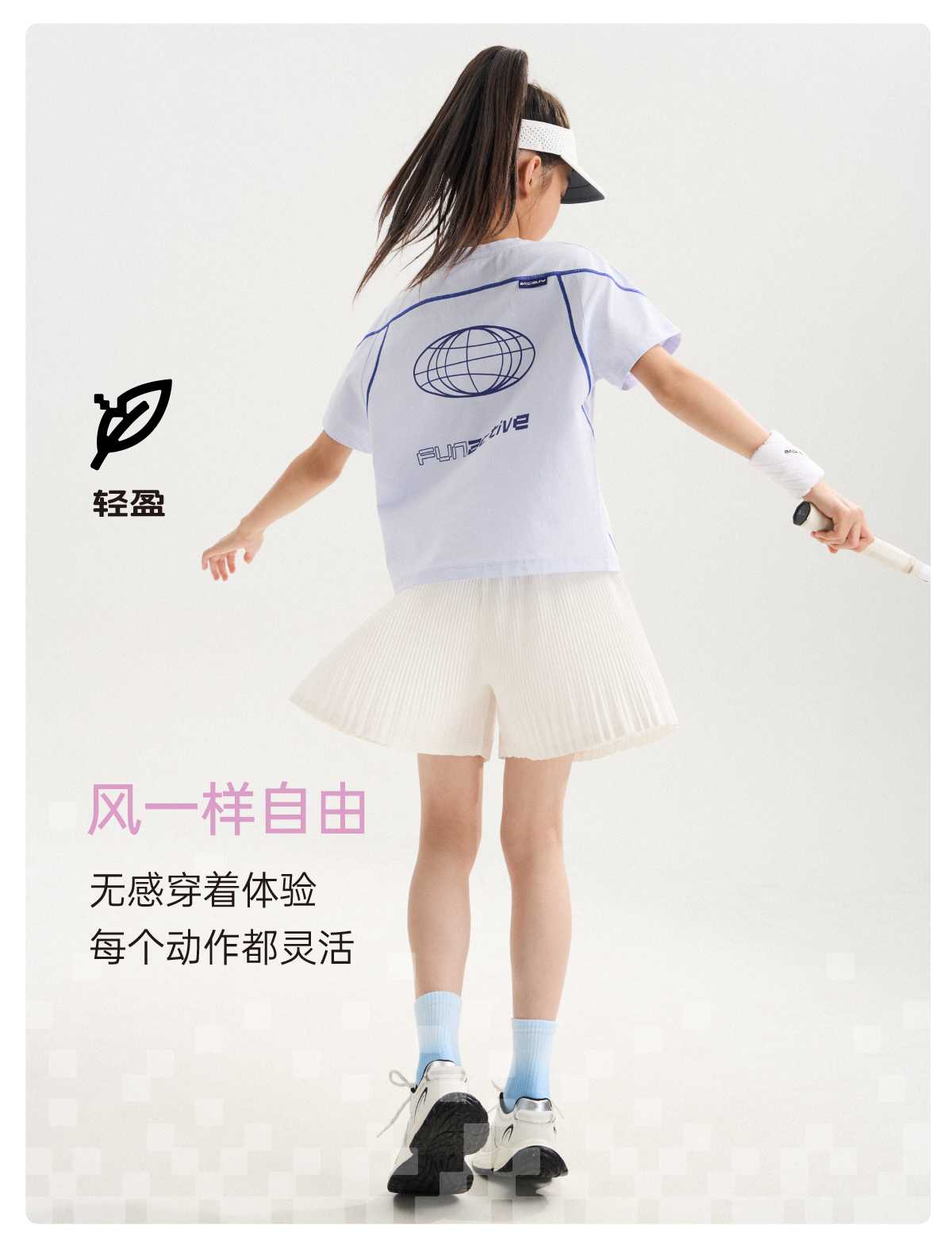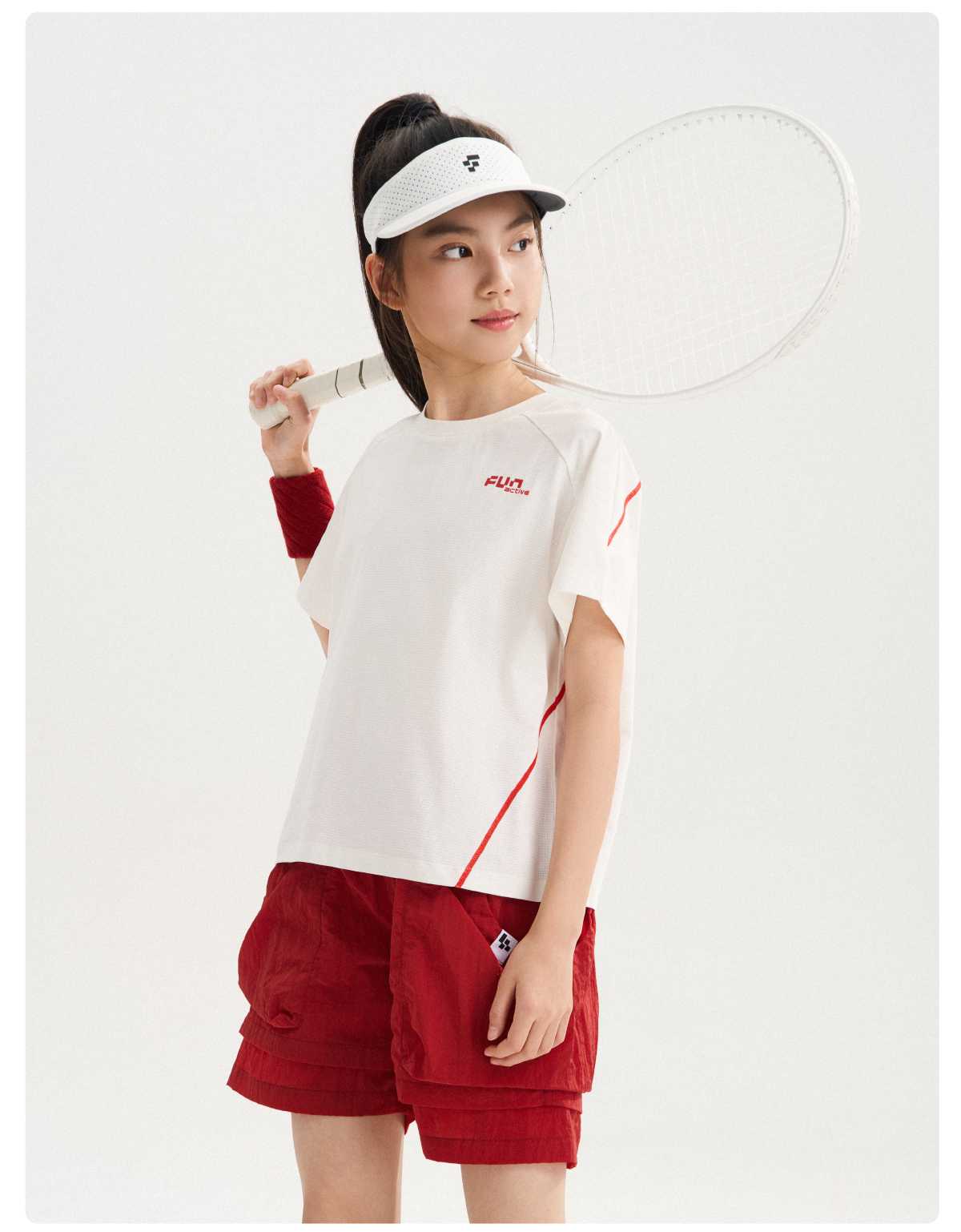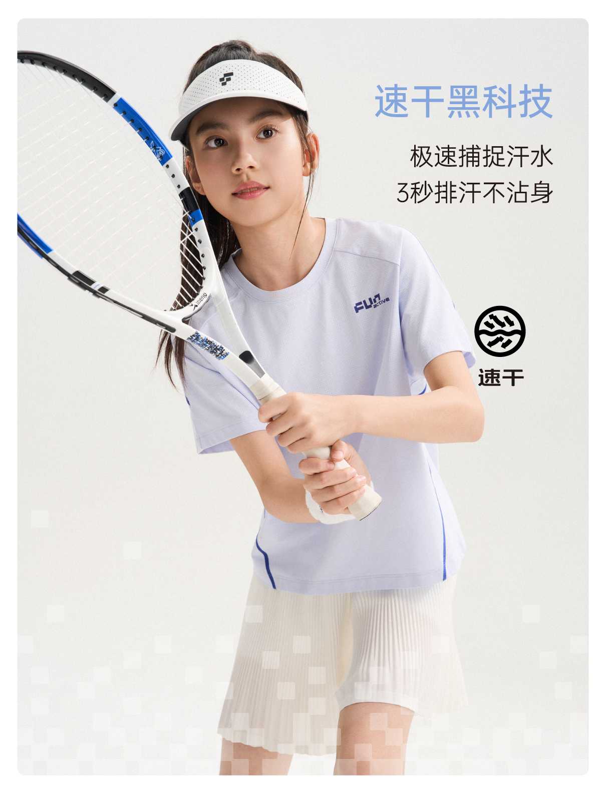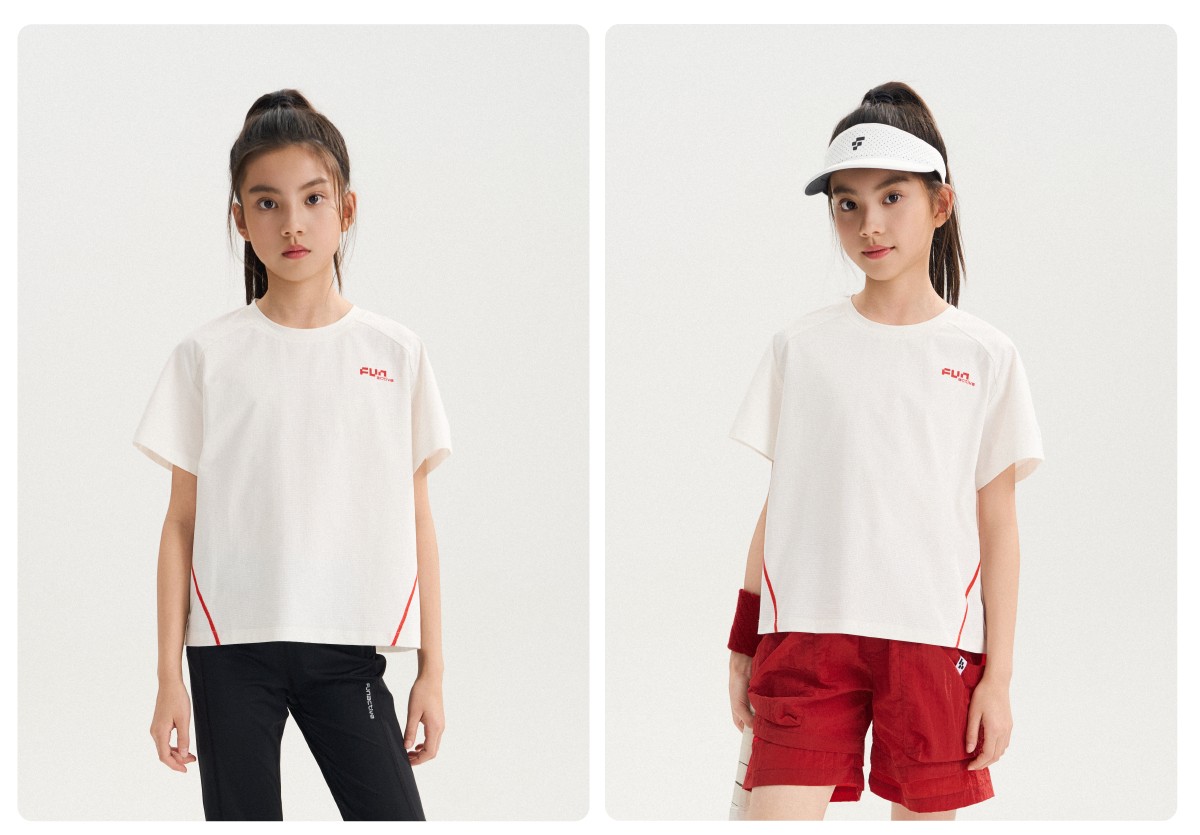 funactive女童短袖T恤夏季儿童抗菌薄款运动速干上衣F1UT10382