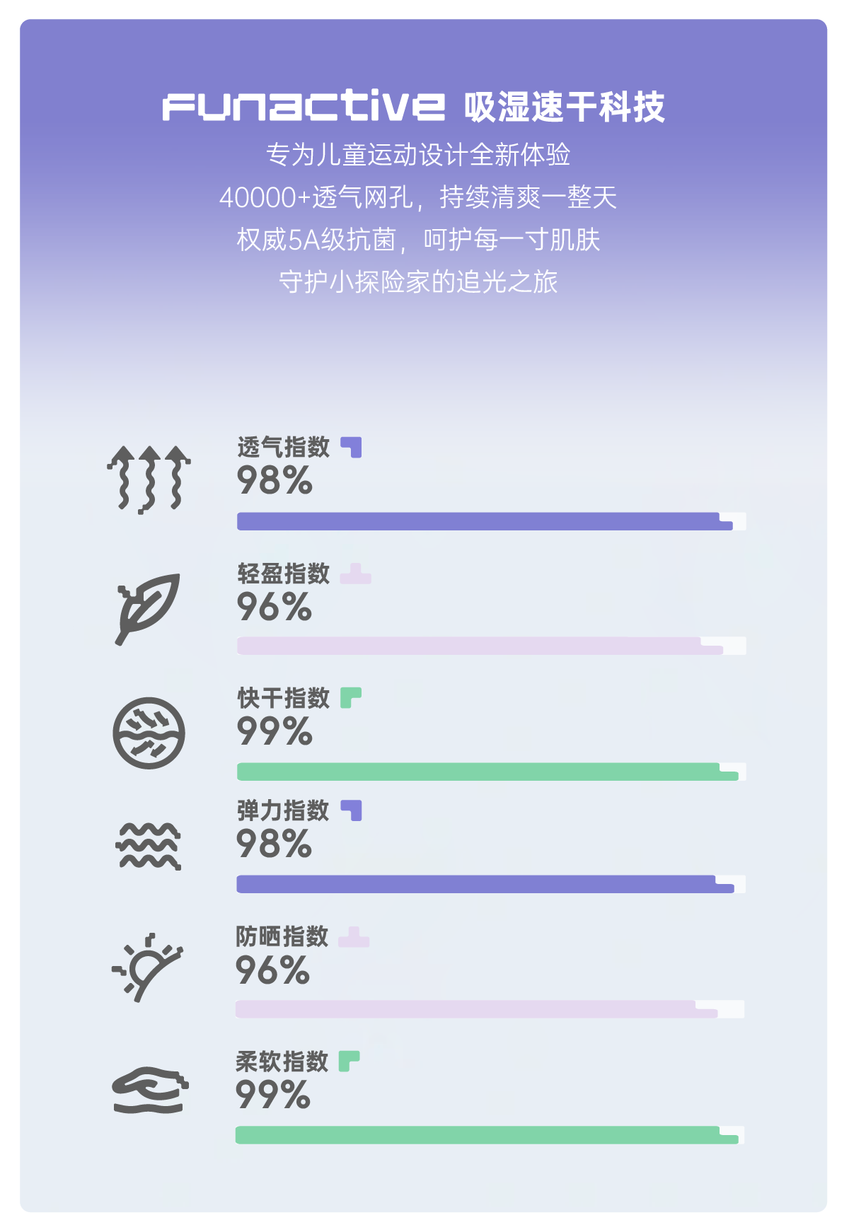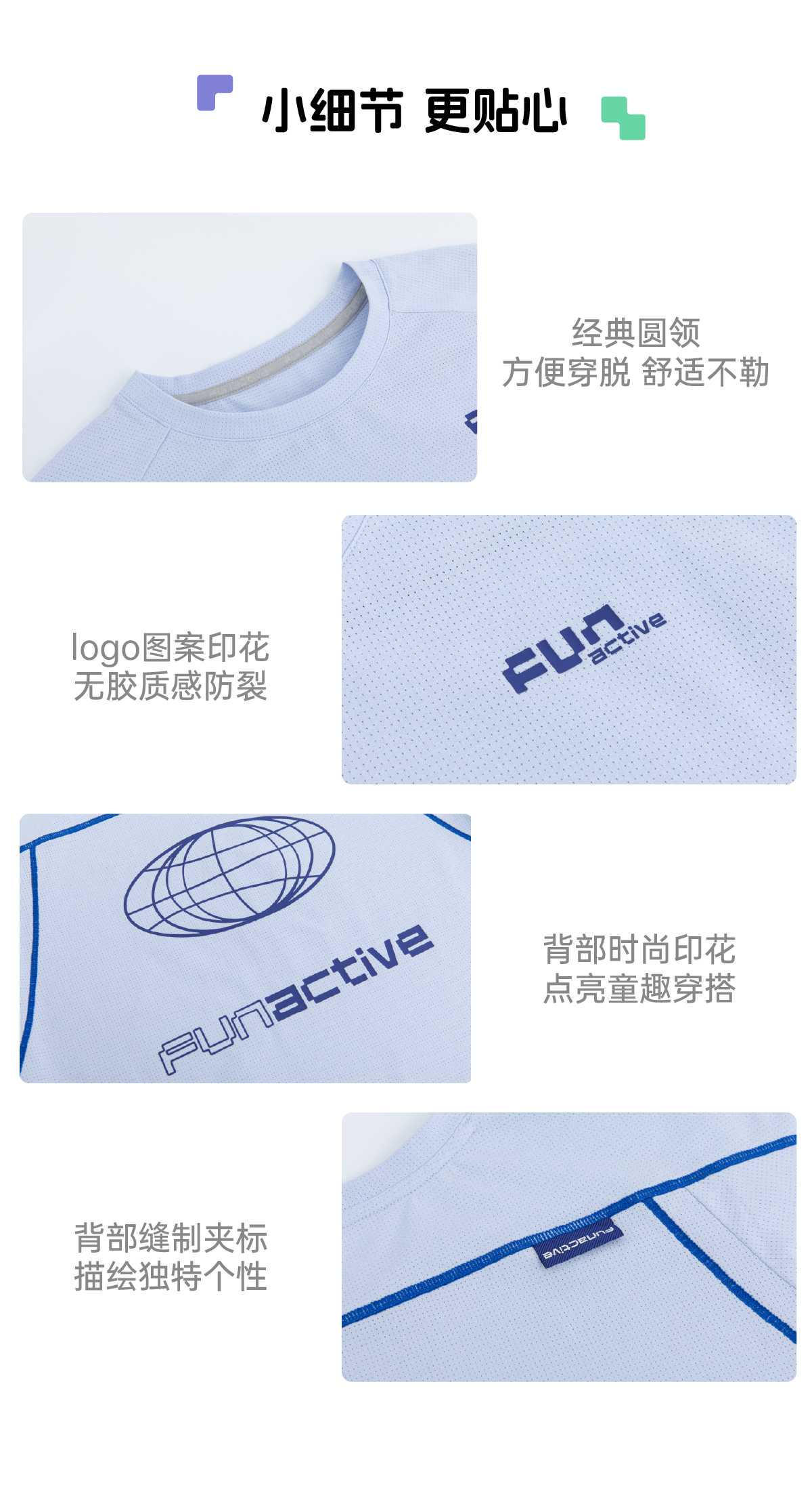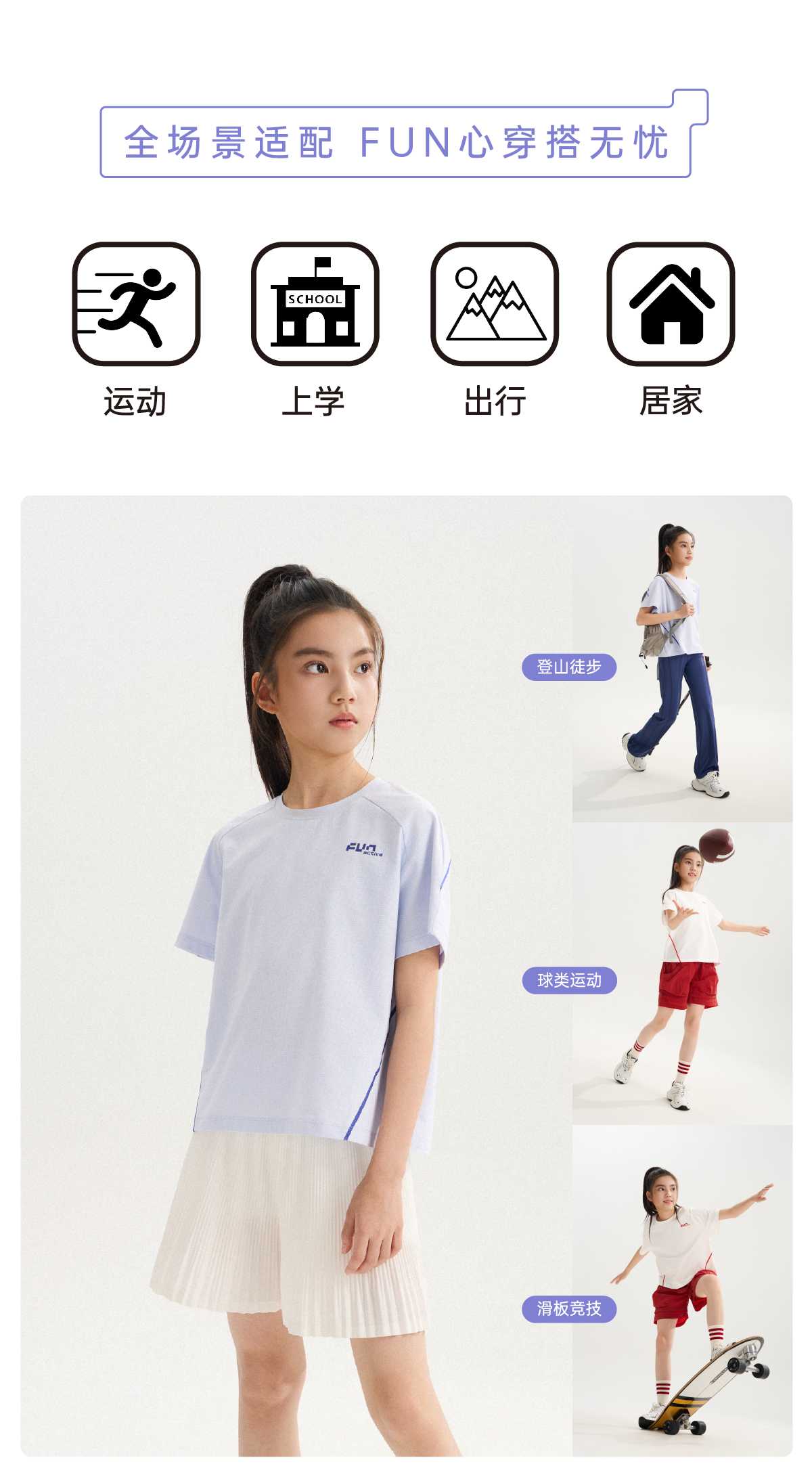 funactive女童短袖T恤夏季儿童抗菌薄款运动速干上衣F1UT10382