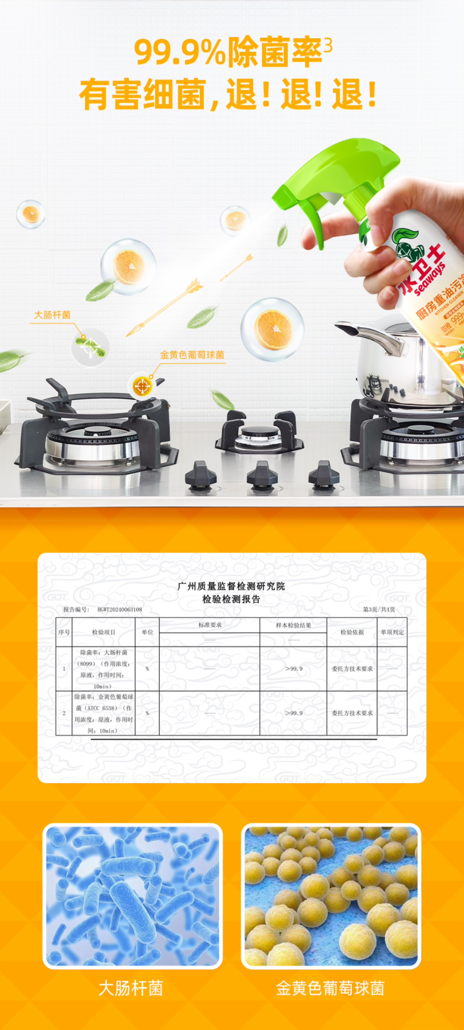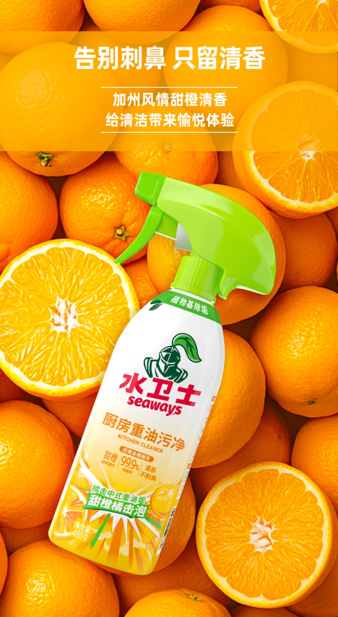 [屁侠推荐]水卫士厨房重油污净 甜橙萃取去油污除油垢油烟机厨房神器