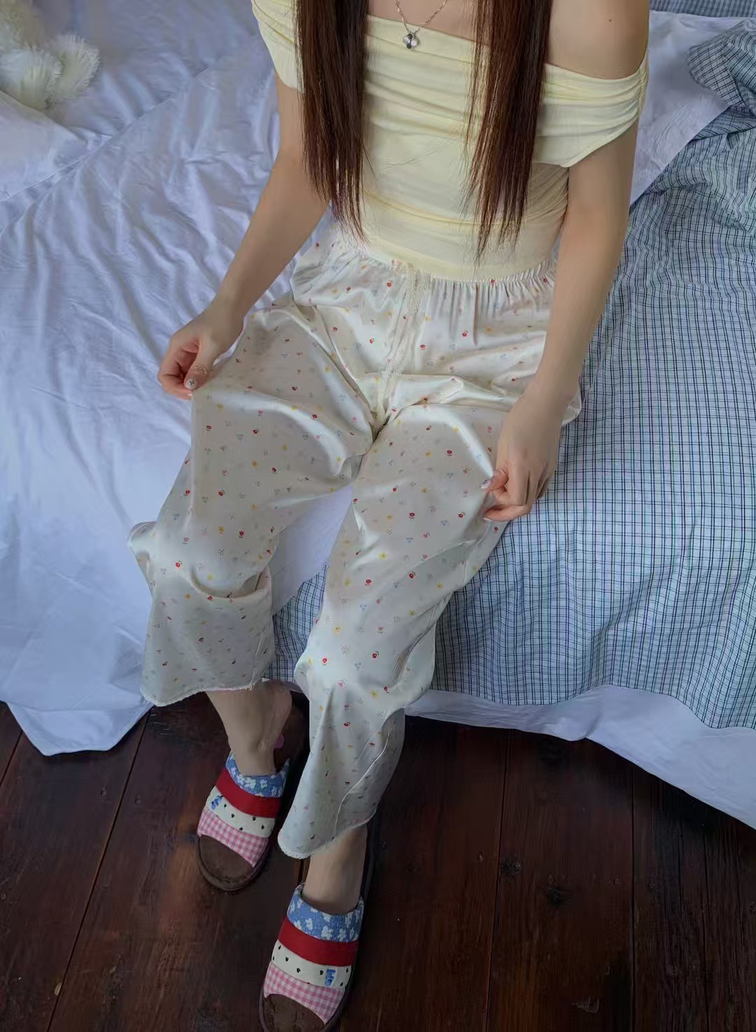 【把清风穿身上】春夏水柔缎面仿真丝缎面家居裤长裤 小清新居家清风宅宅短裤睡眠裤