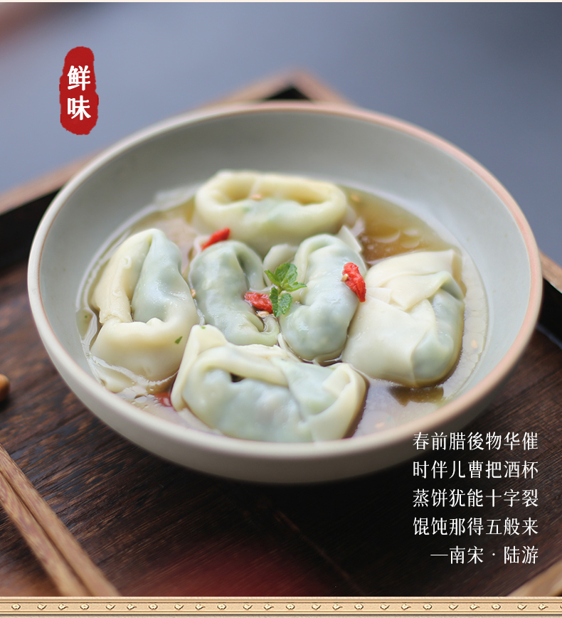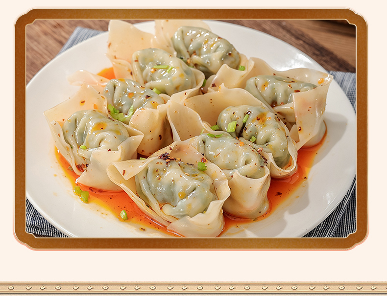 新包装如下,这段时间是过渡期,新老包装交替发出,以后就都是新包装了,新包装有馄饨汤料包(旧包装的没有)。以前是没有汤料包的,但是现在为了适应市场环境,加了汤料包也换了新包装