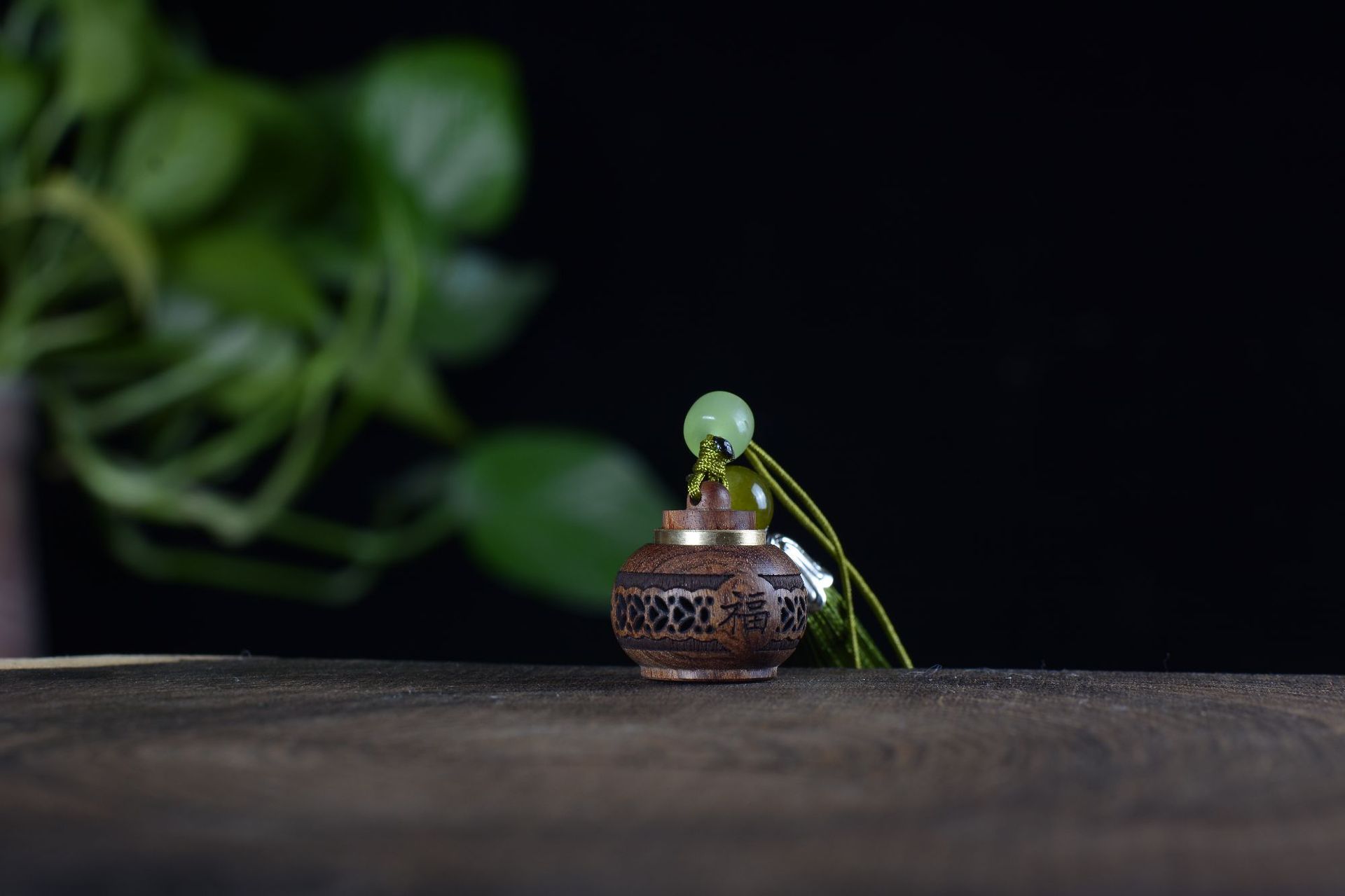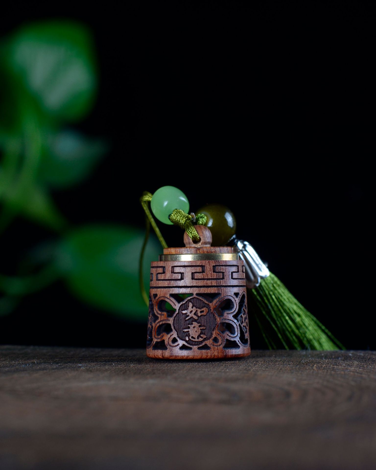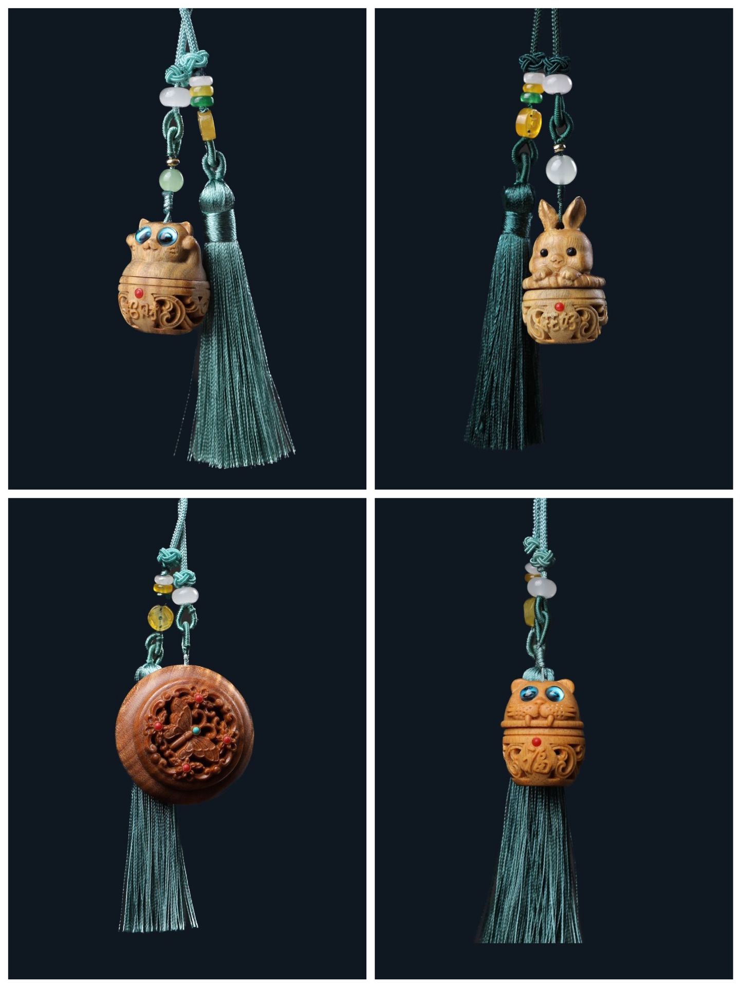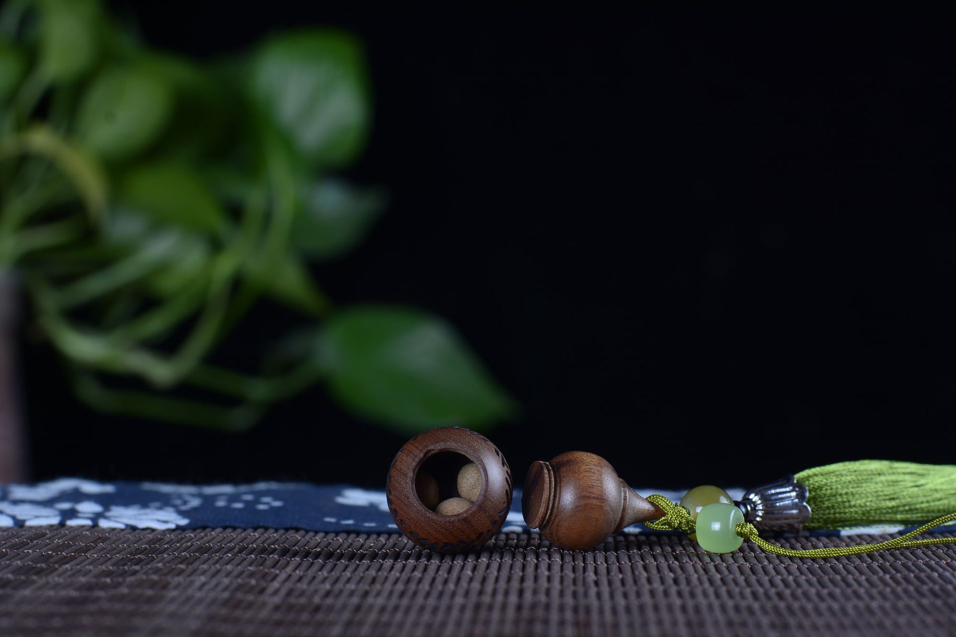 绿檀镂空香囊许愿兔莲花葫芦夜光石扩香器挂件檀香饰品装饰