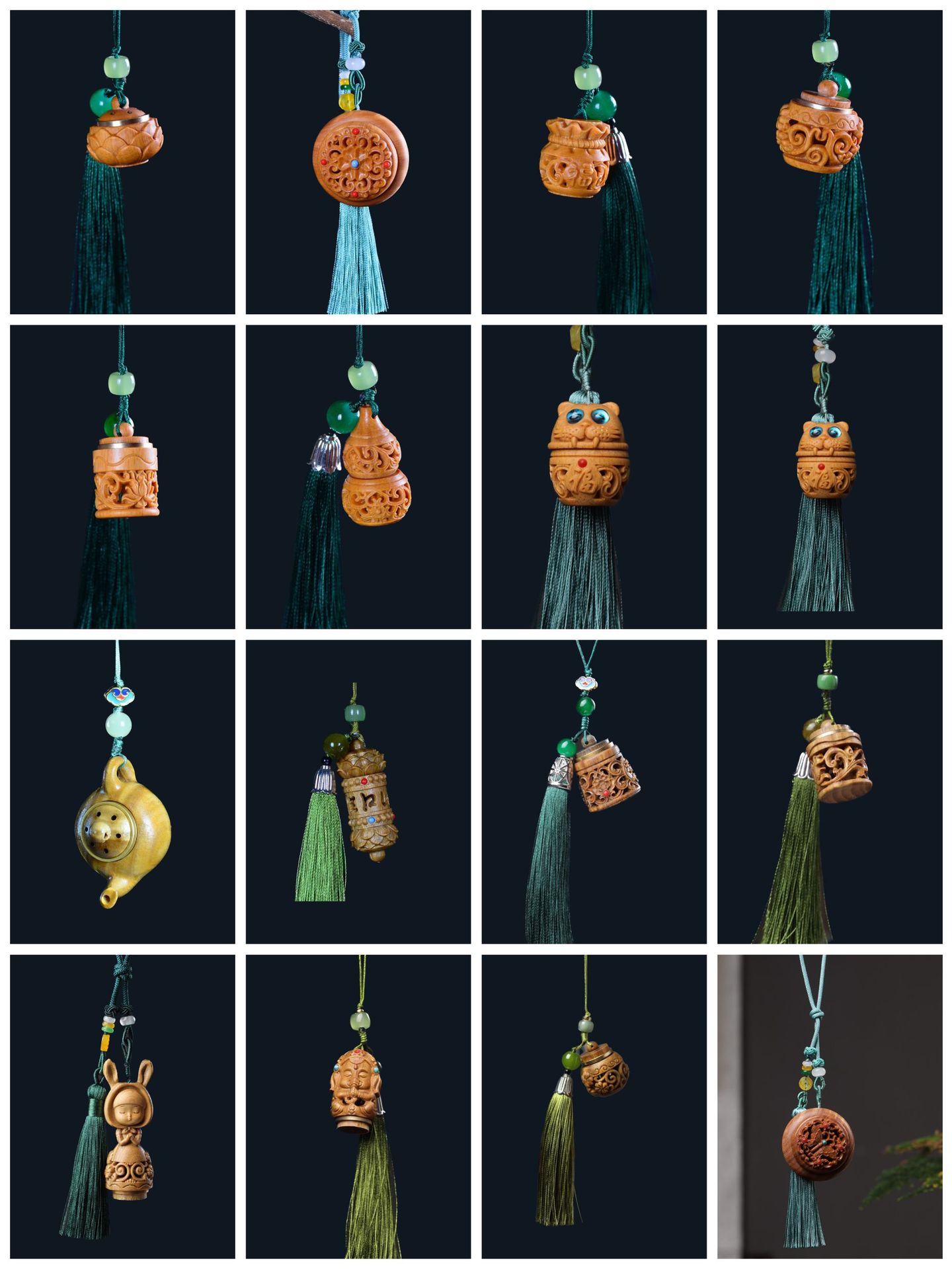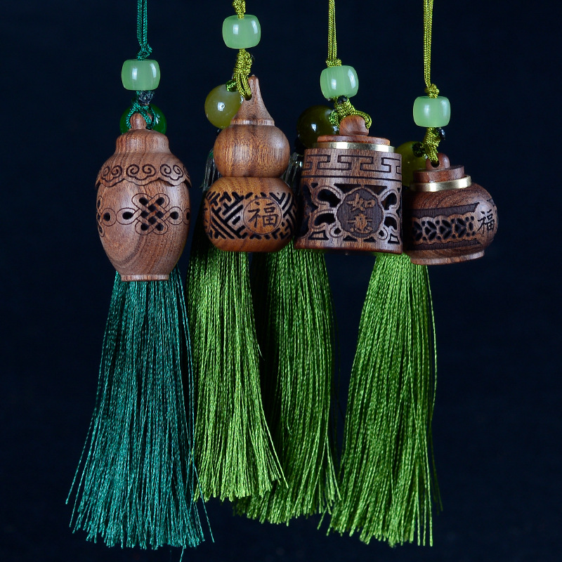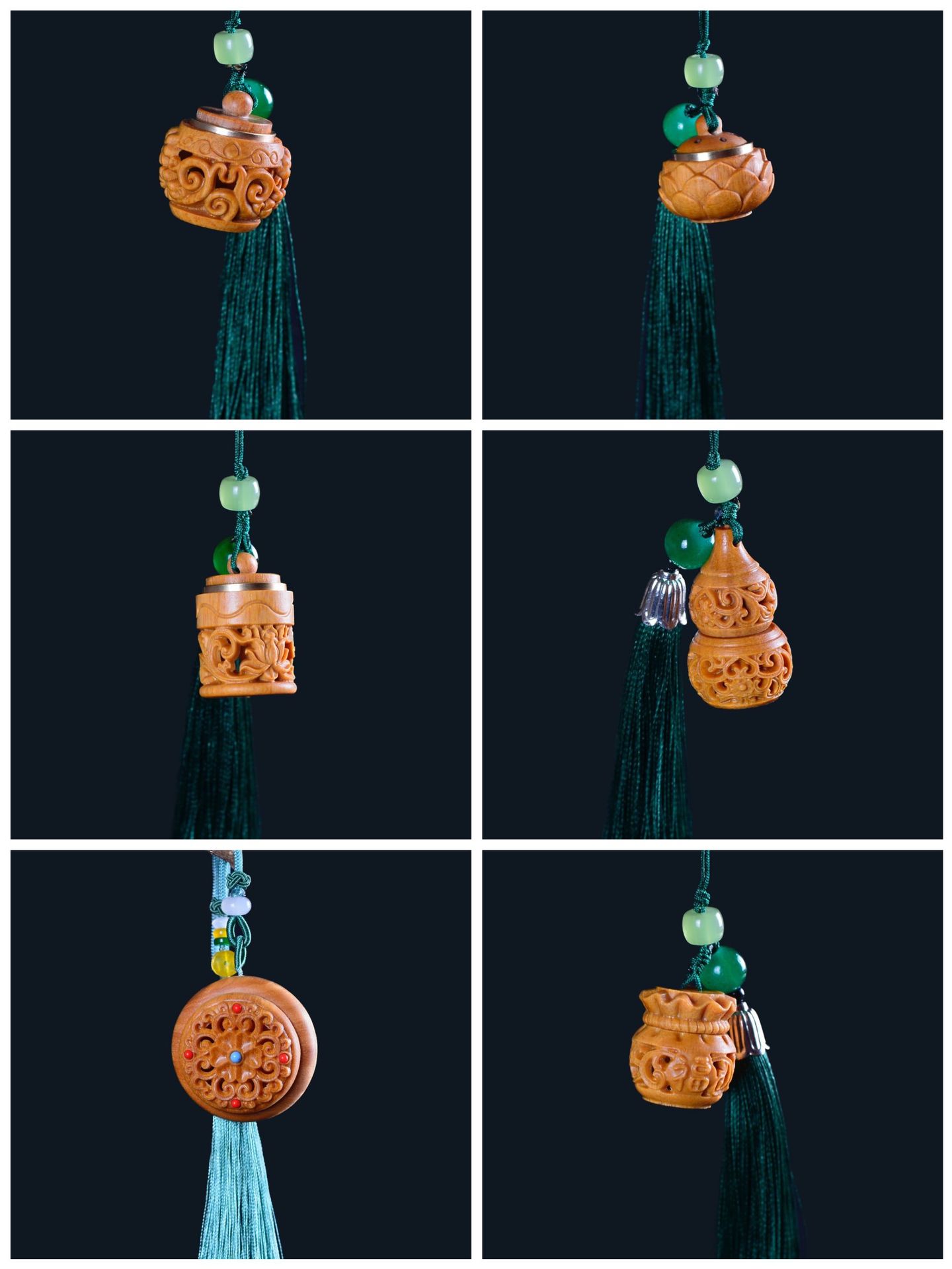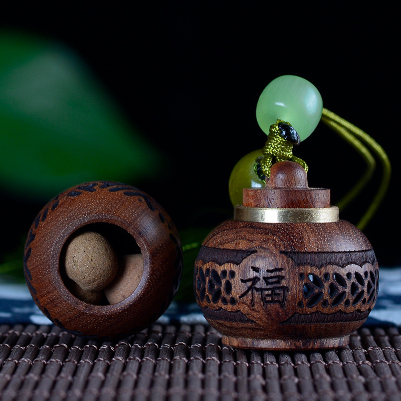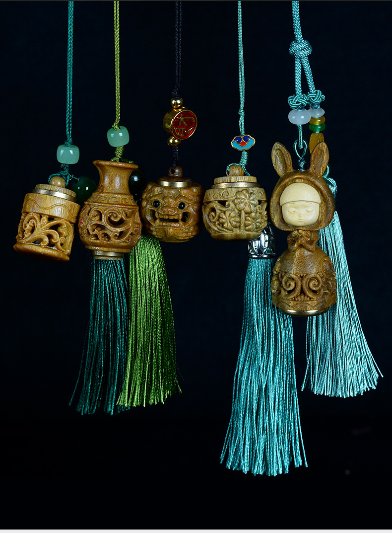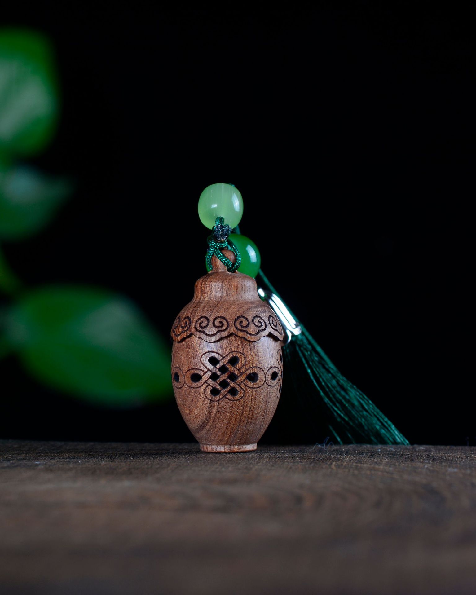 绿檀镂空香囊许愿兔莲花葫芦夜光石扩香器挂件檀香饰品装饰
