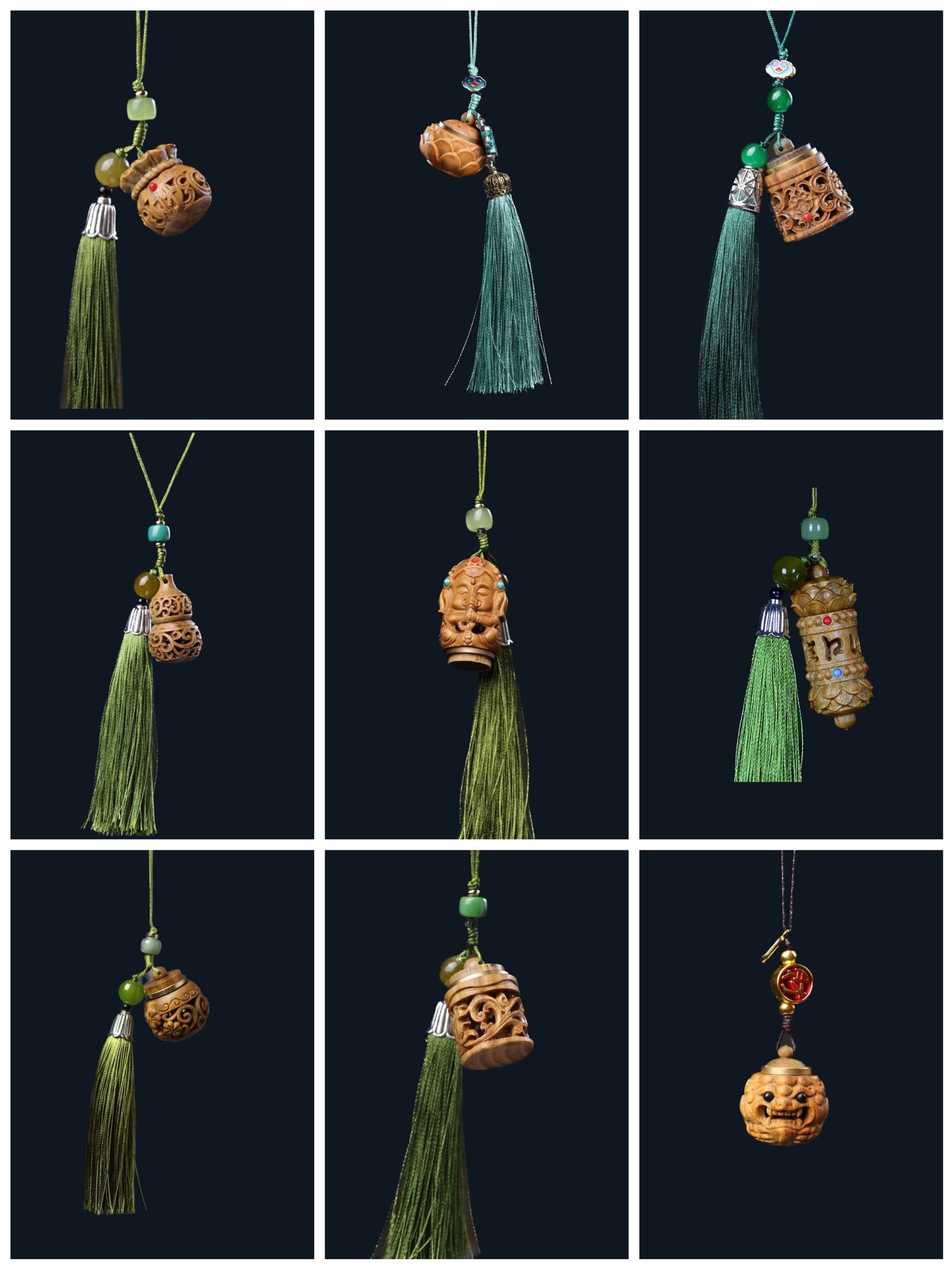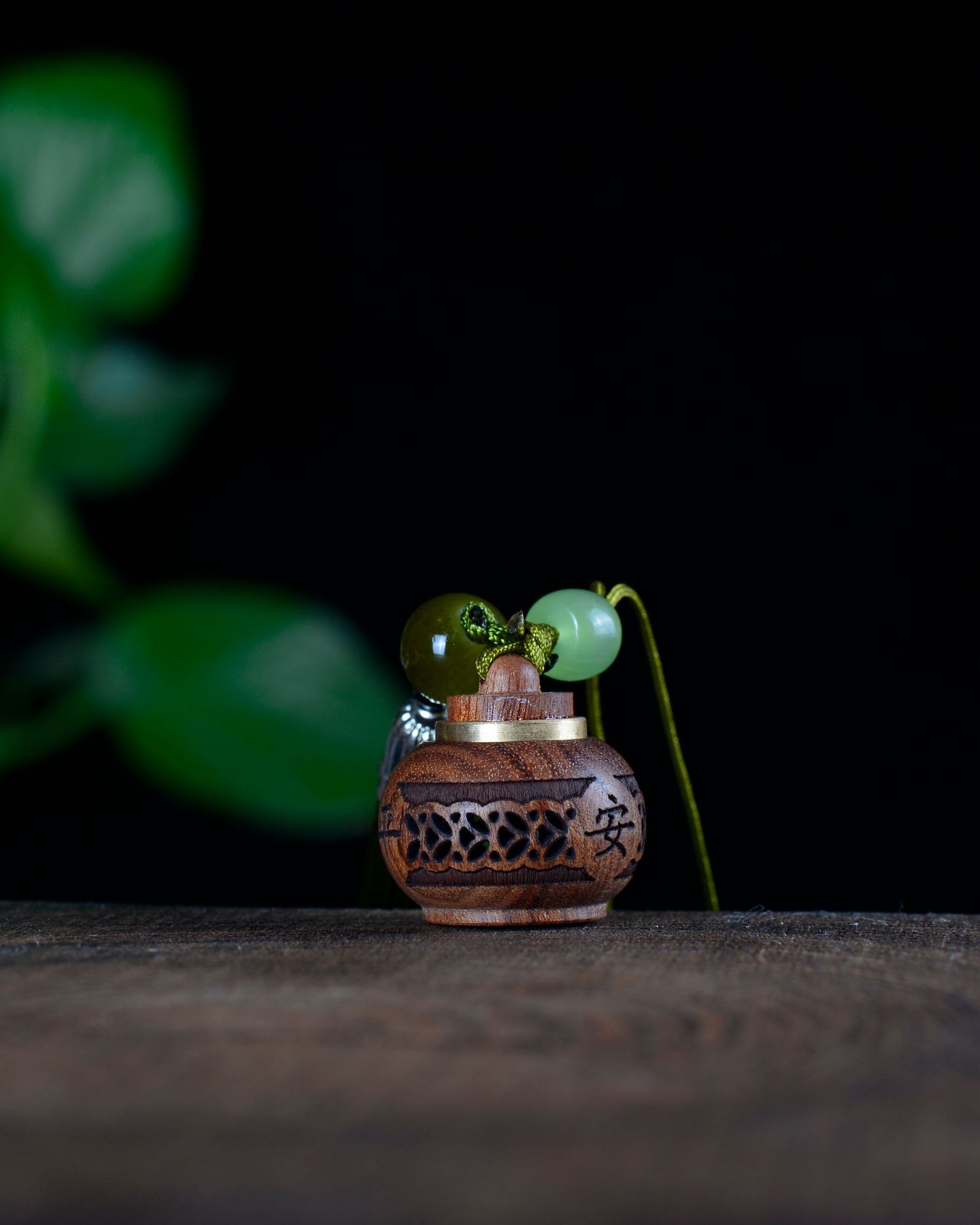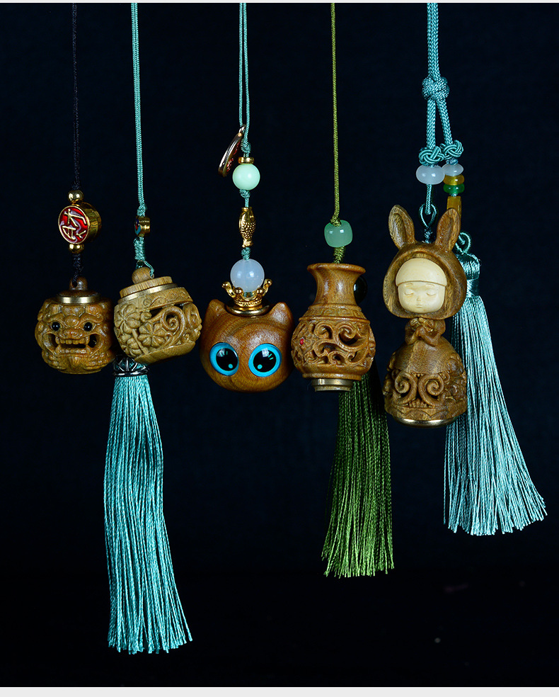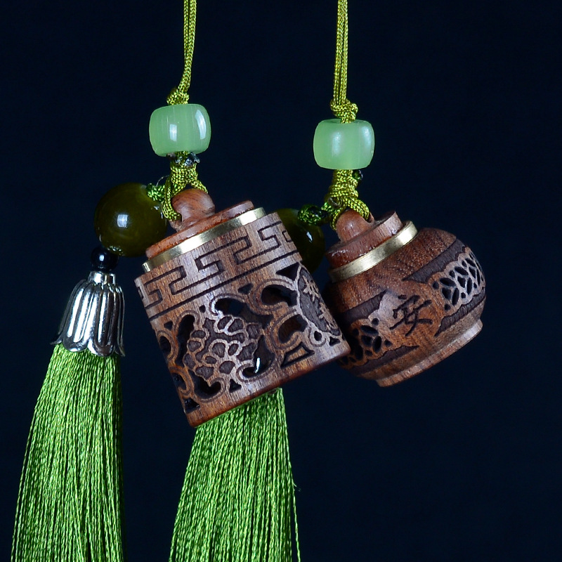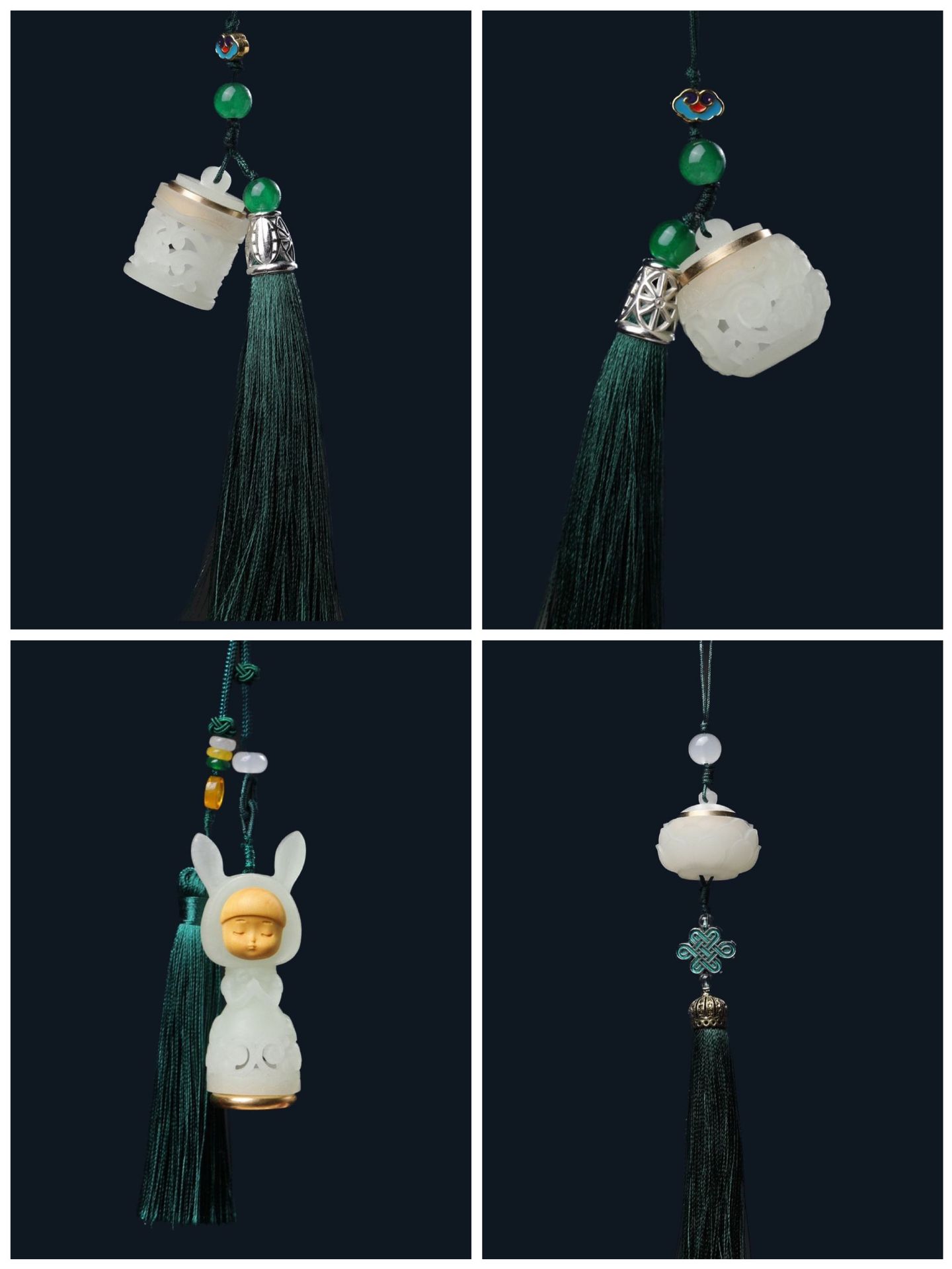 绿檀镂空香囊许愿兔莲花葫芦夜光石扩香器挂件檀香饰品装饰