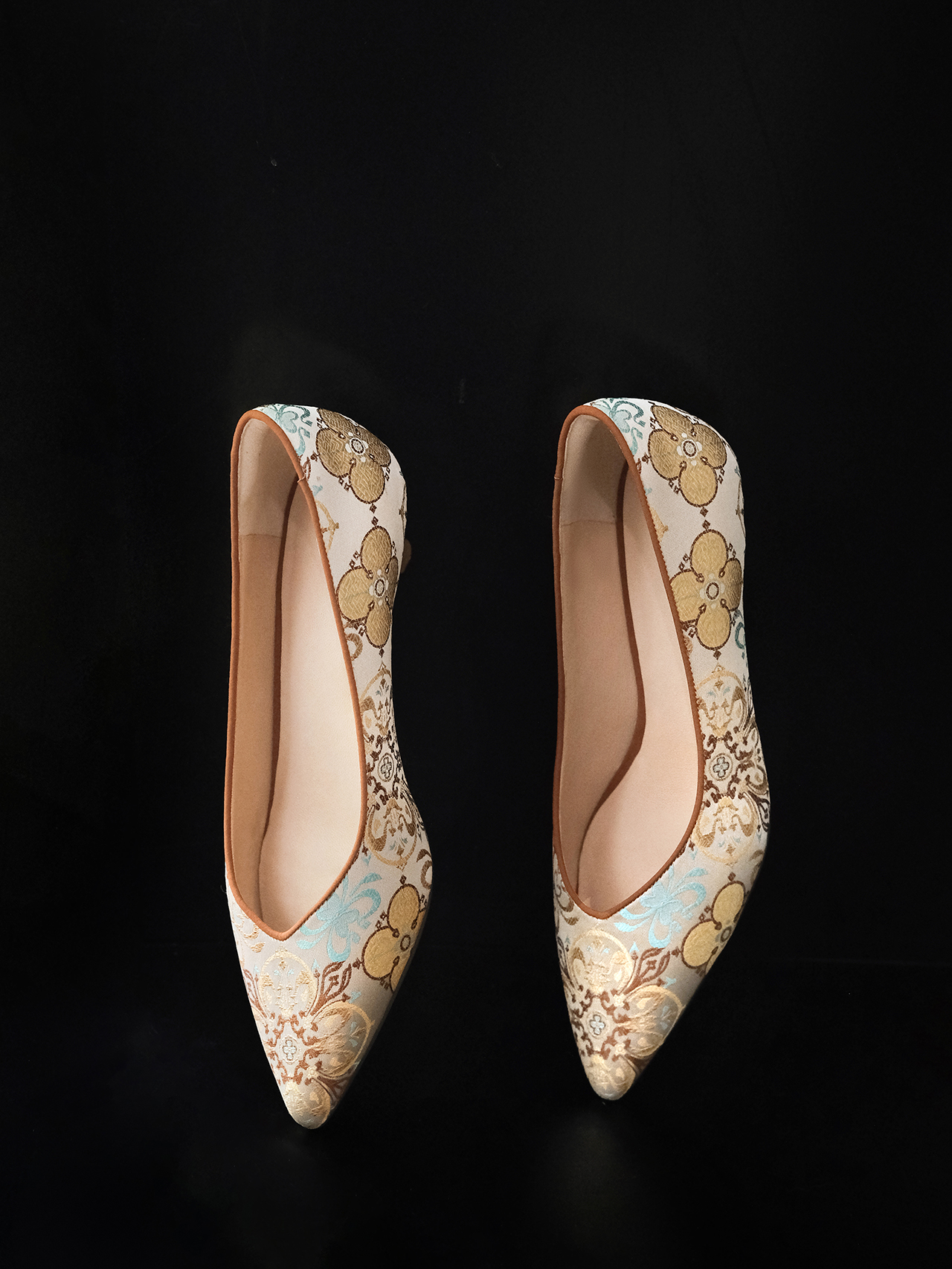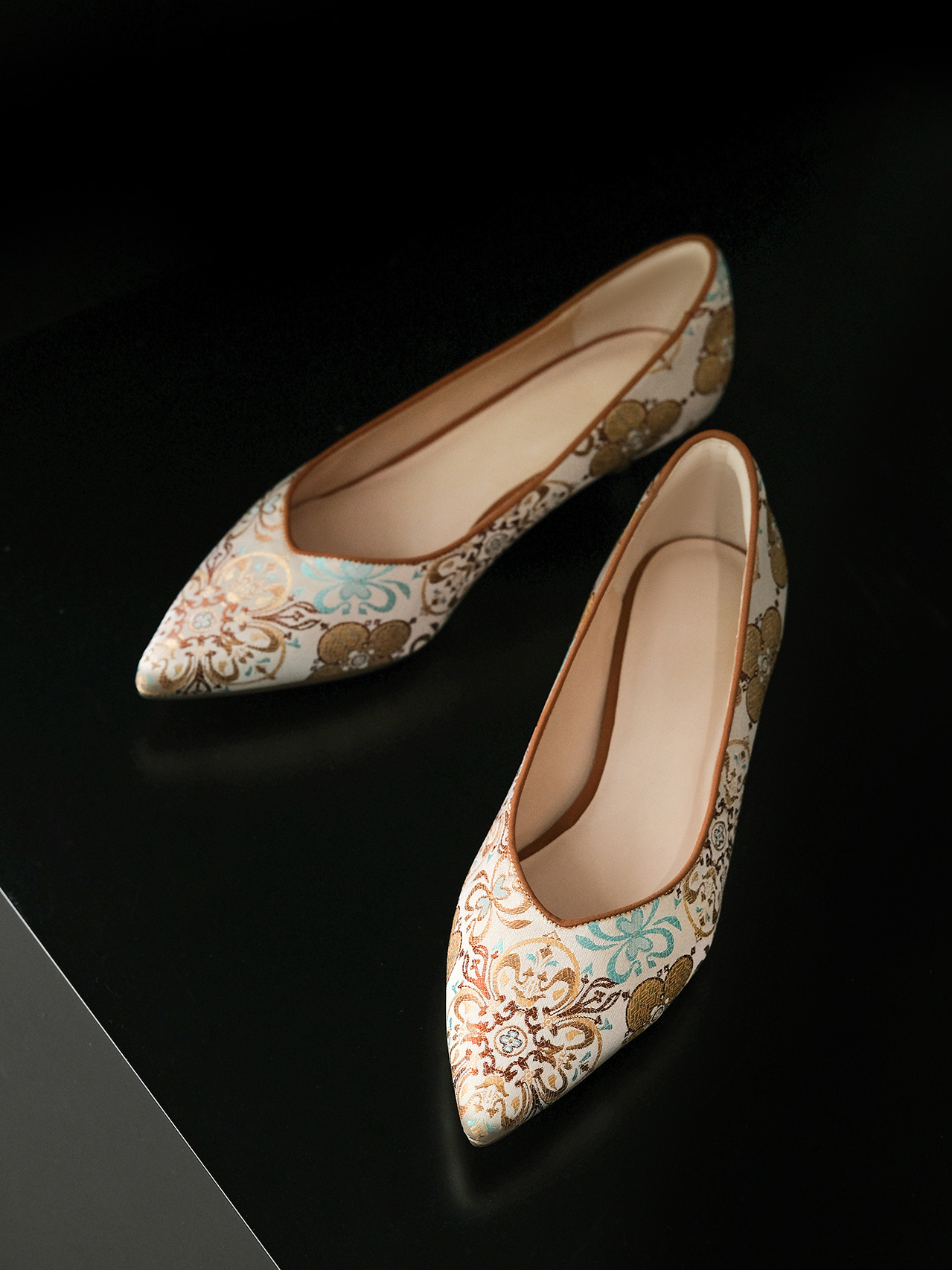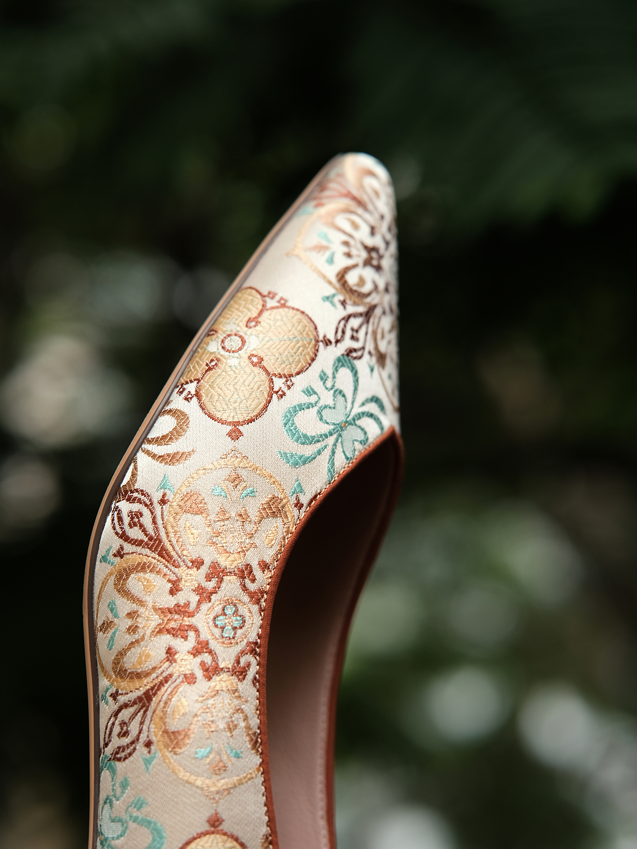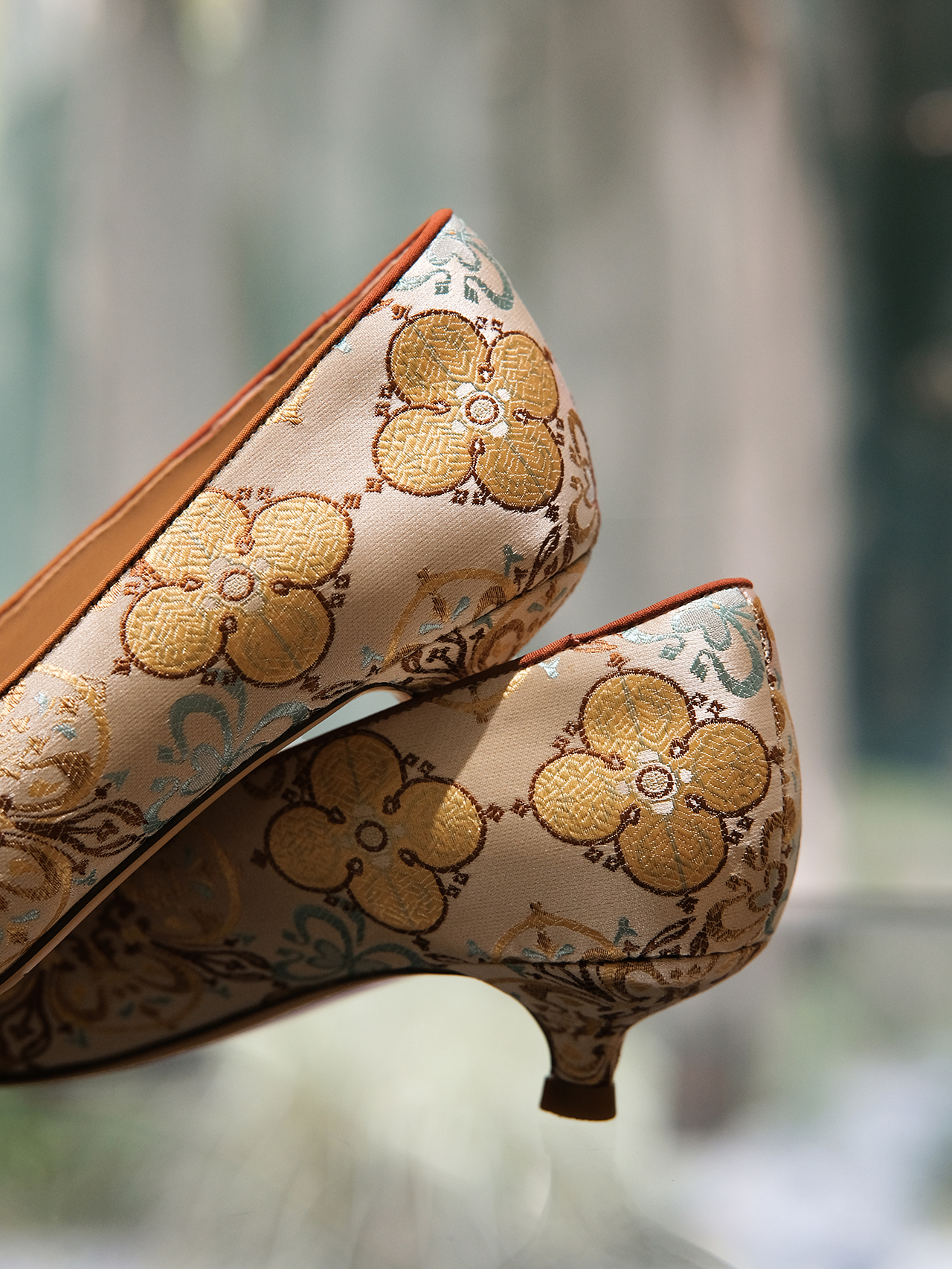 盛唐婧 |桂舟-手工羊皮几何花卉小跟鞋-橘色(特殊商品不退不换)-[特价品]